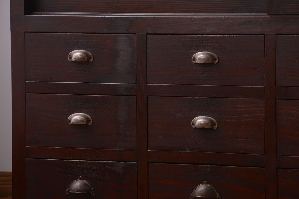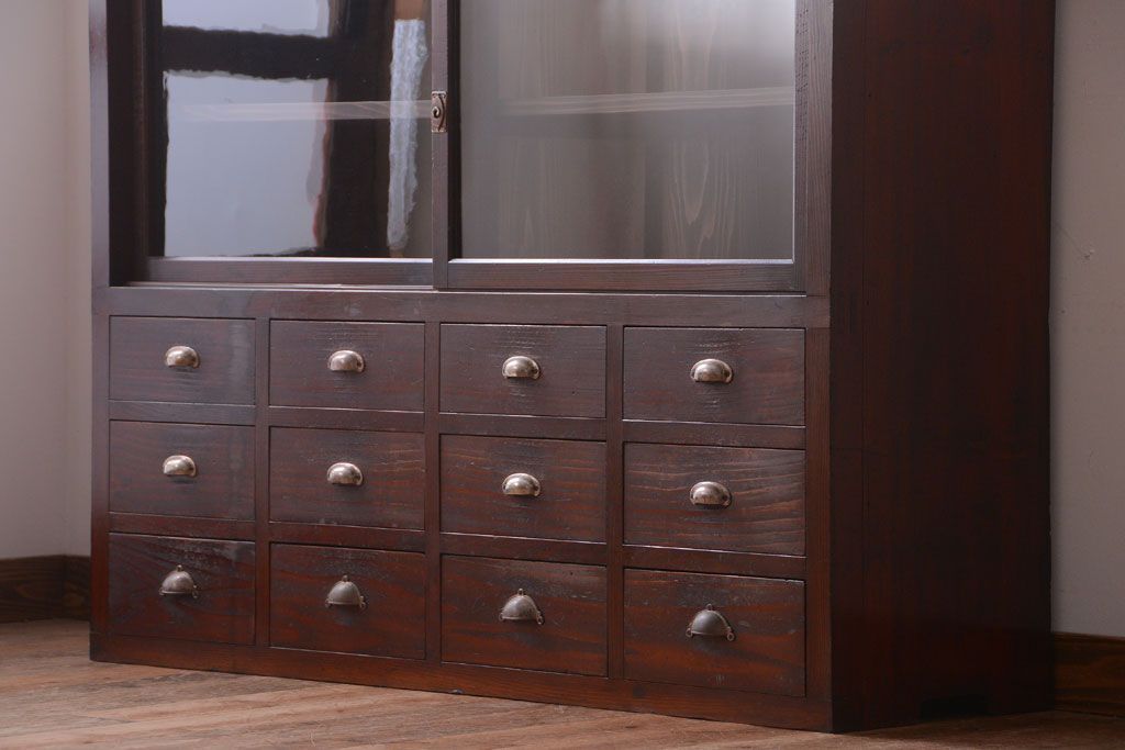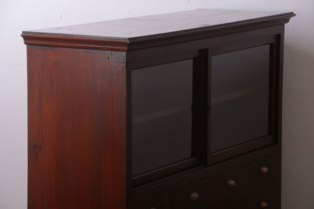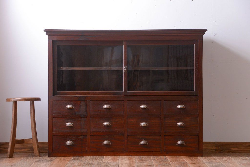 アンティーク家具 和製アンティーク 引き出し12杯付き!シックなガラス戸棚