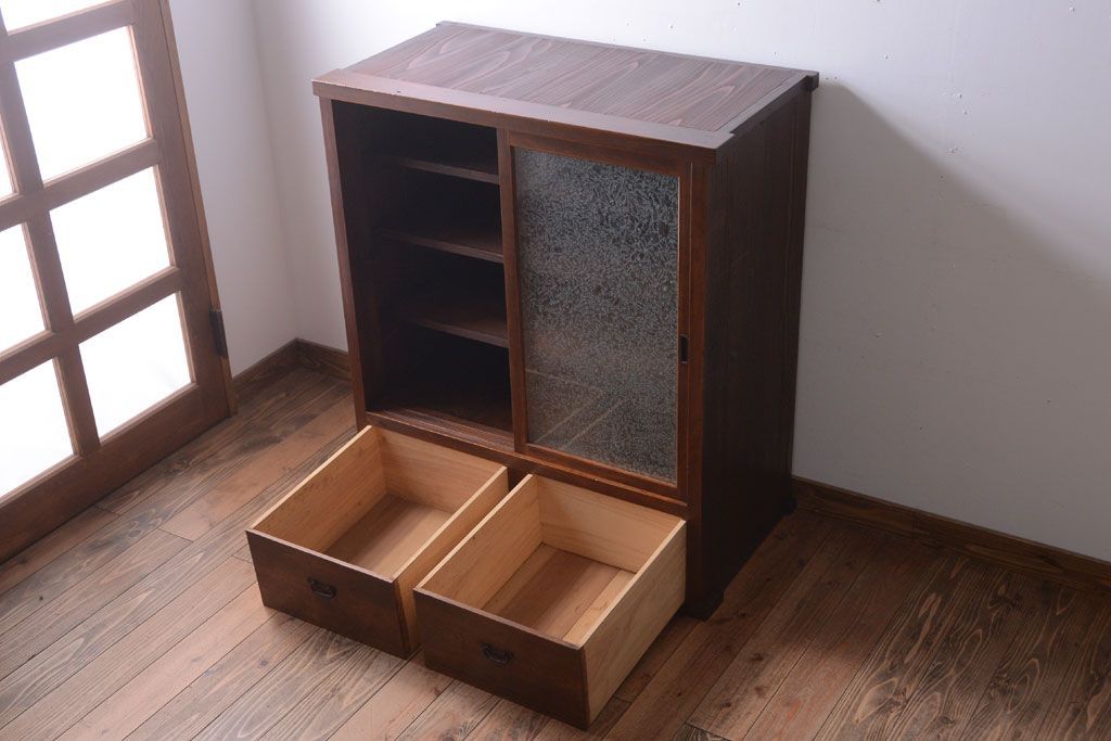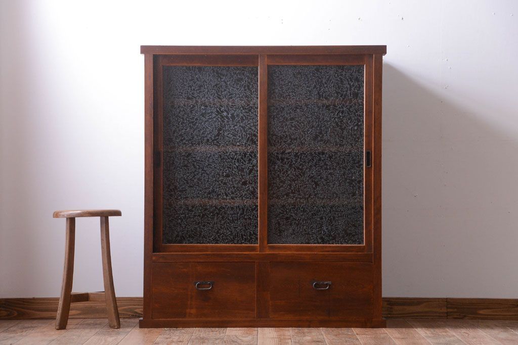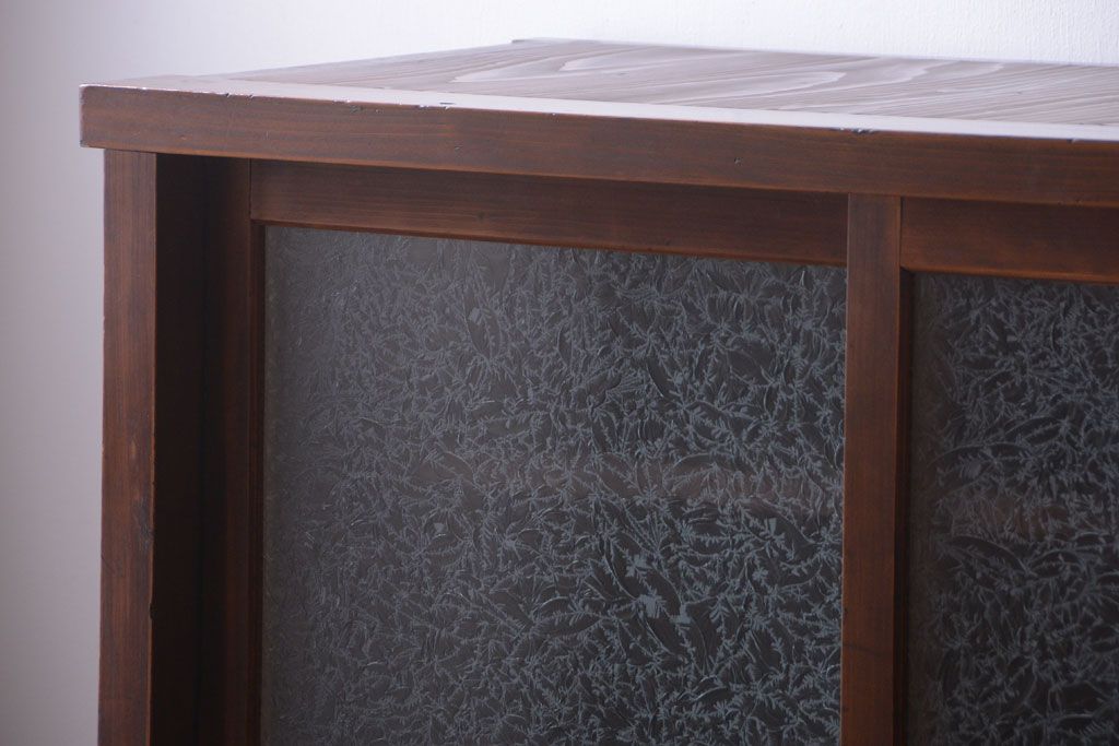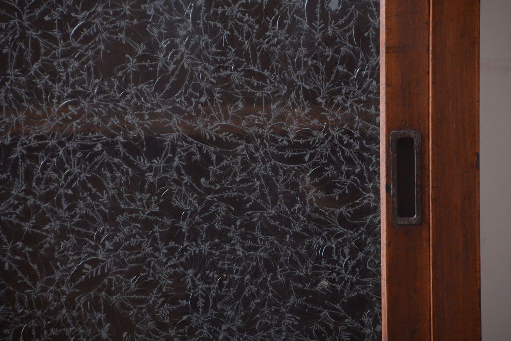 和製アンティーク 結霜ガラス入り!古い木製のガラス戸棚です。