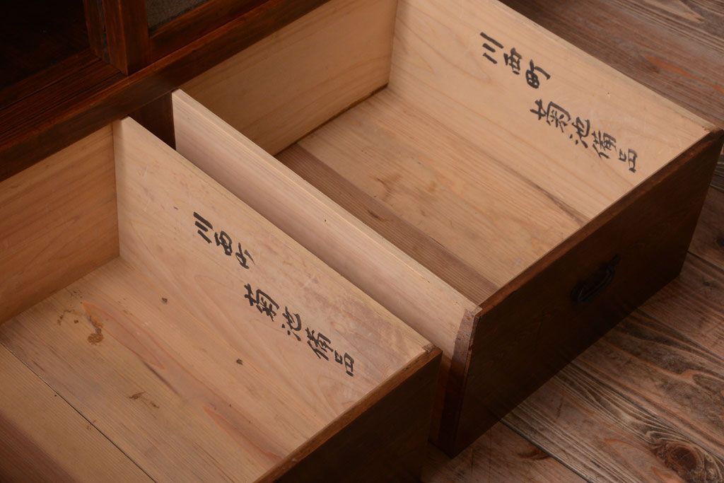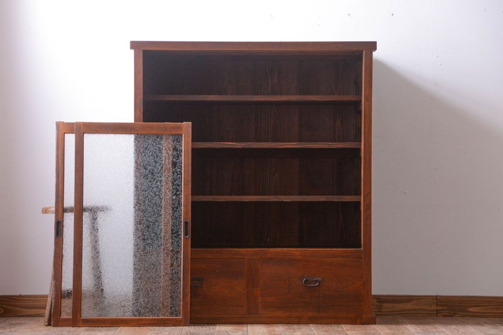 和製アンティークのガラス戸棚です。
