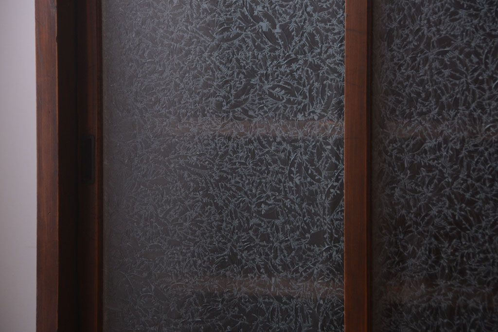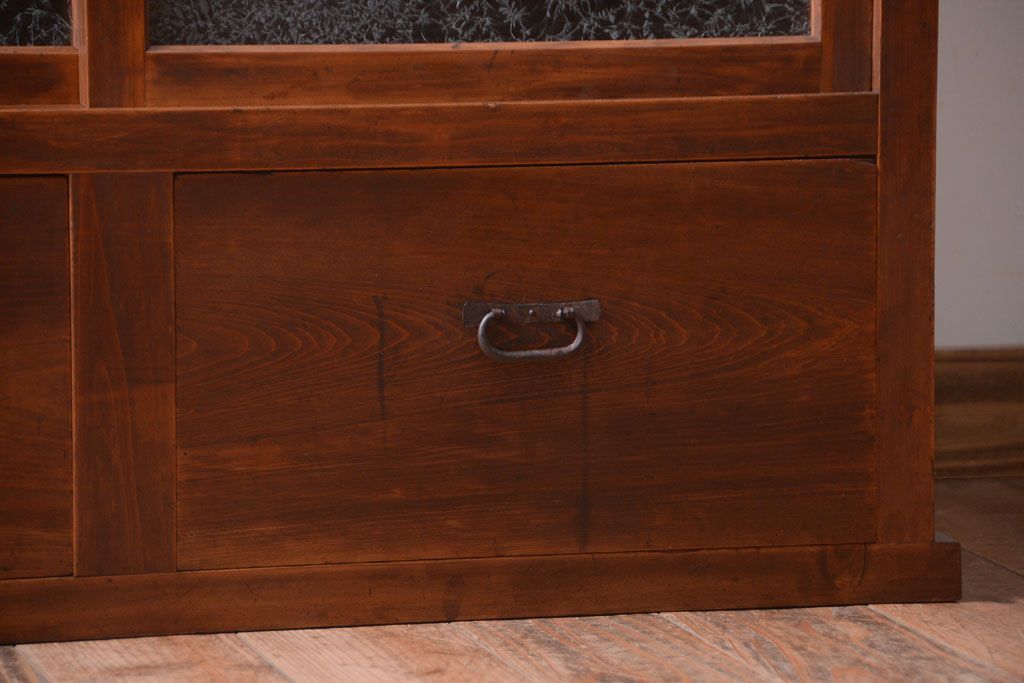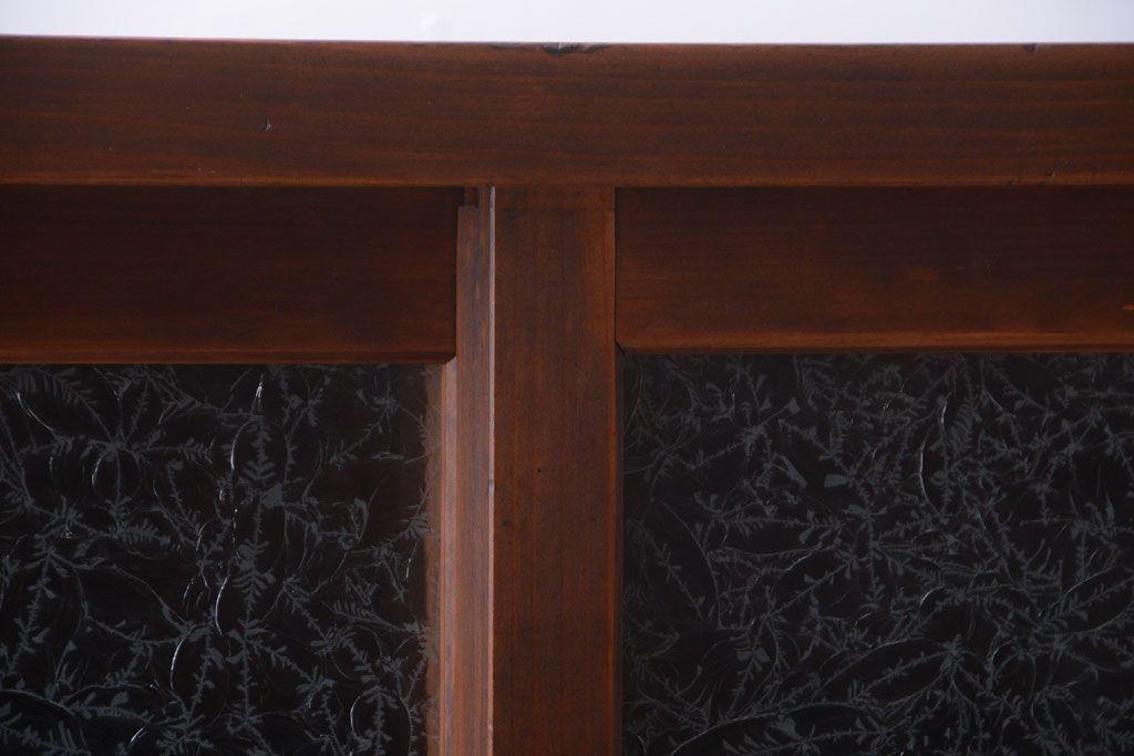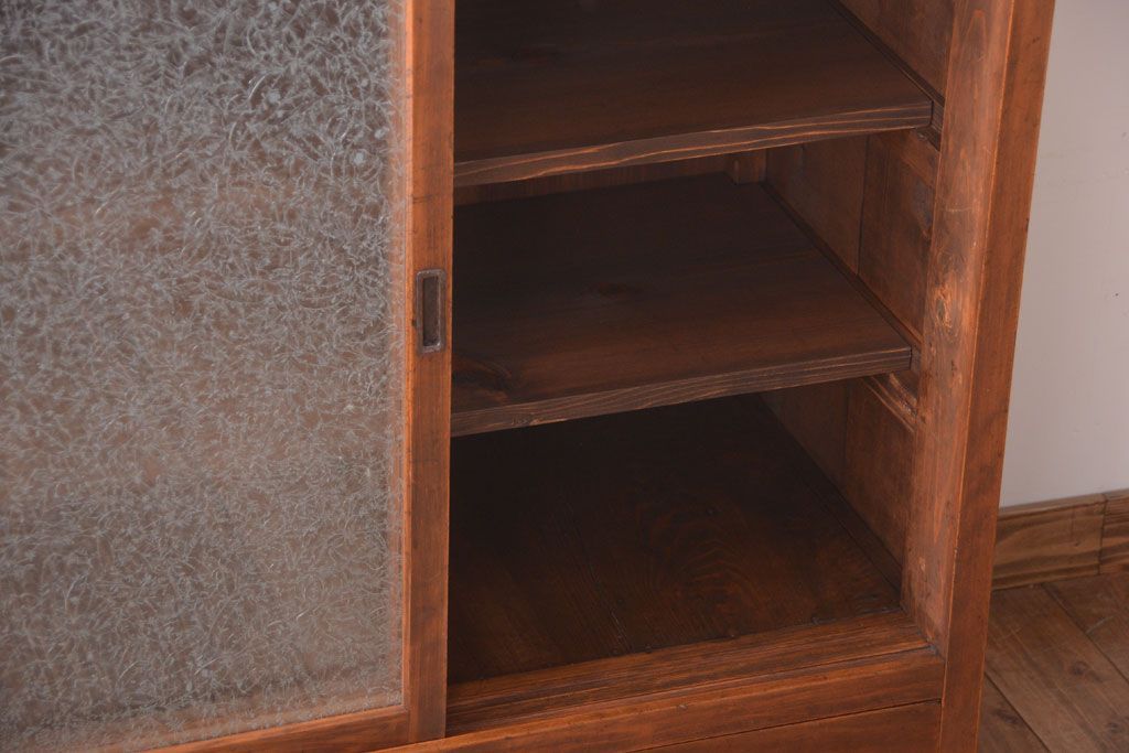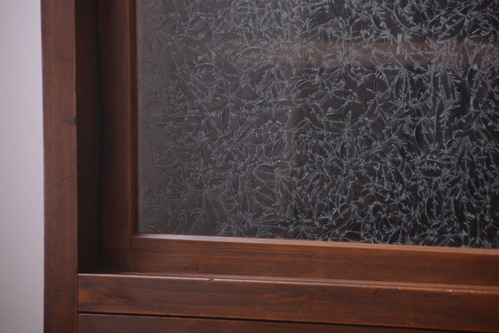 アンティーク家具 和製アンティーク 結霜ガラス入り!古い木製のガラス戸棚