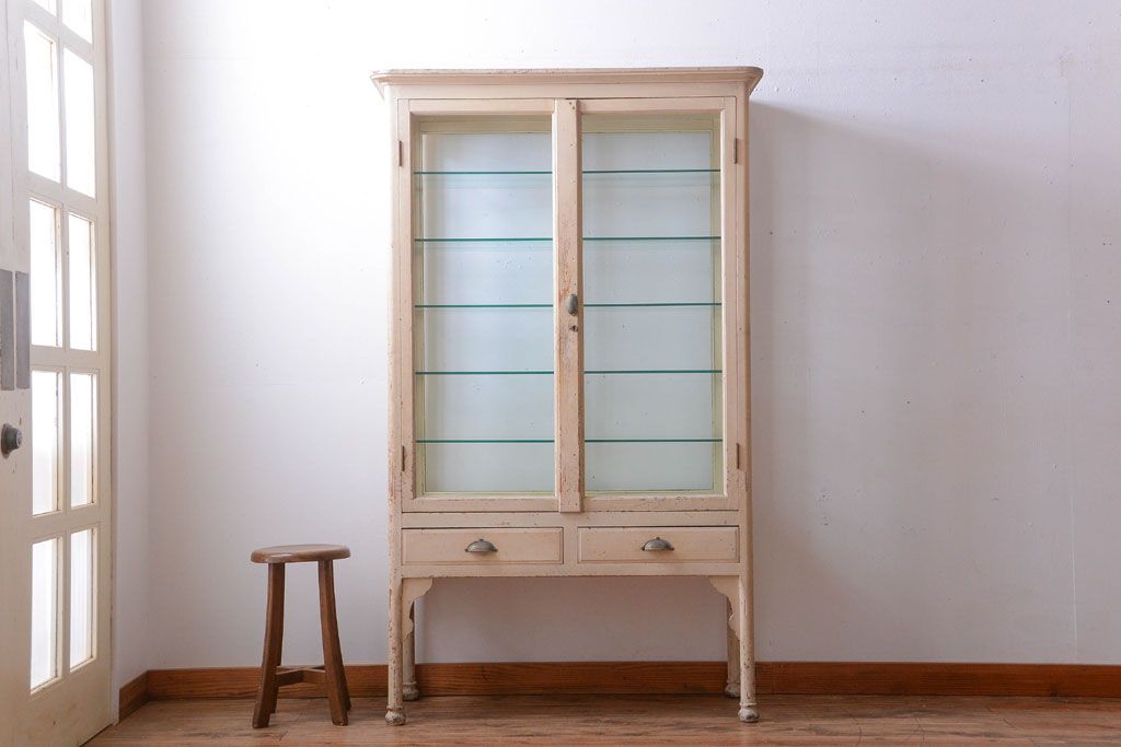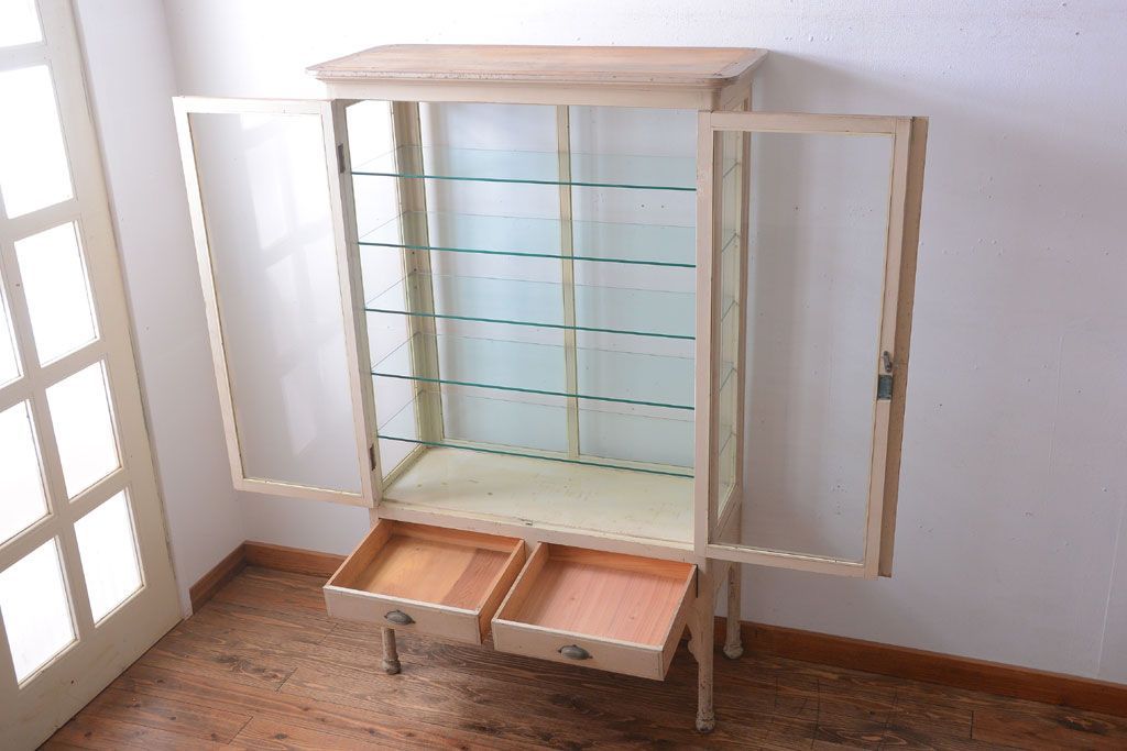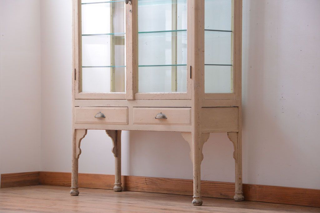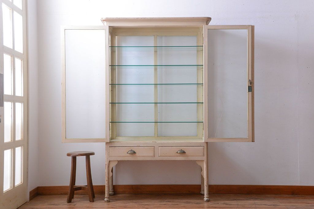 アンティーク家具 アンティーク オリジナルペイントの大振りなケビント(ガラスケース、キャビネット)
