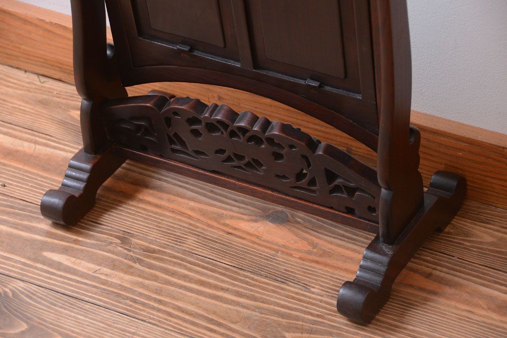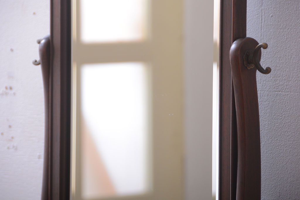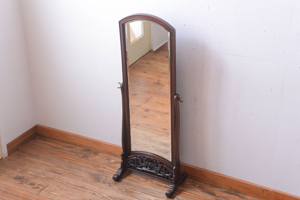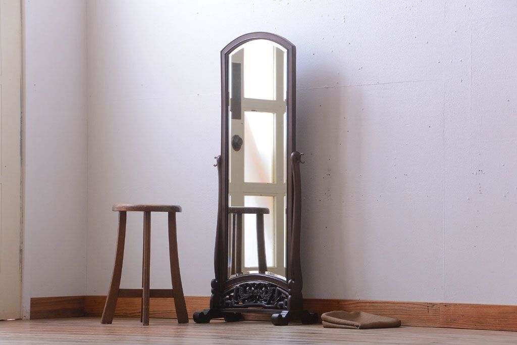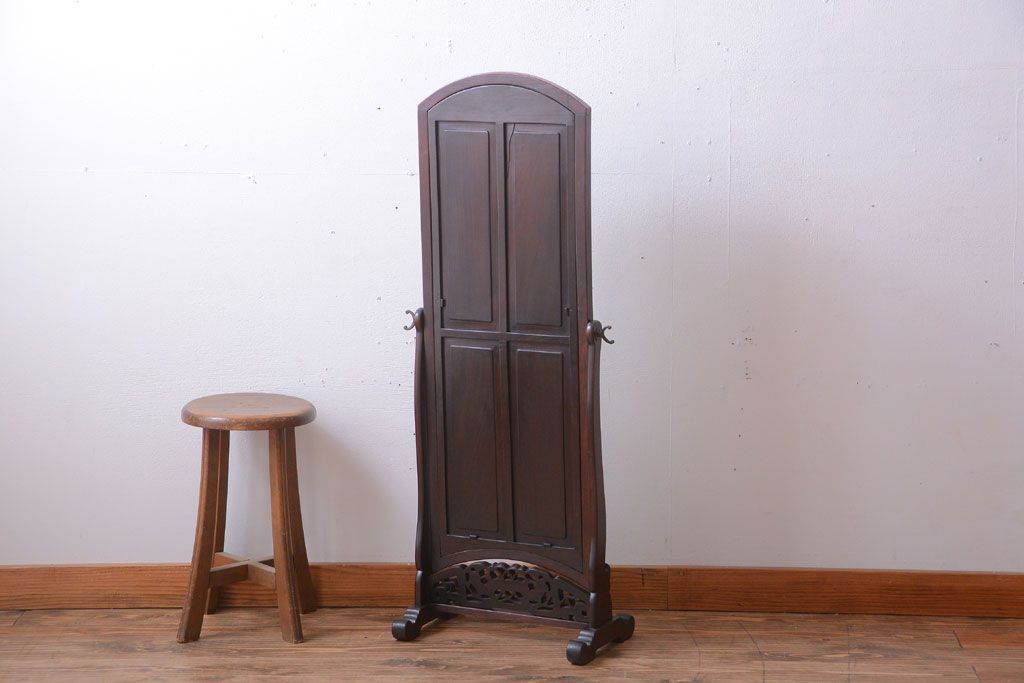 アンティーク雑貨 古民具・骨董 最高級品!唐木紫檀材の美しいアンティーク姿見(鏡・ミラー)