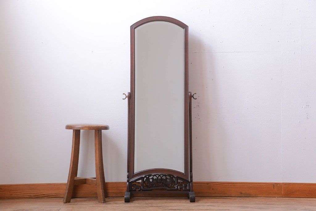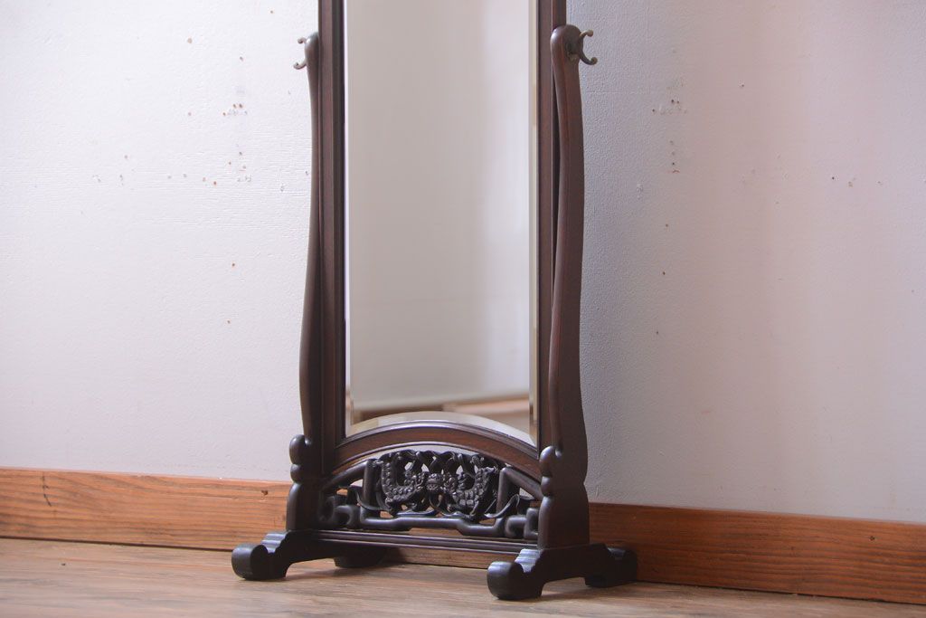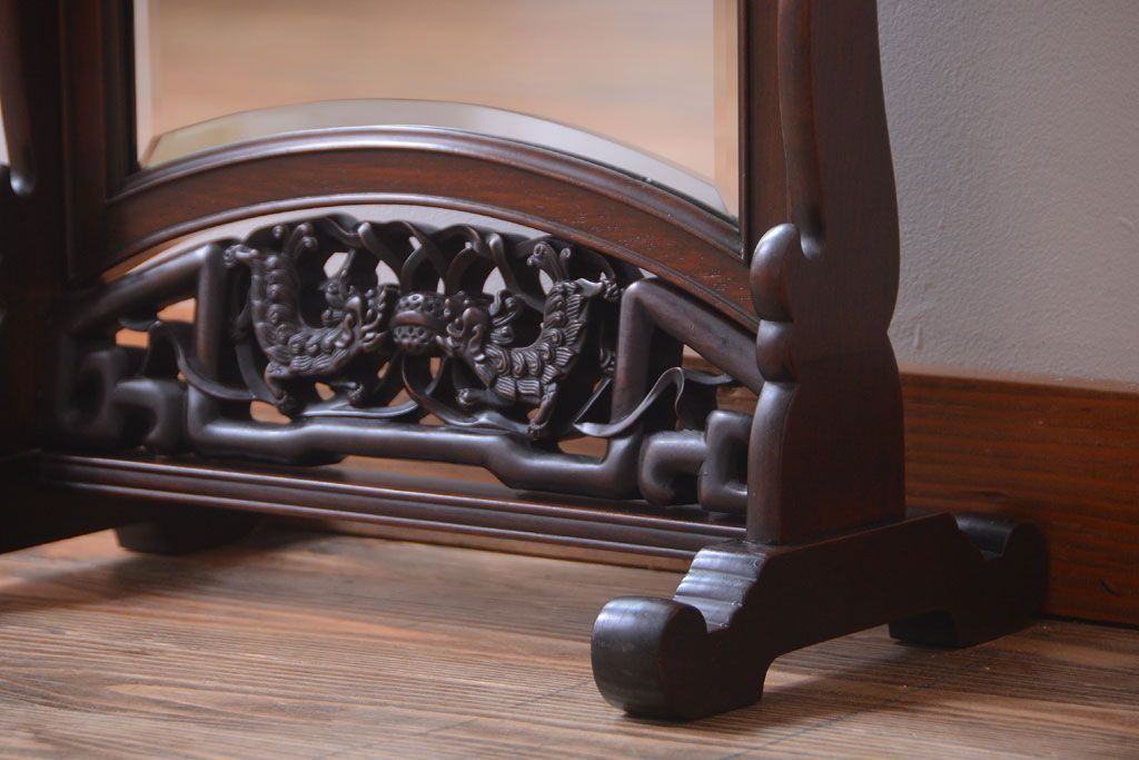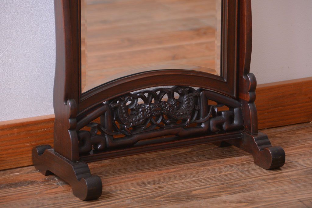 ラフジュ工房> 骨董・美術品 > アンティーク雑貨 古民具・骨董 最高級品!唐木紫檀材の美しいアンティーク姿見(鏡・ミラー)