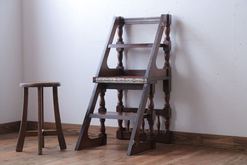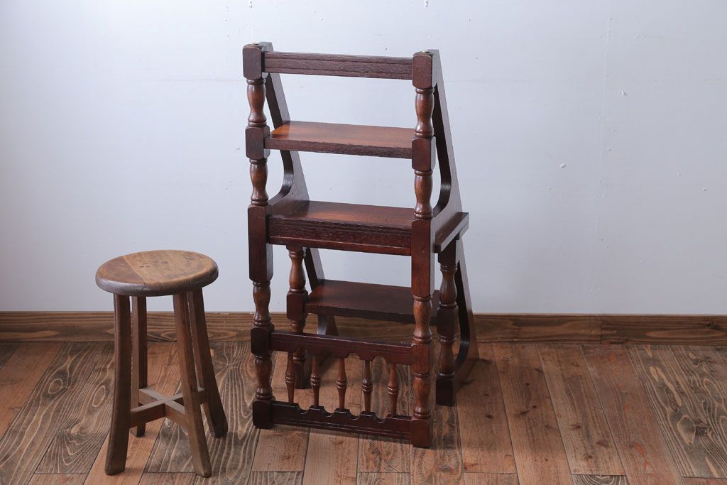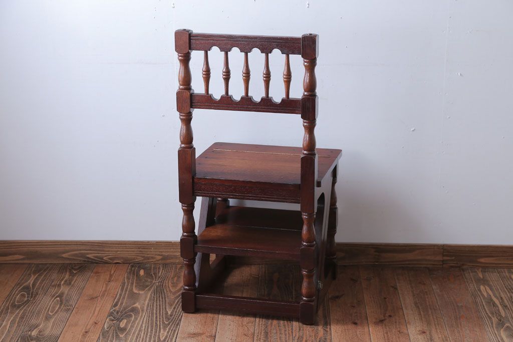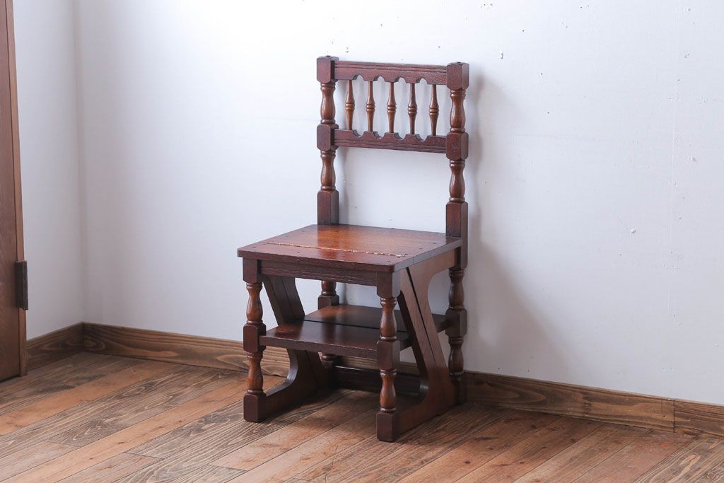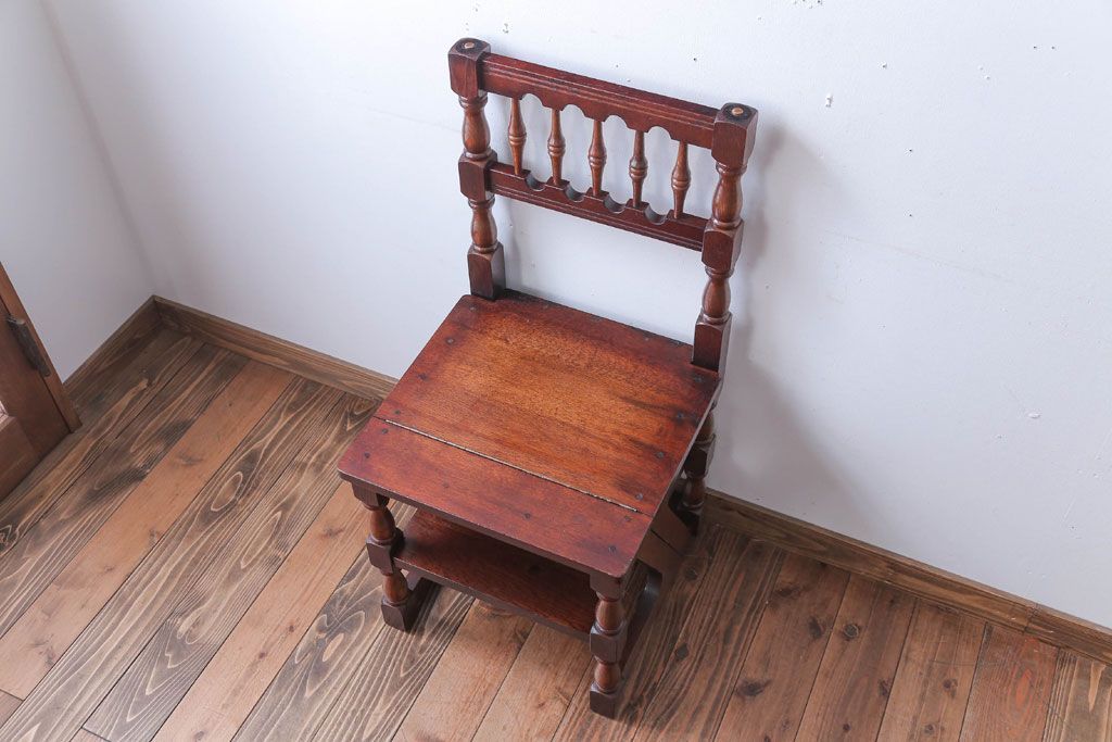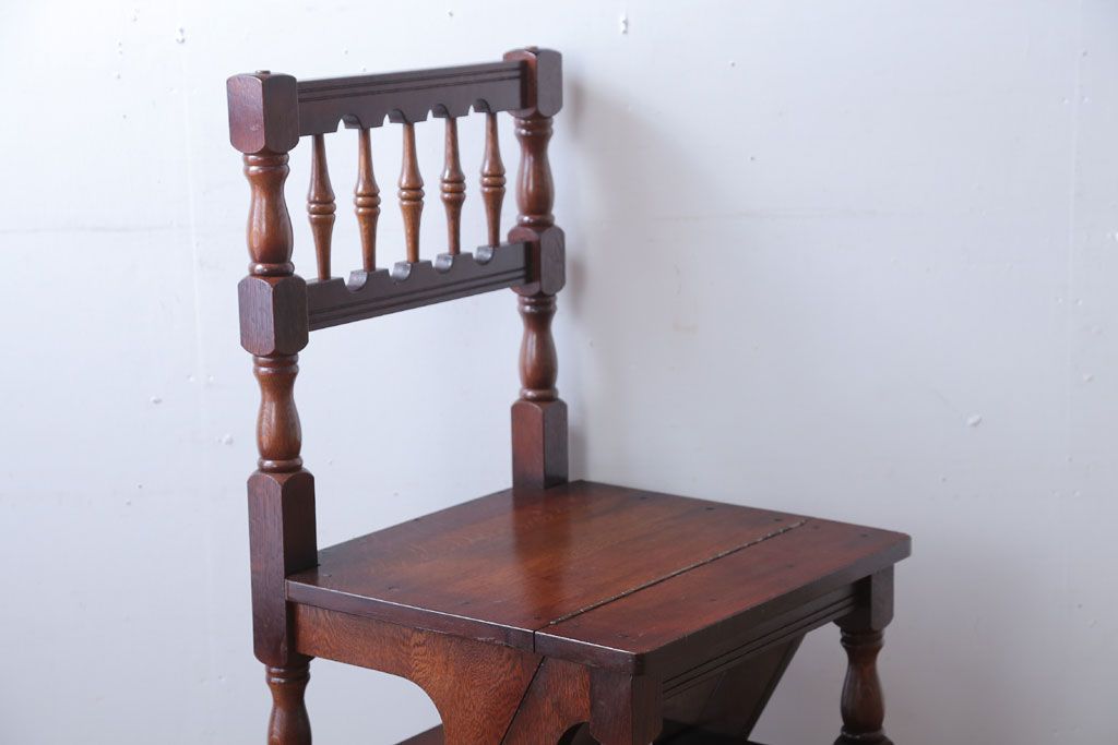 アンティーク家具 イギリスアンティーク 重厚なオーク材の2wayチェア(脚立)