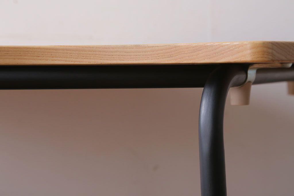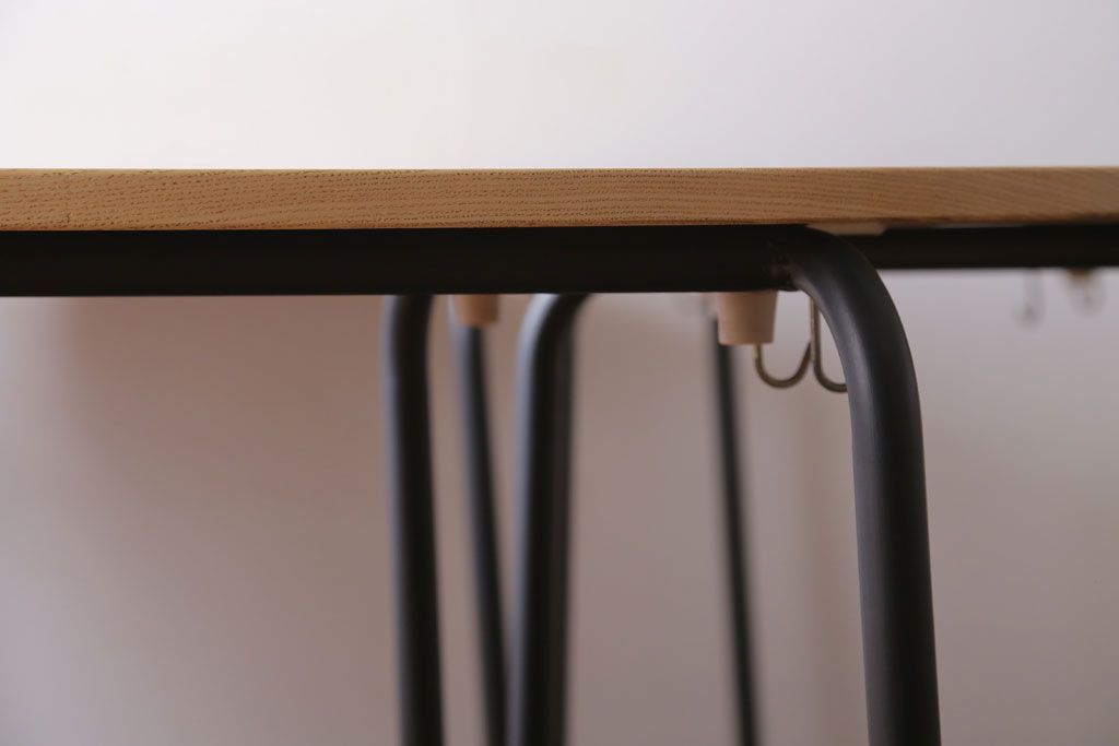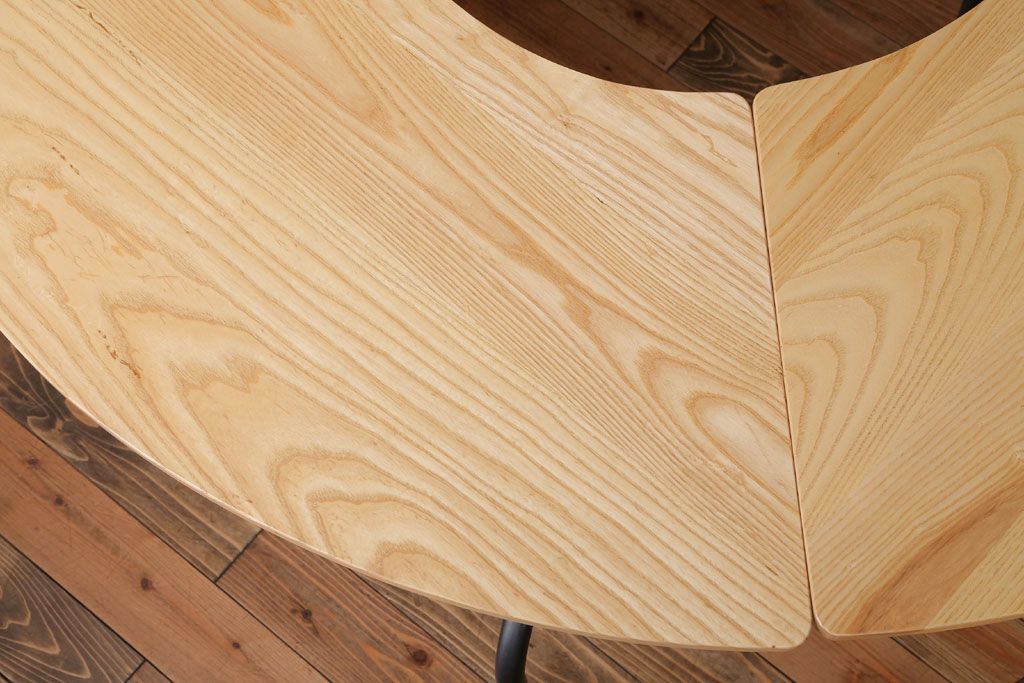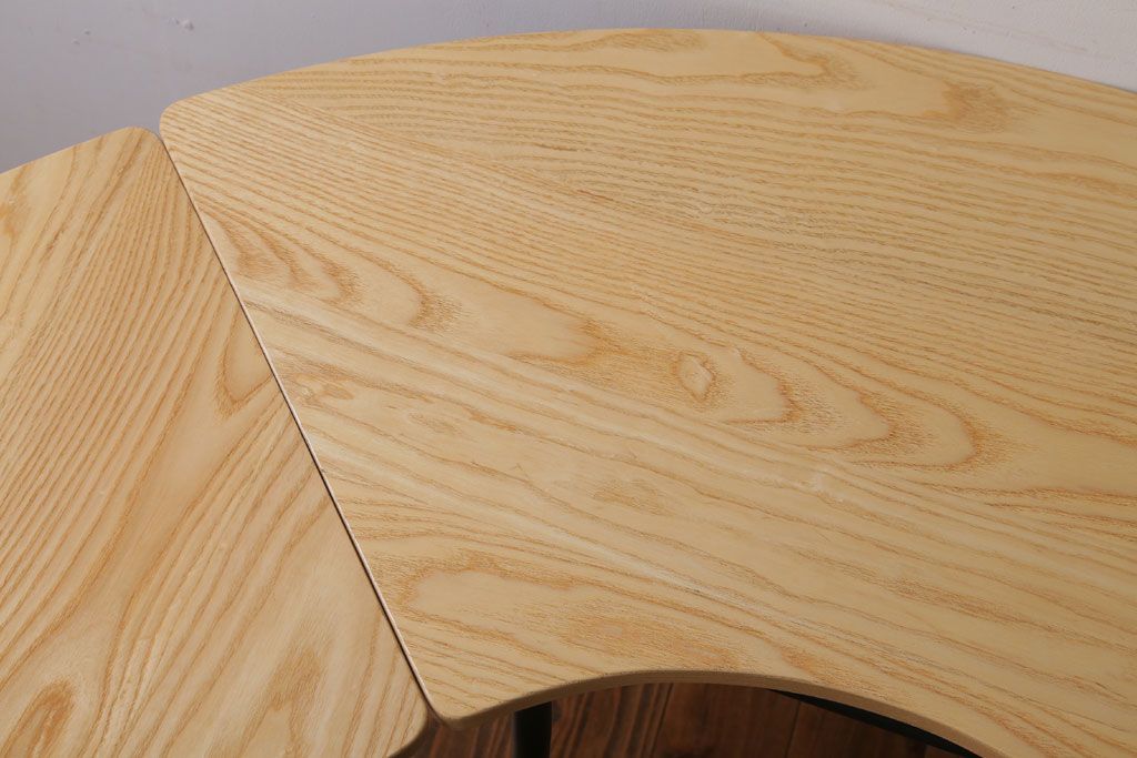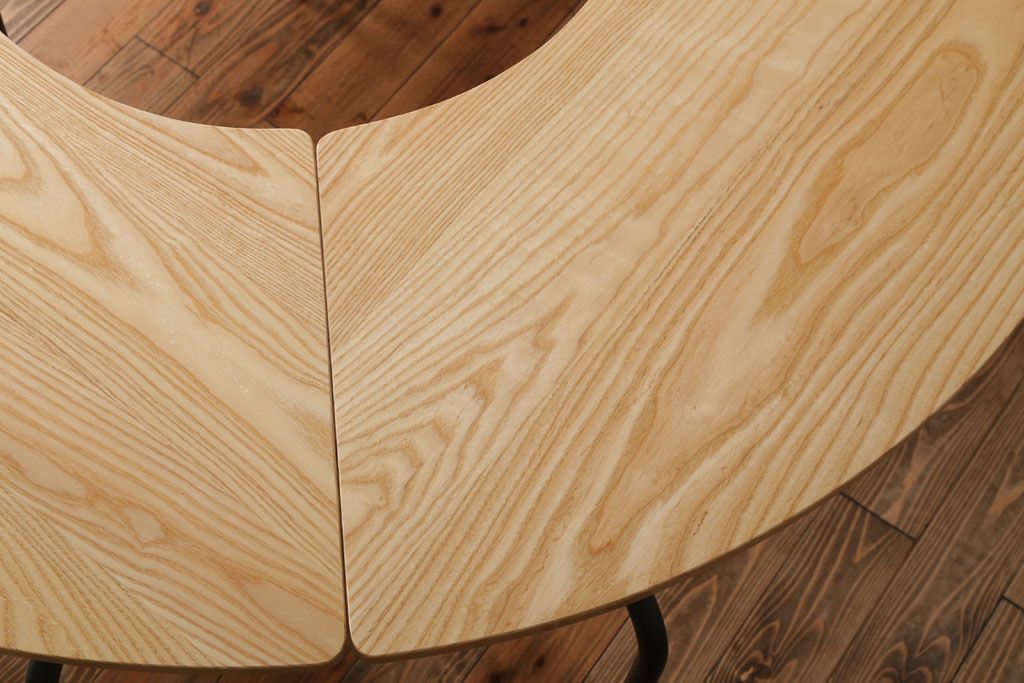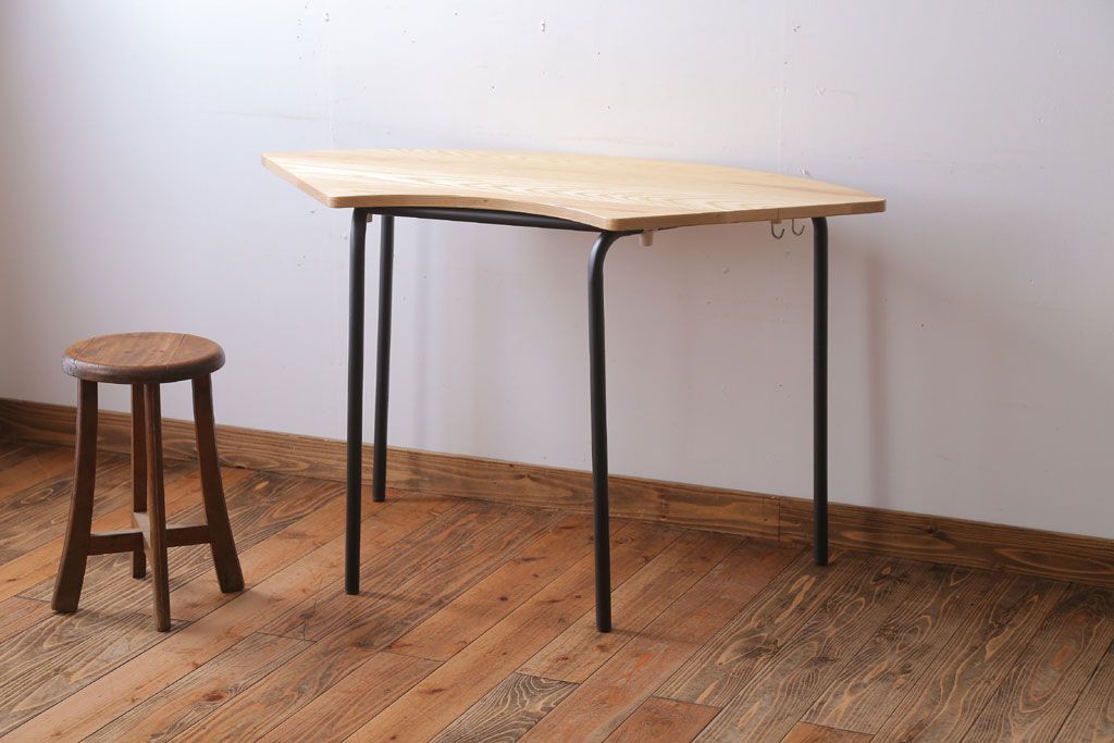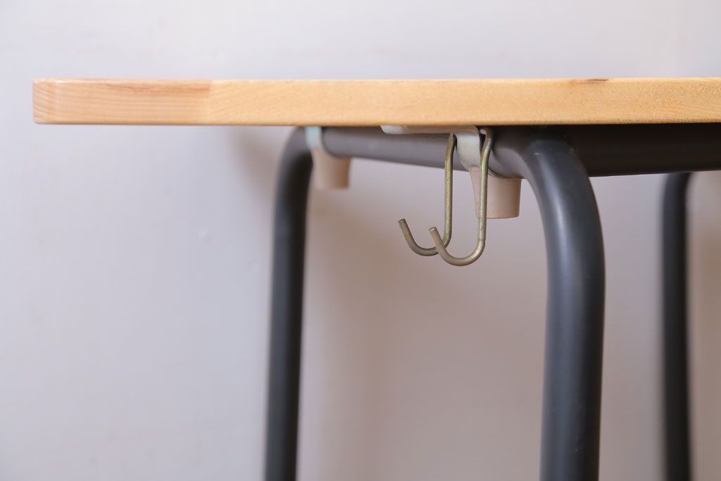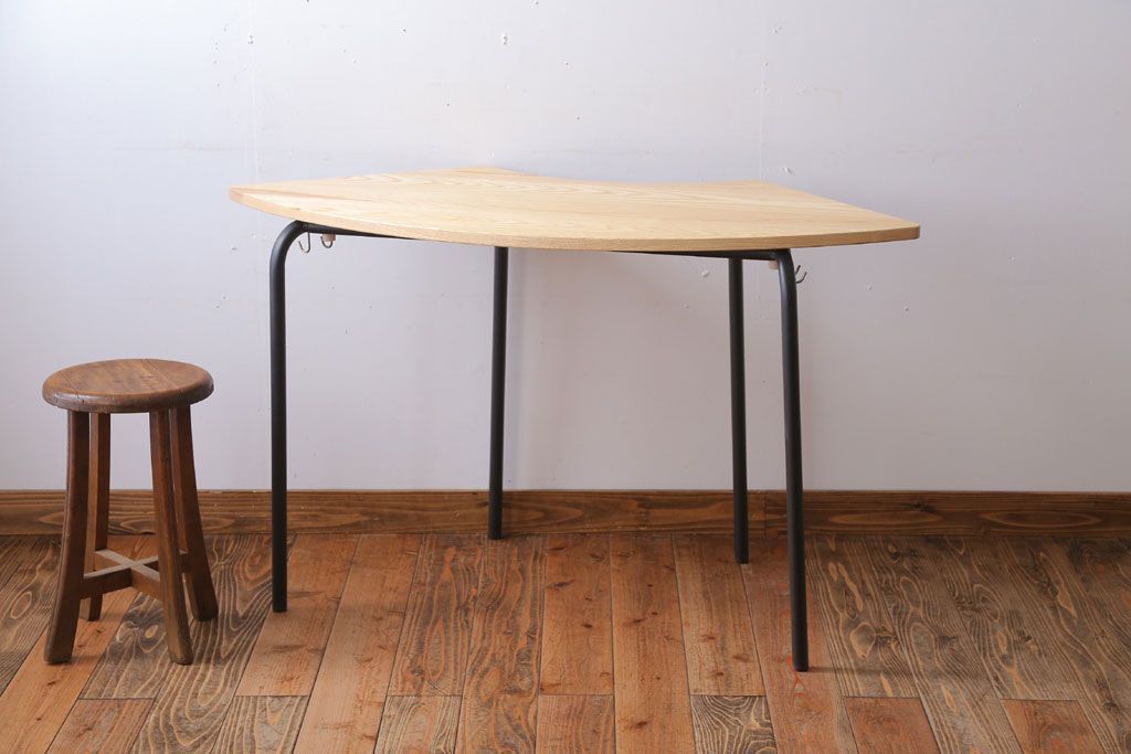 ラフジュ工房> デスク> ワークデスク > アンティーク家具 天板無垢材のバッグホルダー付きドーナツ型テーブル(4台セット、丸テーブル、円テーブル、鉄脚テーブル)