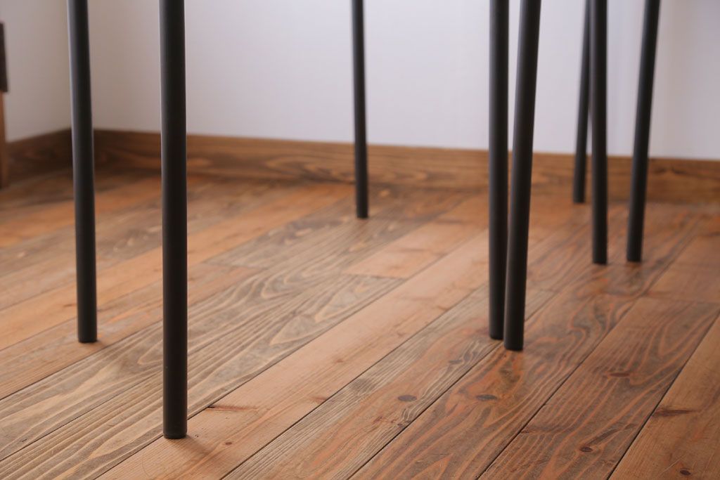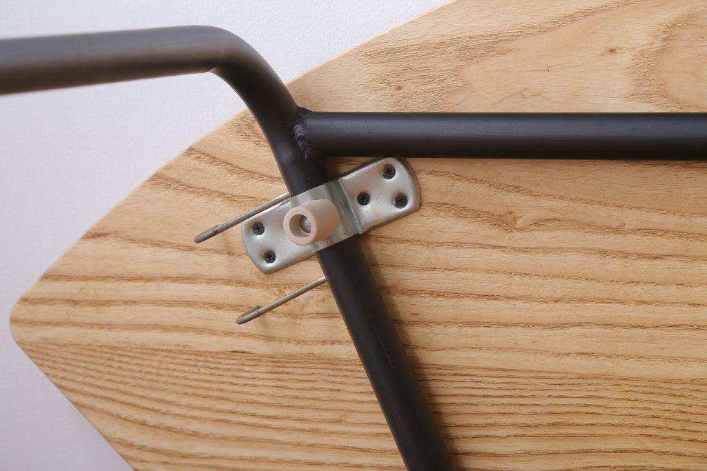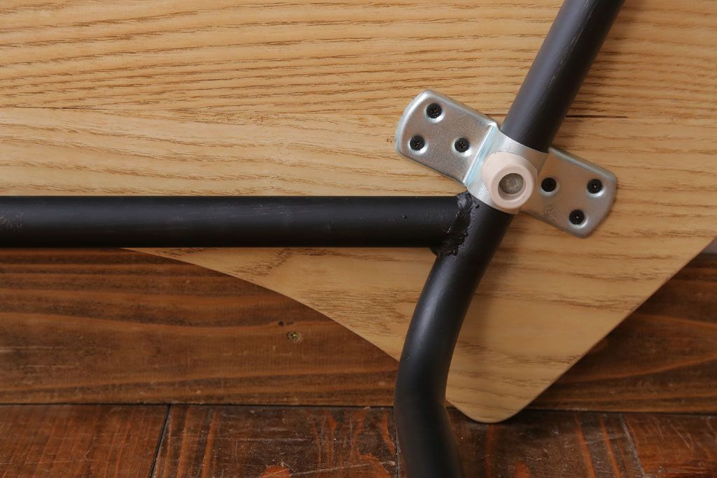 ラフジュ工房> テーブル> 鉄脚テーブル > アンティーク家具 天板無垢材のバッグホルダー付きドーナツ型テーブル(4台セット、丸テーブル、円テーブル、鉄脚テーブル)