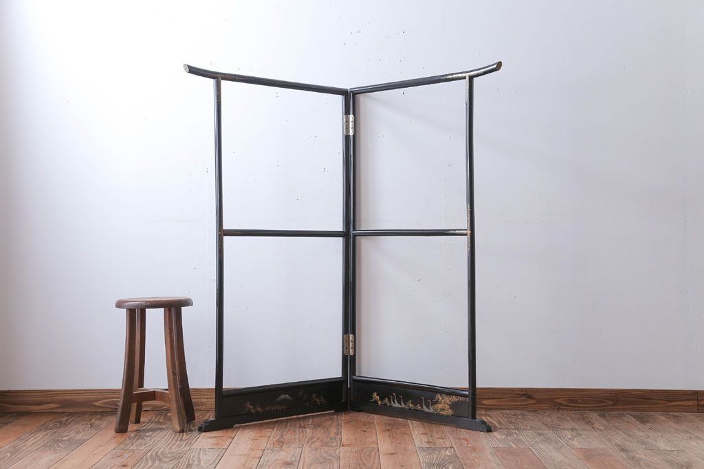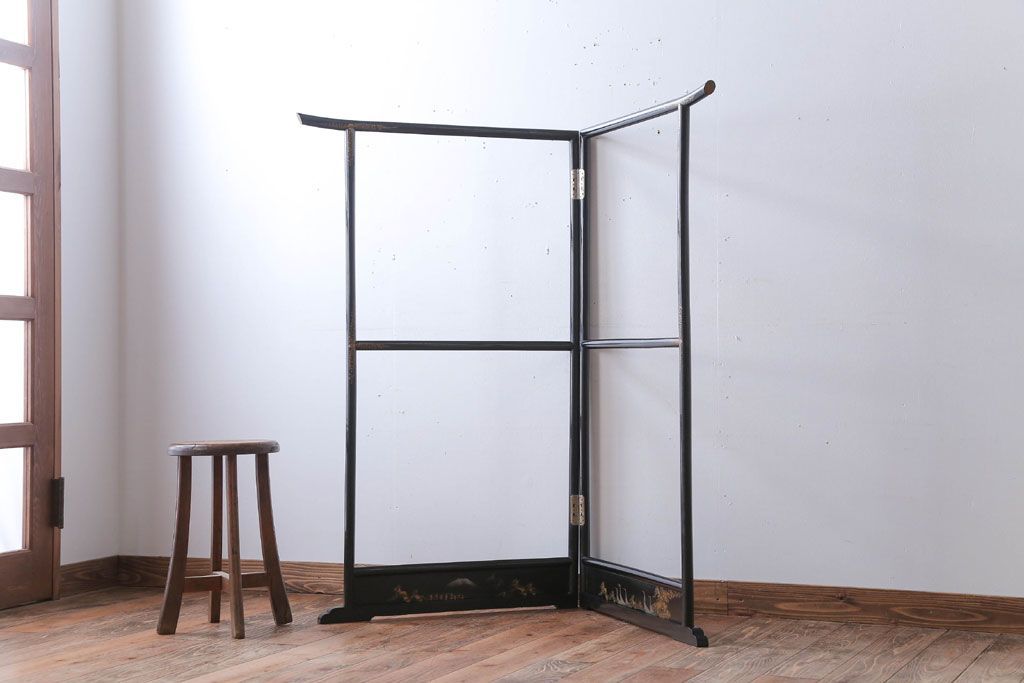 ラフジュ工房> 骨董・美術品 > アンティーク雑貨 古民具・骨董 鶴の図 和モダンな屏風衣桁(1)