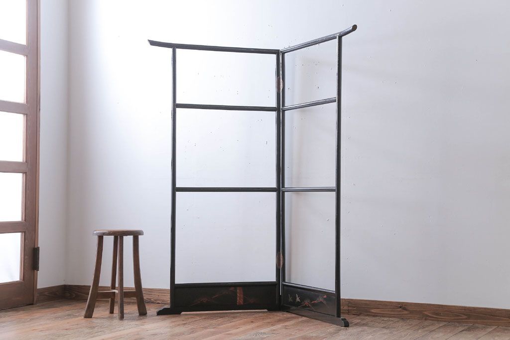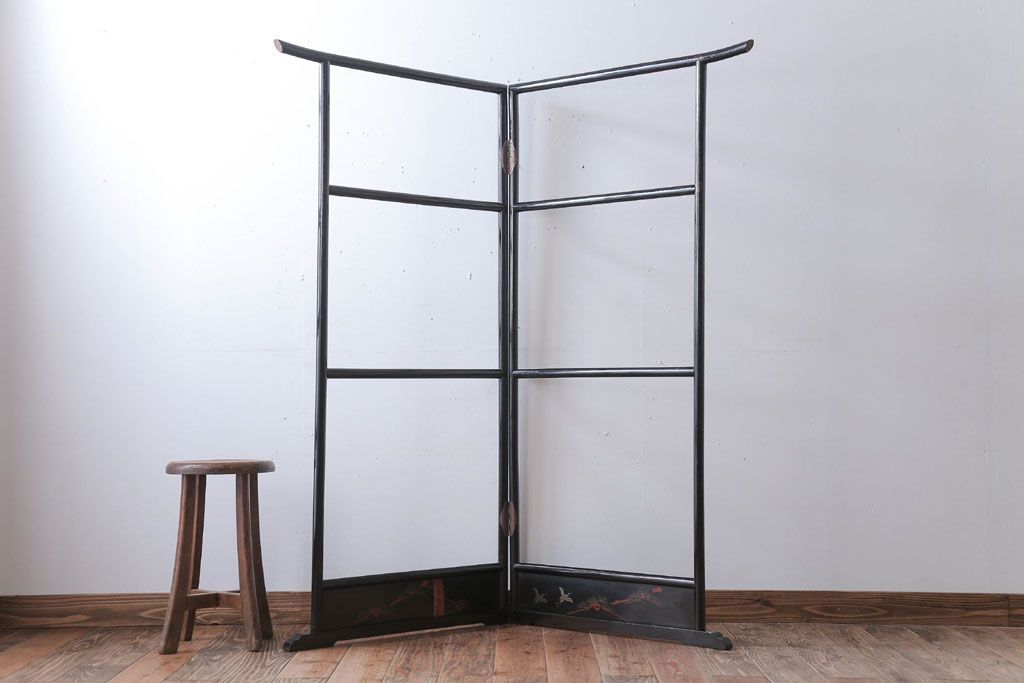 ラフジュ工房> 骨董・美術品 > アンティーク雑貨 古民具・骨董 鶴の図 和モダンな屏風衣桁(2)