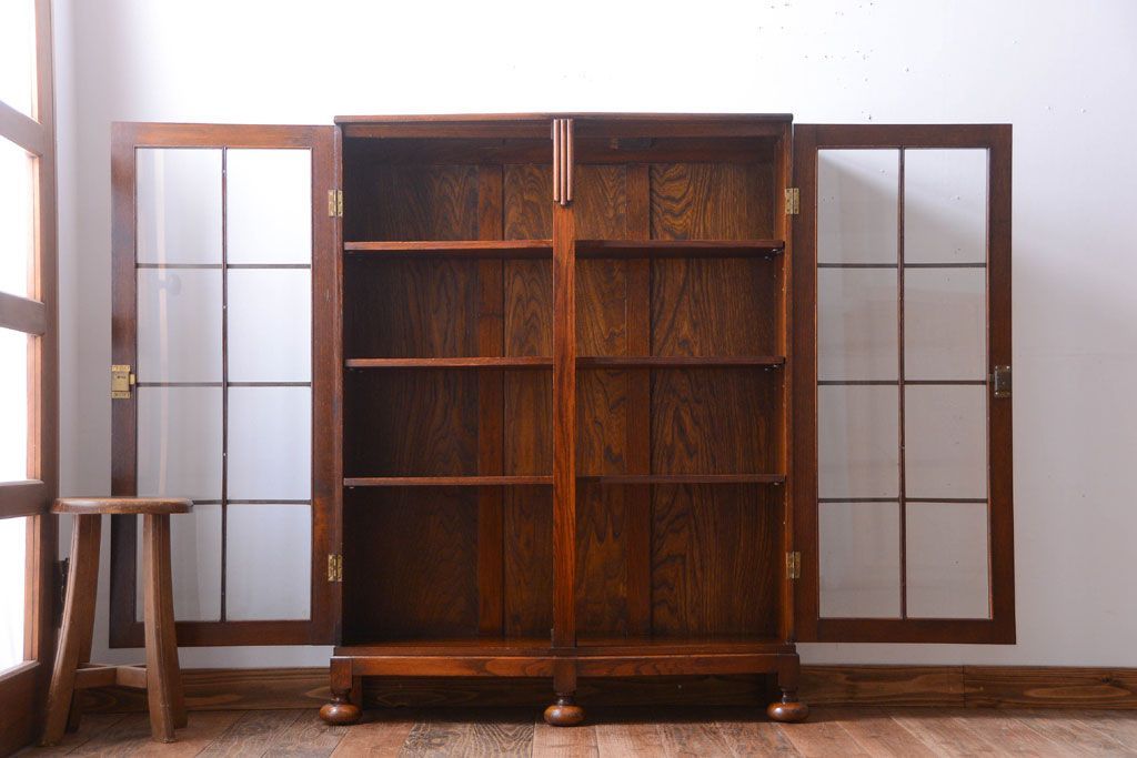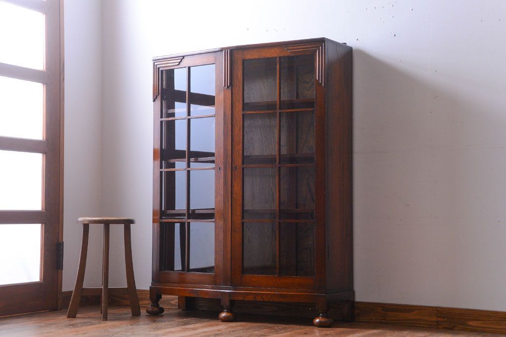 アンティーク家具 イギリスアンティーク オーク材のペンタゴンブックケース