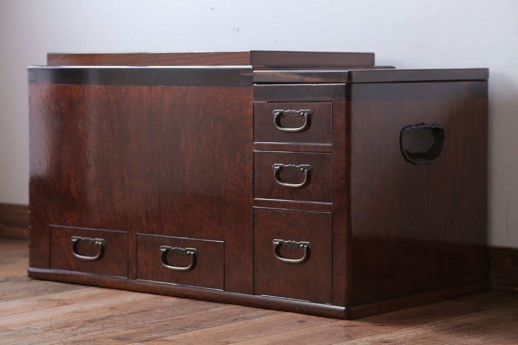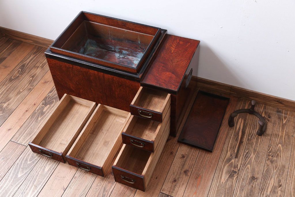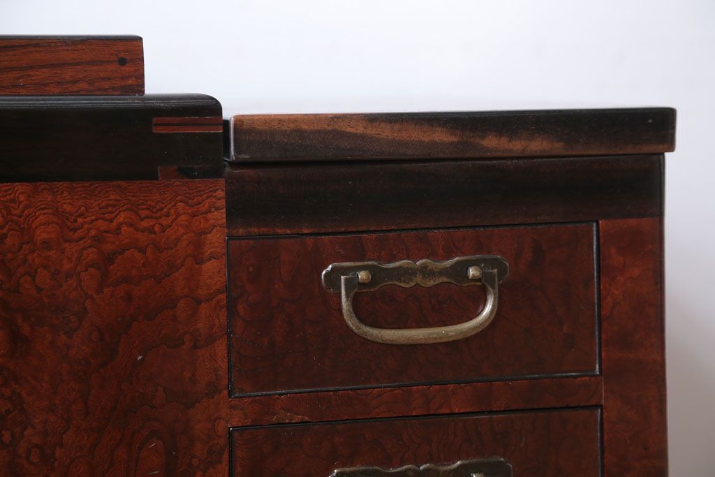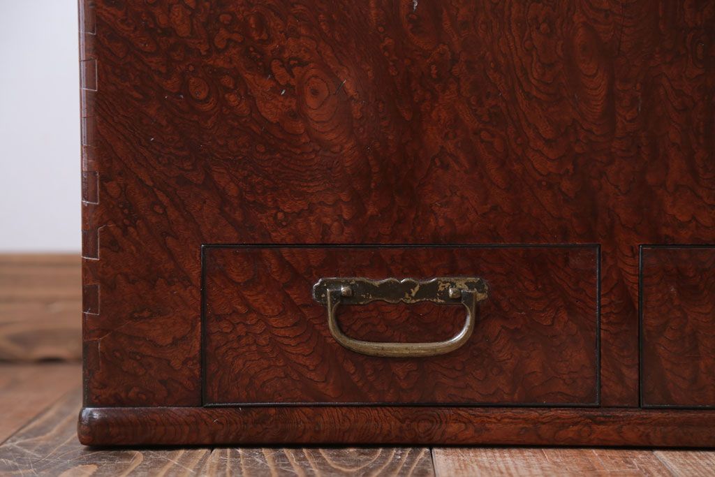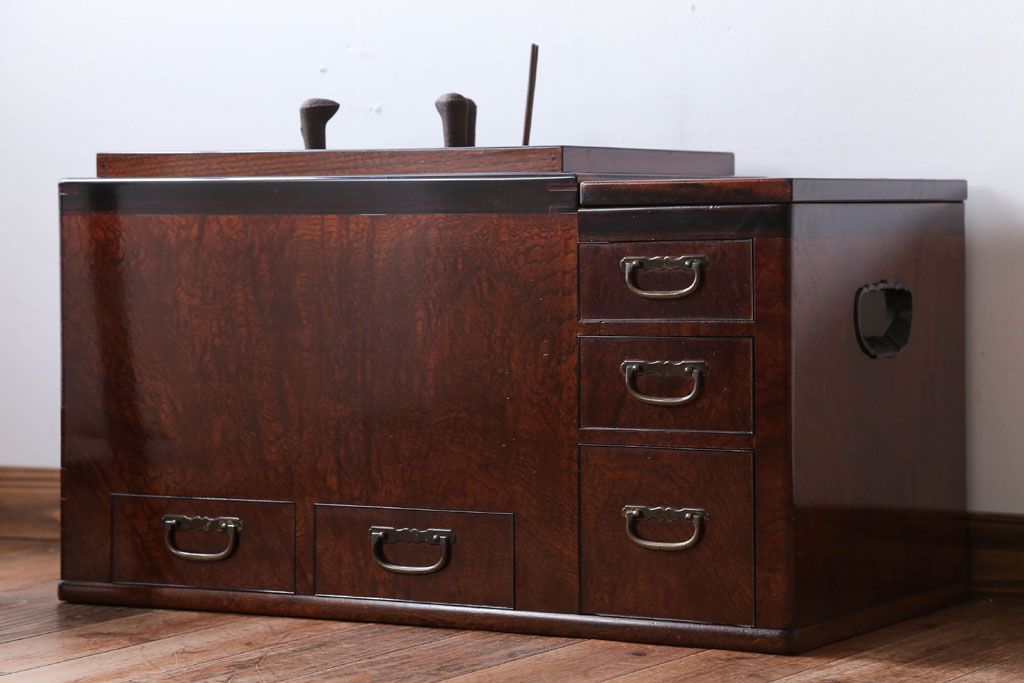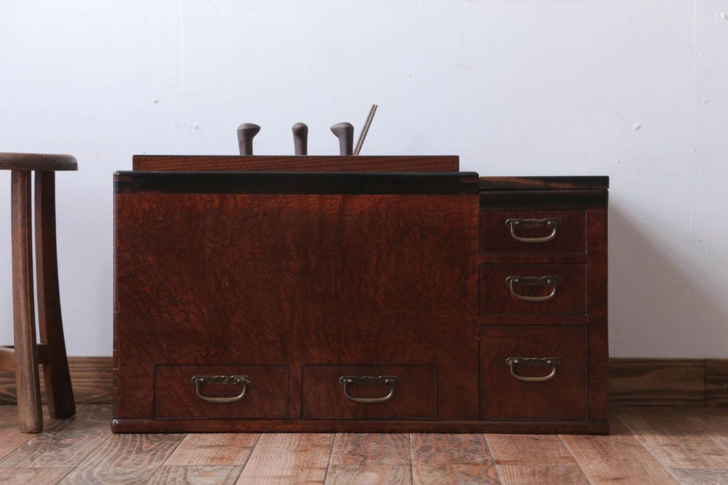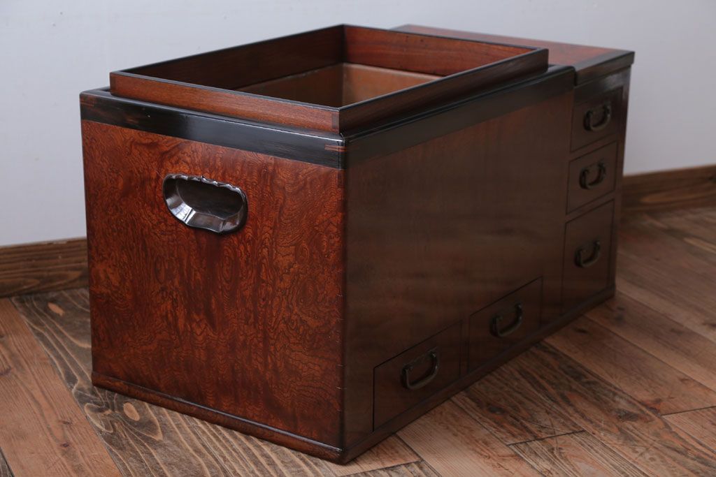骨董・美術品 > アンティーク雑貨 古民具・骨董 最高級品!玉杢の極めて美しい素晴らしいアンティーク大振り長火鉢