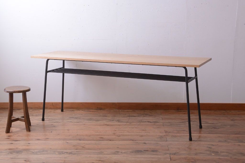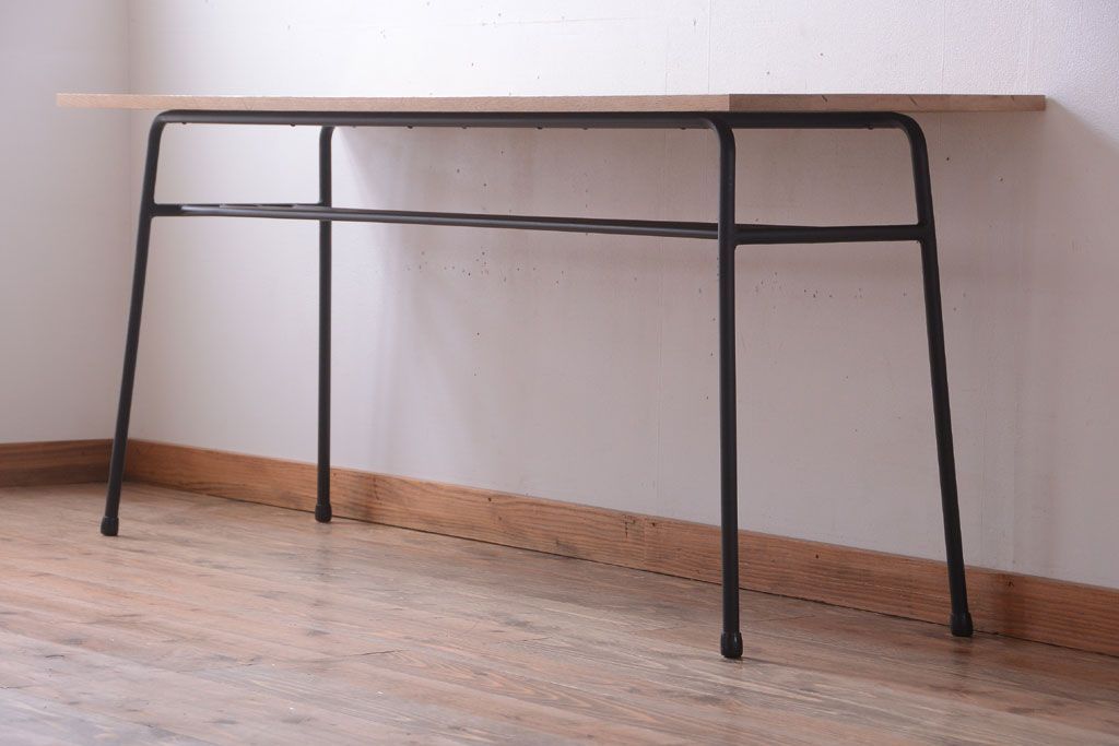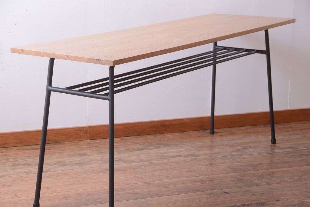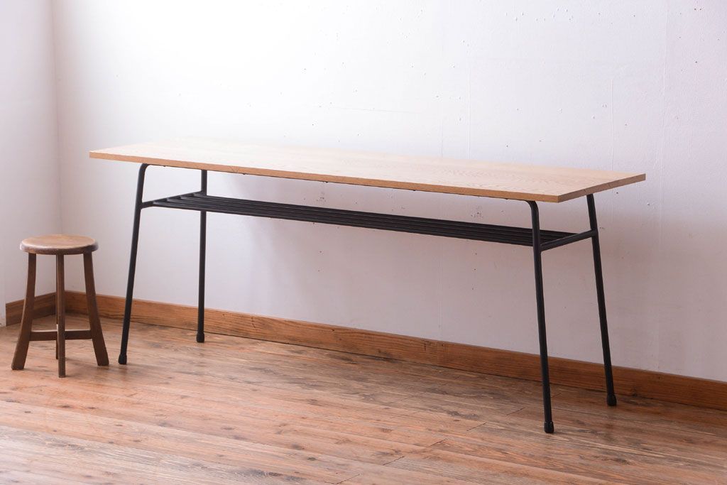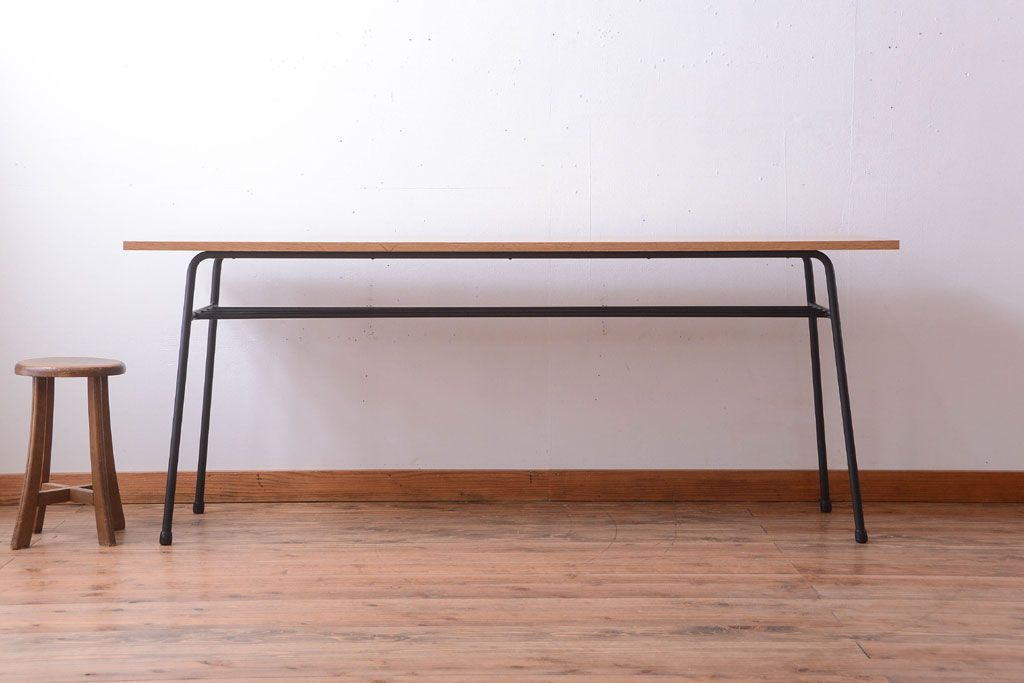 ラフジュ工房> テーブル> カウンターテーブル > アンティーク 天板ナラ材製! ラフジュオリジナルペイントの鉄脚リメイクテーブル(1)