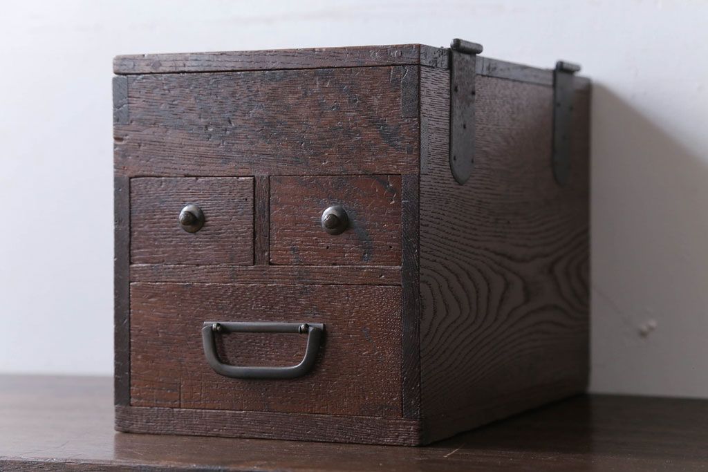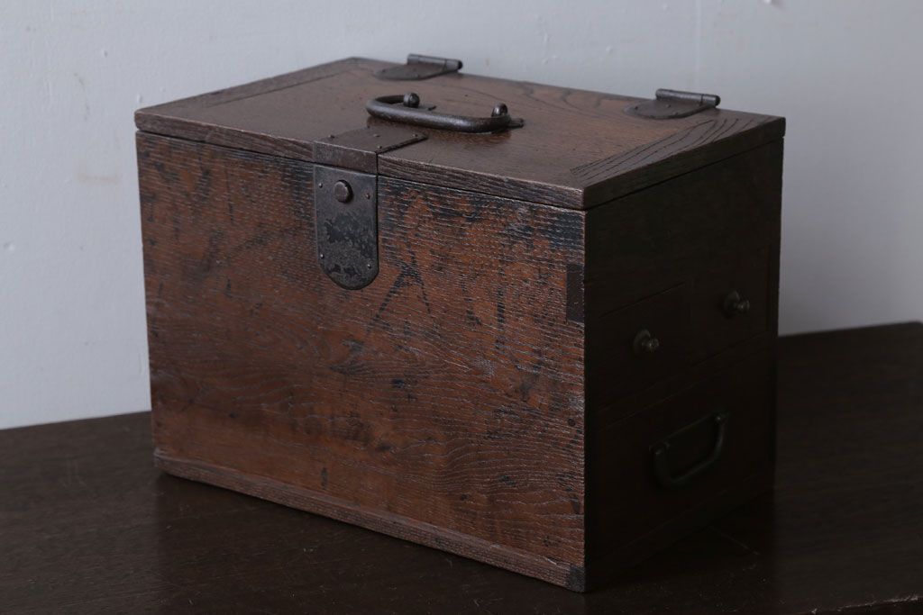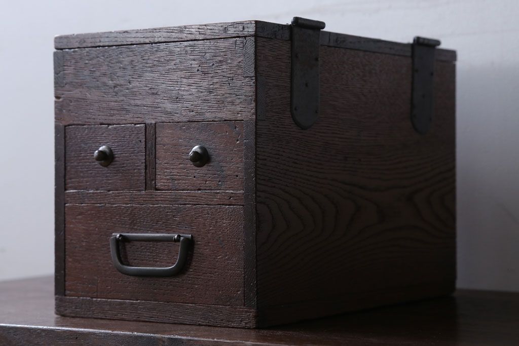 ラフジュ工房> 骨董・美術品 > アンティーク雑貨 古民具・骨董 総栗材!アンティーク硯箱(小物入れ)