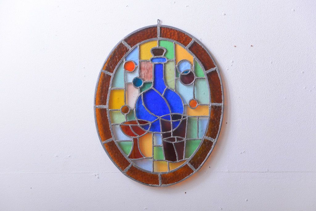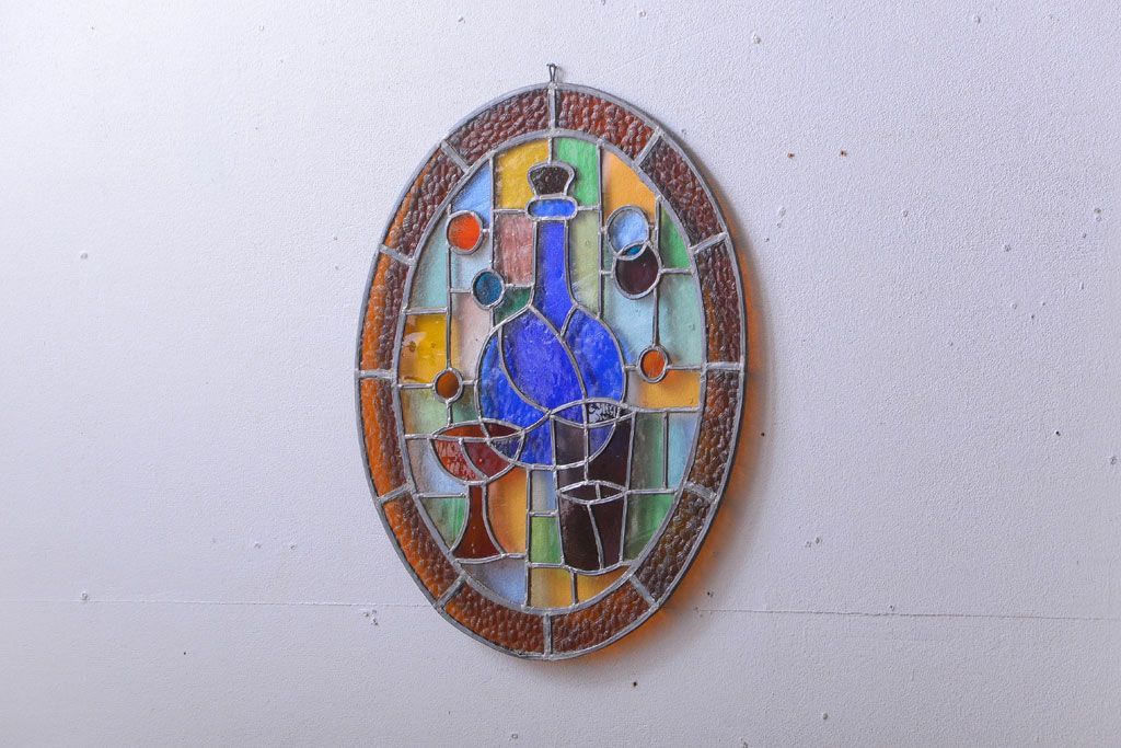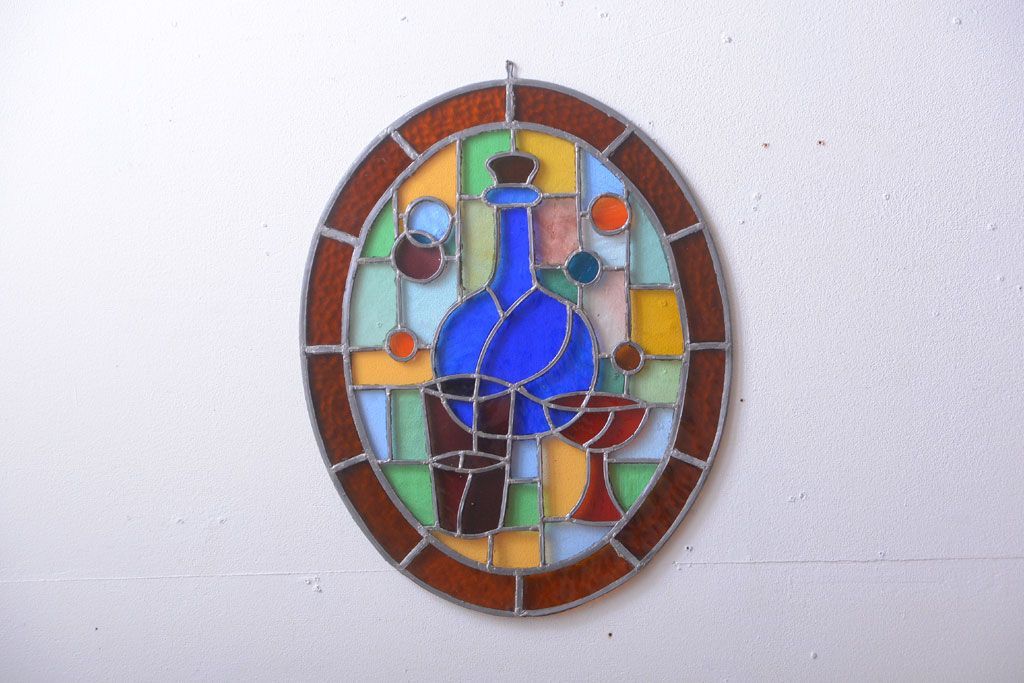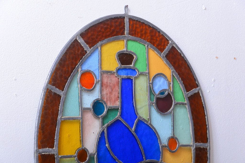 アンティーク雑貨 アンティーク 壁掛けステンドグラスパネル ガラス瓶