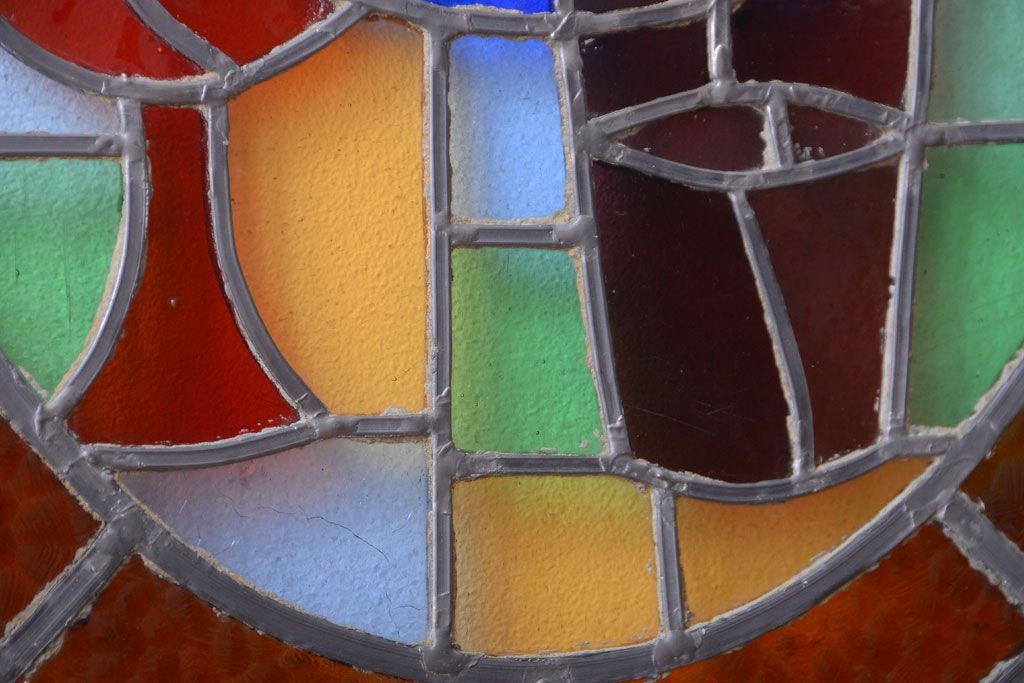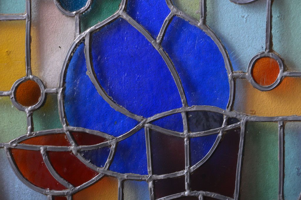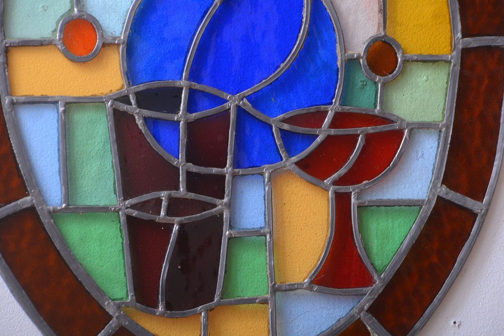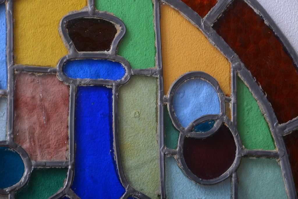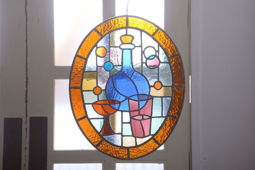アンティーク雑貨 アンティーク 壁掛けステンドグラスパネル ガラス瓶
