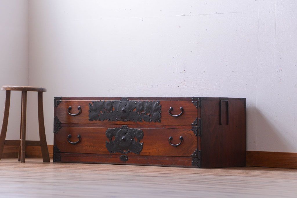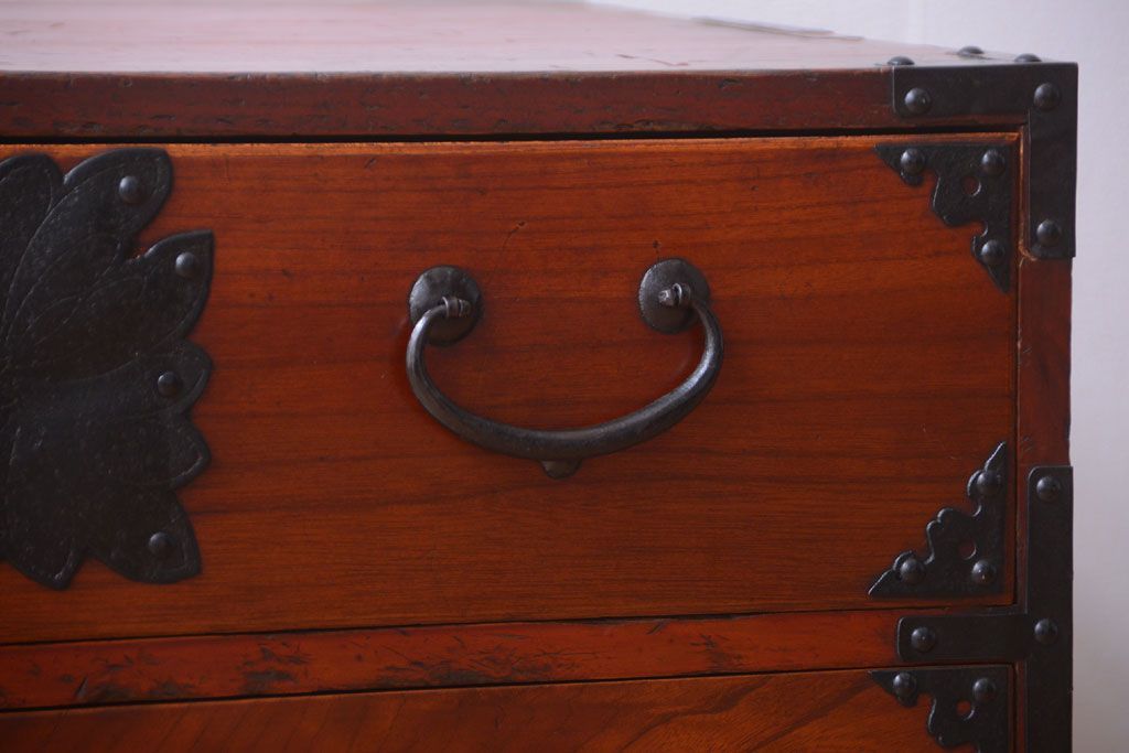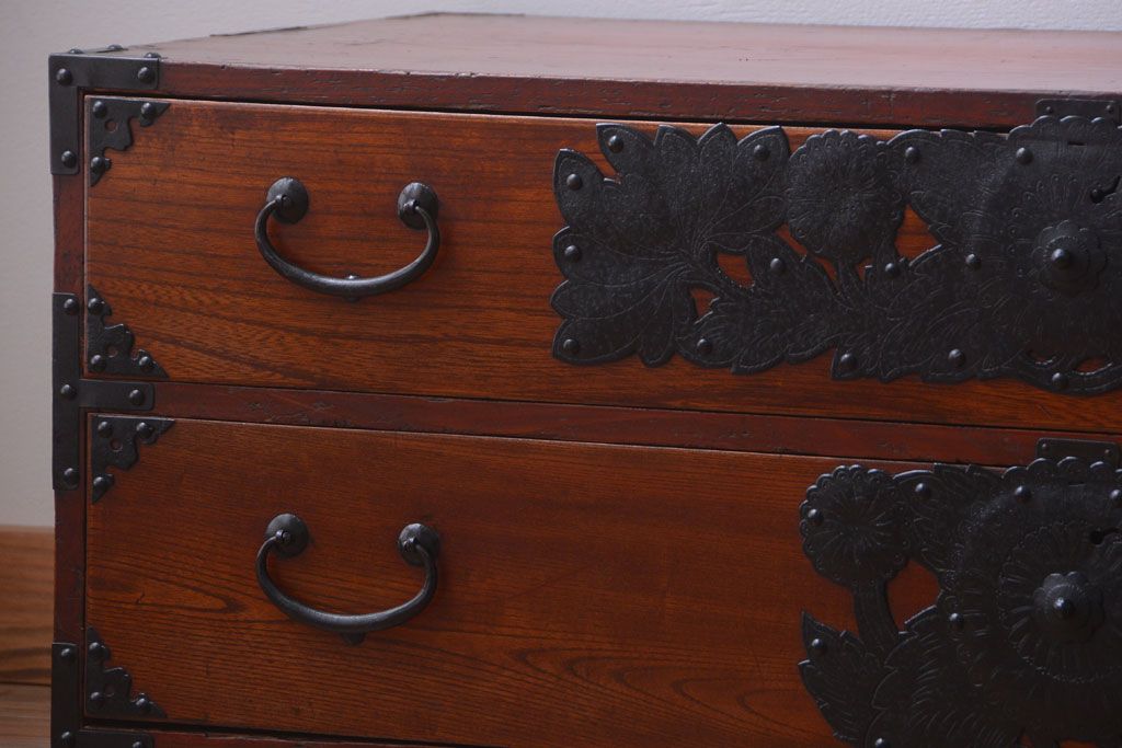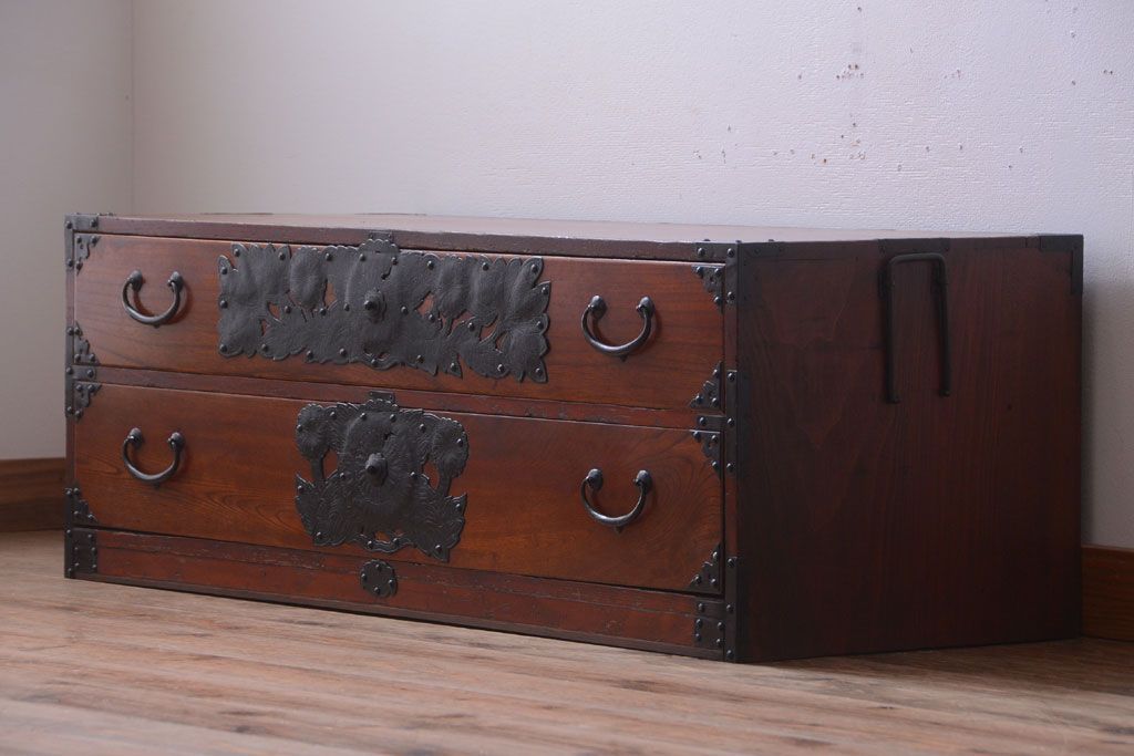 和箪笥> 衣装箪笥 > アンティーク家具 古民具・骨董 大きな金具の時代箪笥ローボード(ローチェスト)