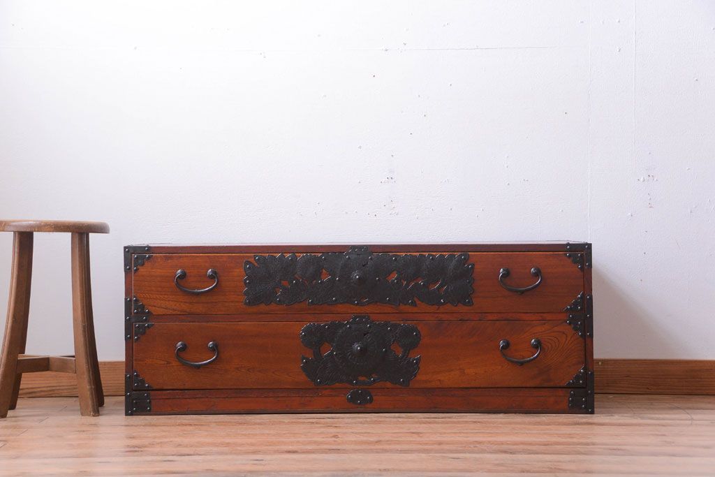 和箪笥 > アンティーク家具 古民具・骨董 大きな金具の時代箪笥ローボード(ローチェスト)