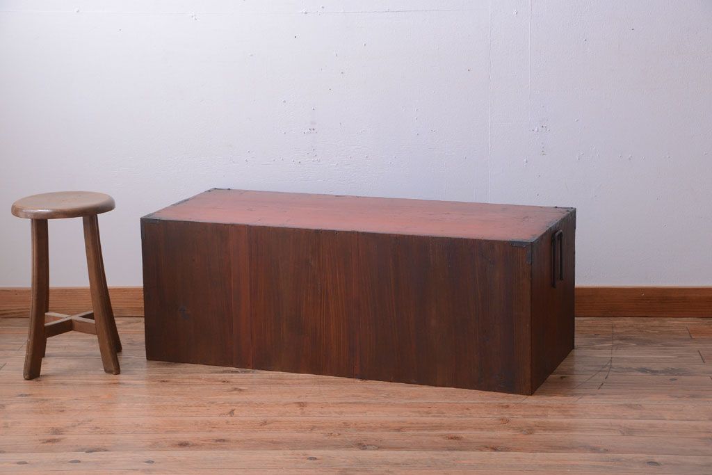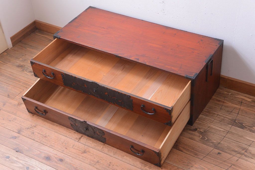アンティーク家具 古民具・骨董 大きな金具の時代箪笥ローボード(ローチェスト)