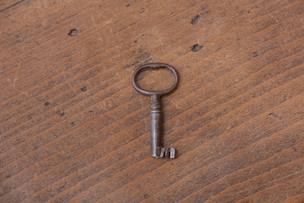 鍵は付属します。画像にありますように、袋に入れお付けします。スムーズに動くように調整していますが、あくまでも古いものや中古品ですので、長期の使用保証は出来かねます。ご購入後不具合が発生した場合は、当店でサポートさせていただきますので、お気軽にご相談くださいませ。