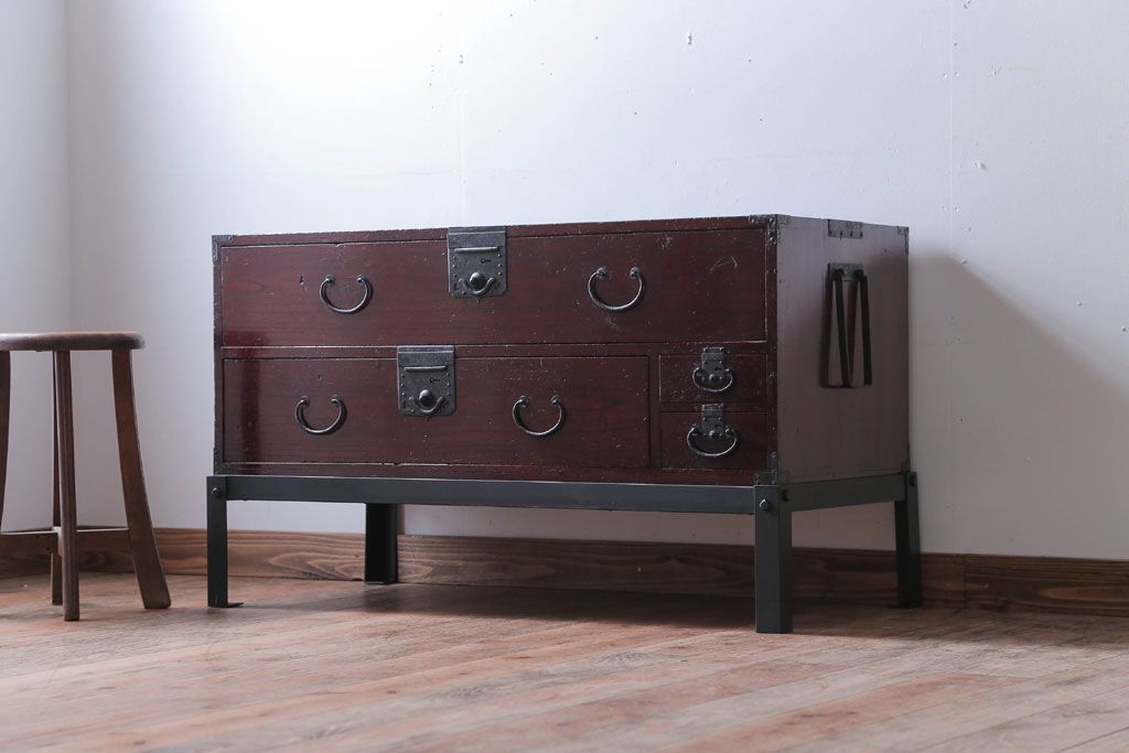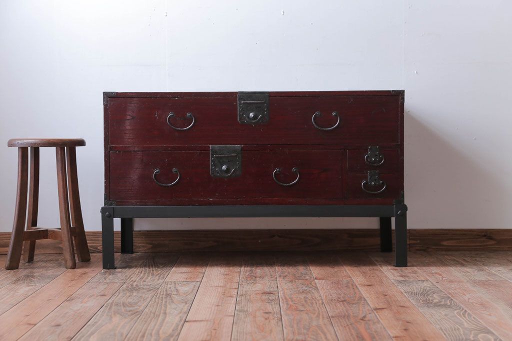 アンティーク家具 古民具・骨董 江戸〜明治期 かくし付き!鉄脚時代箪笥ローボード
