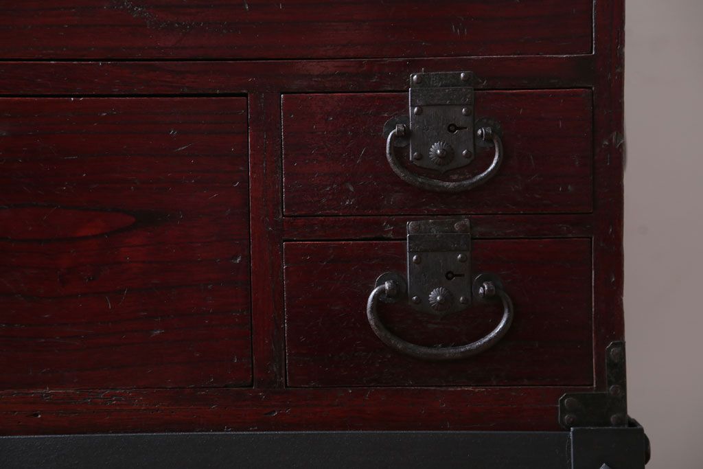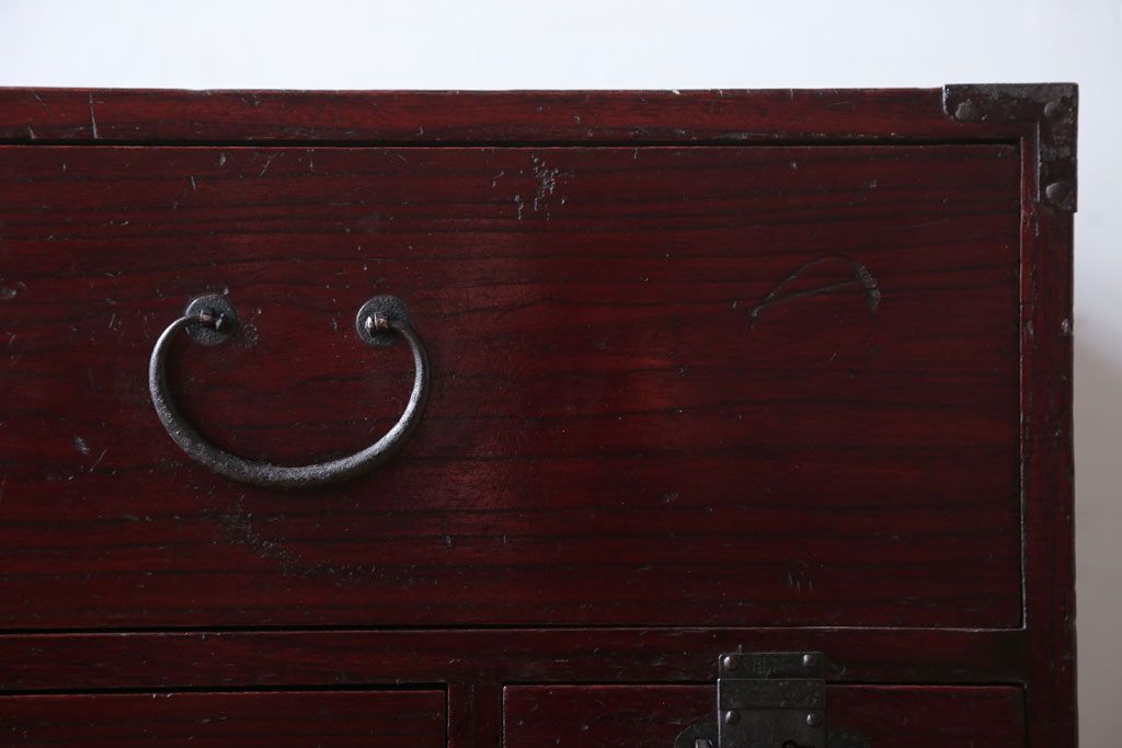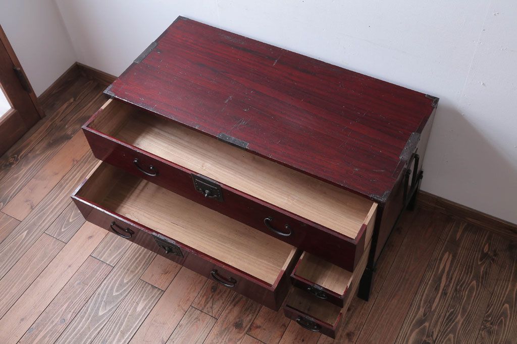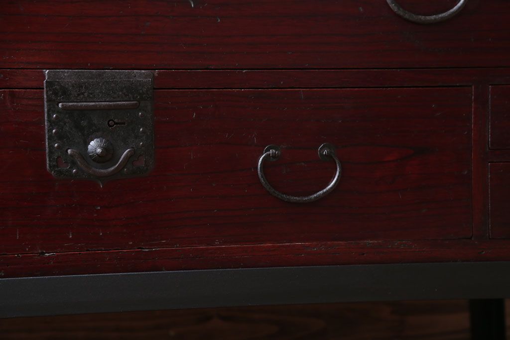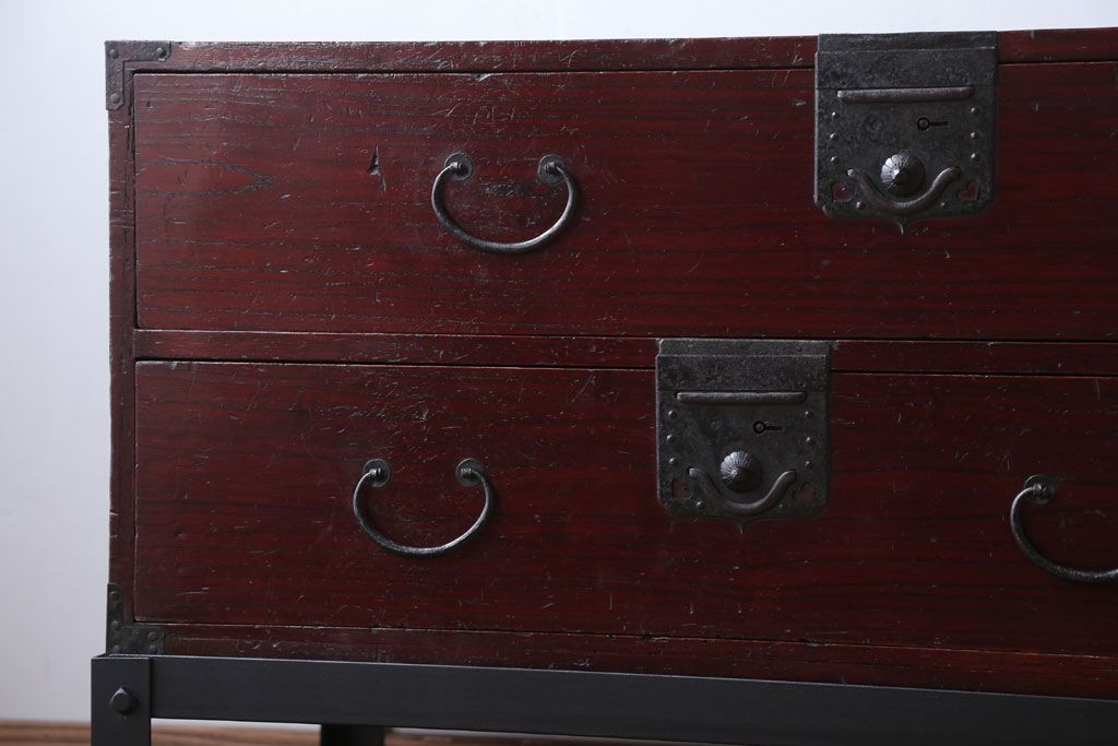和箪笥> 衣装箪笥 > アンティーク家具 古民具・骨董 江戸〜明治期 かくし付き!鉄脚時代箪笥ローボード