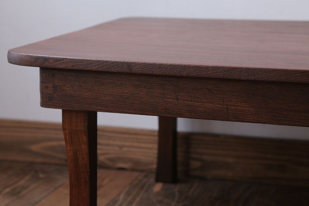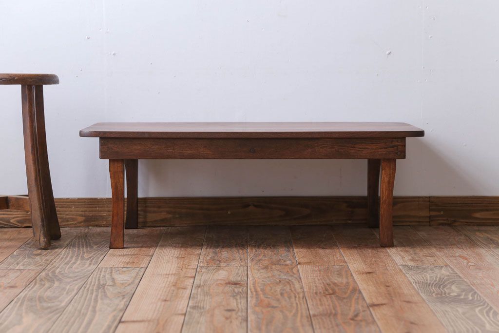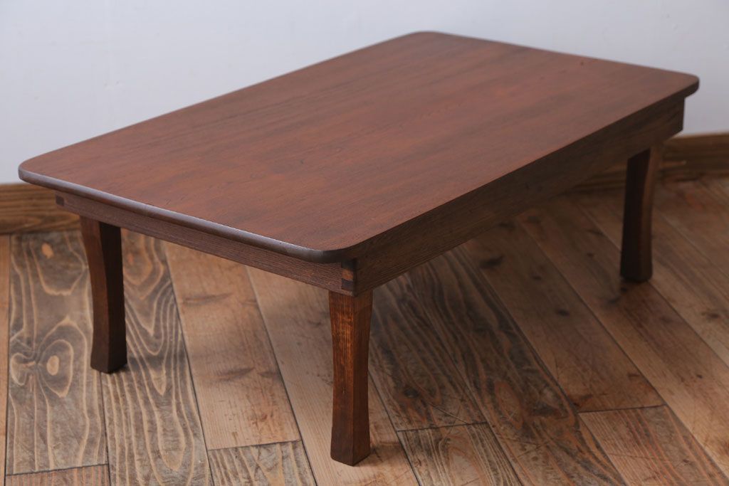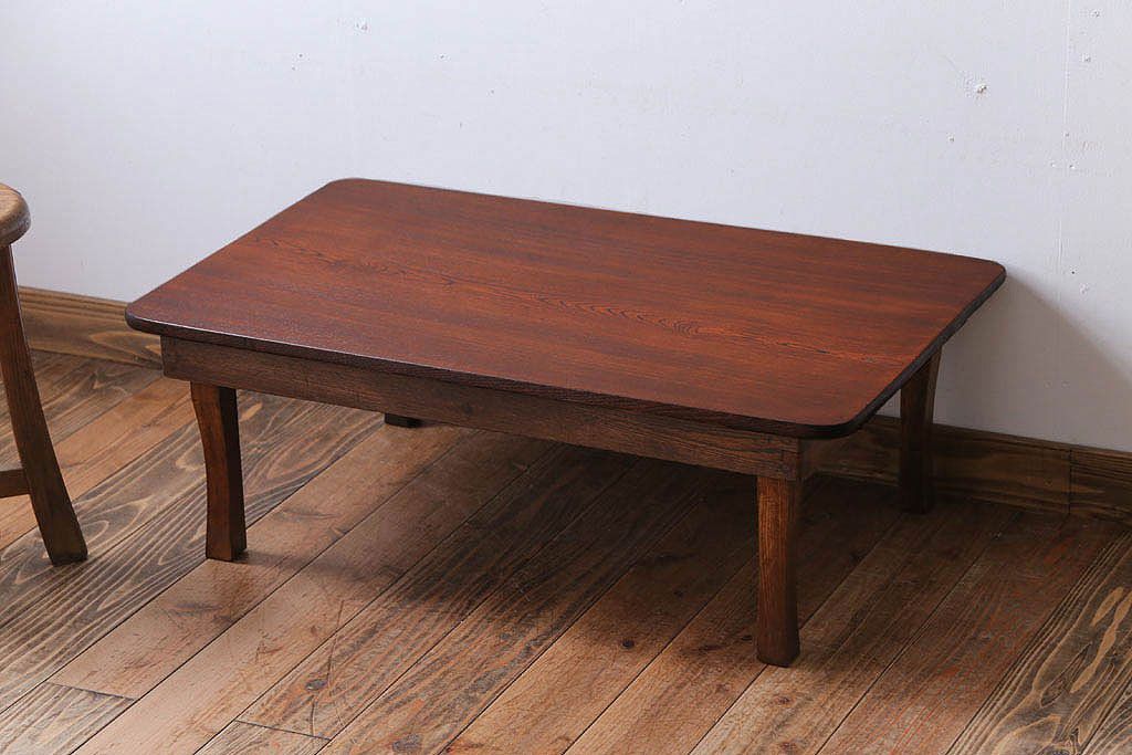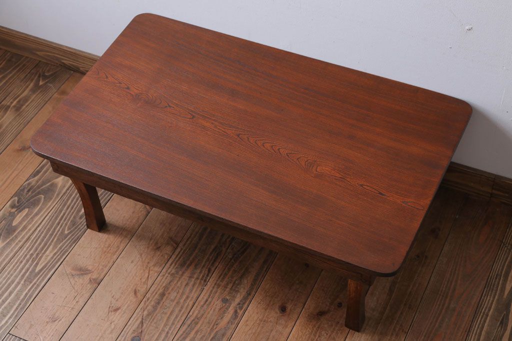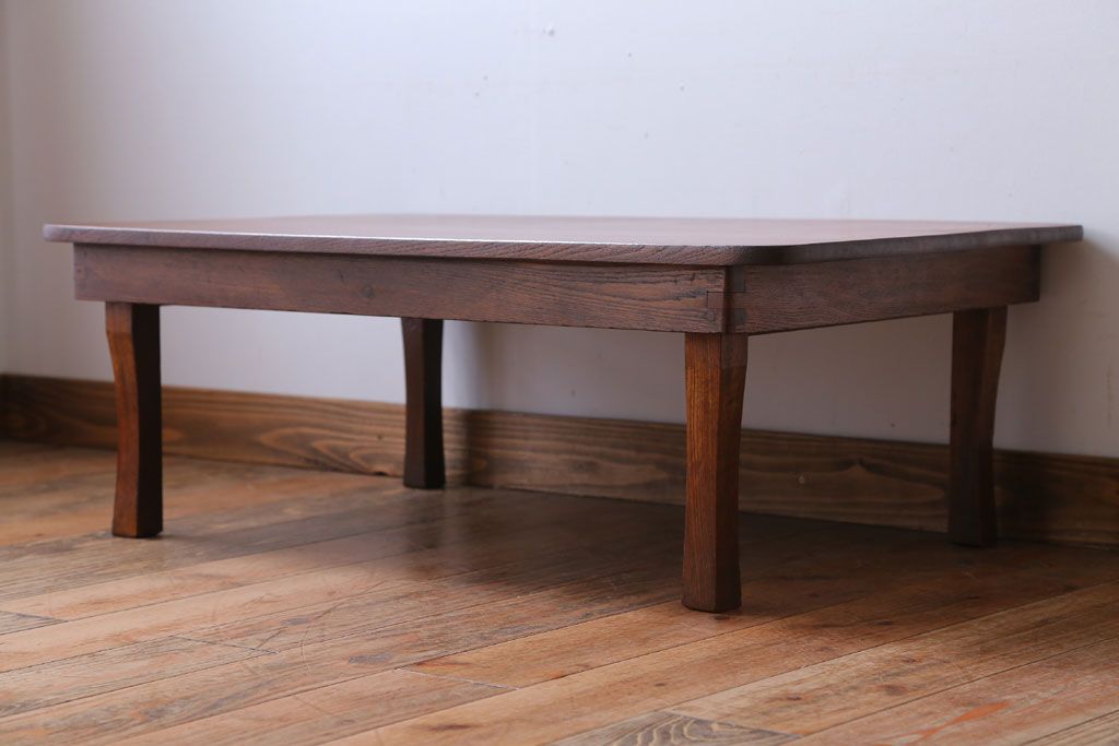 レトロ家具 アンティーク 天板栓材一枚板!レトロな角ちゃぶ台