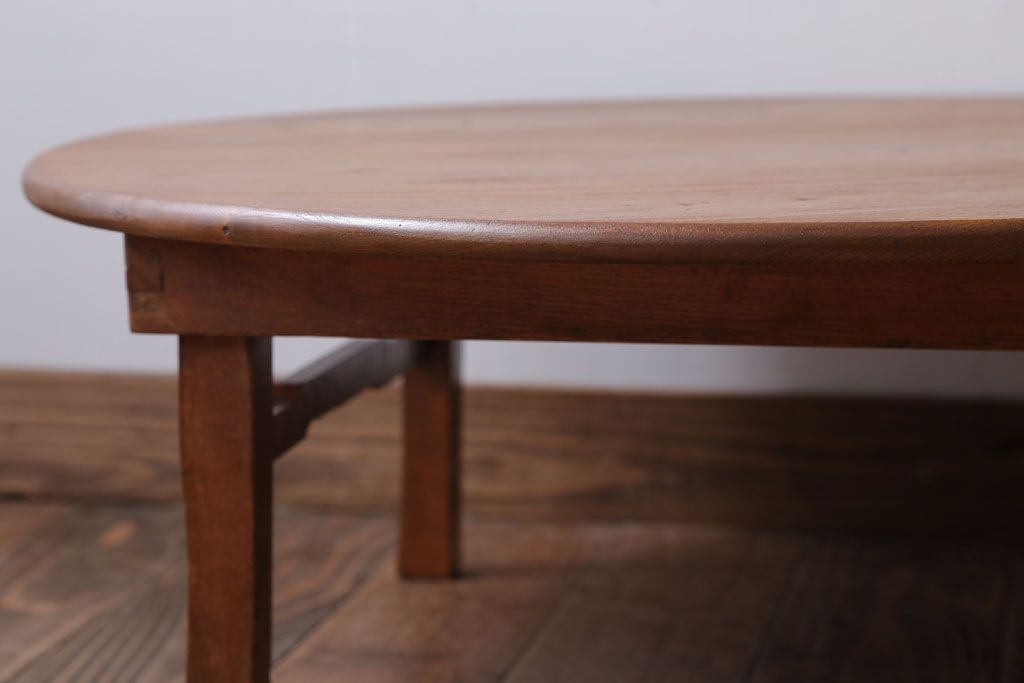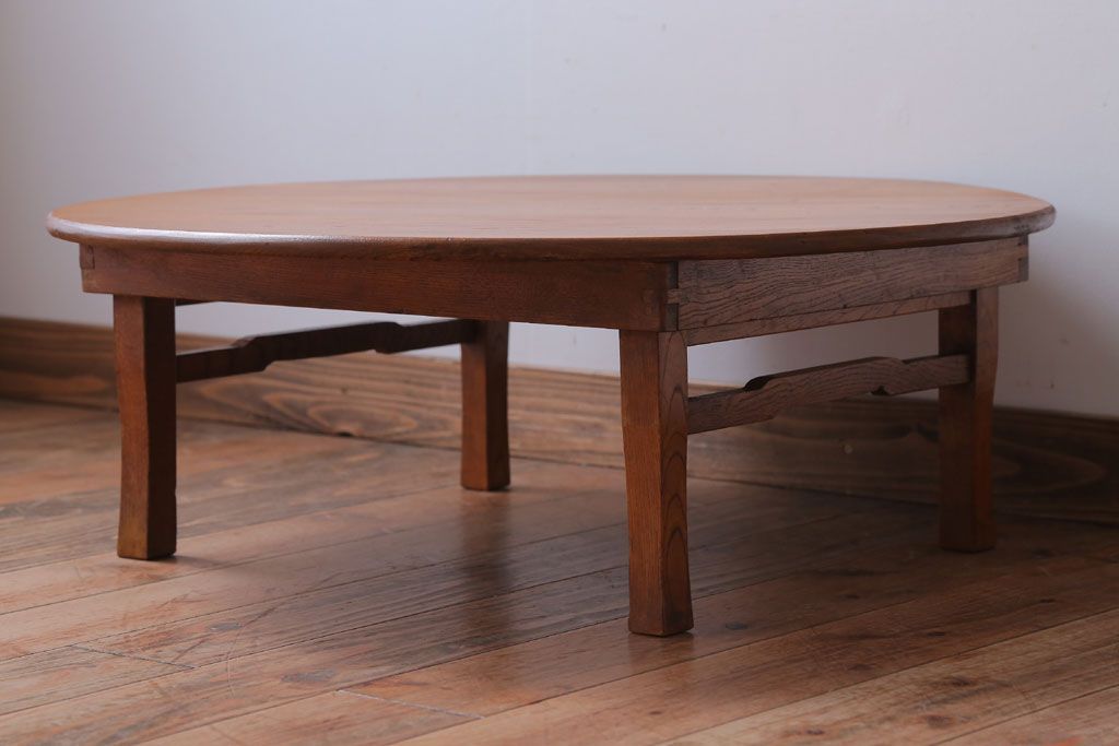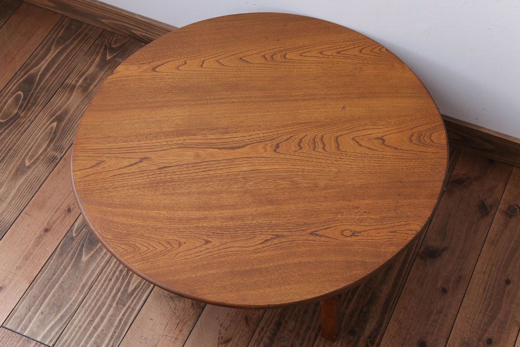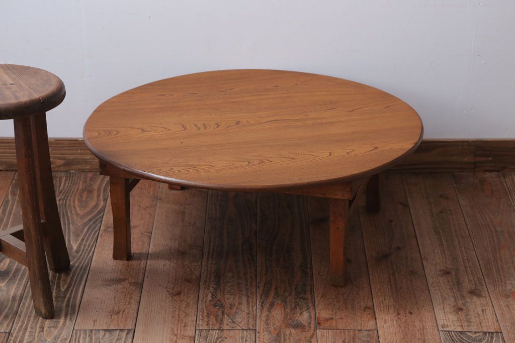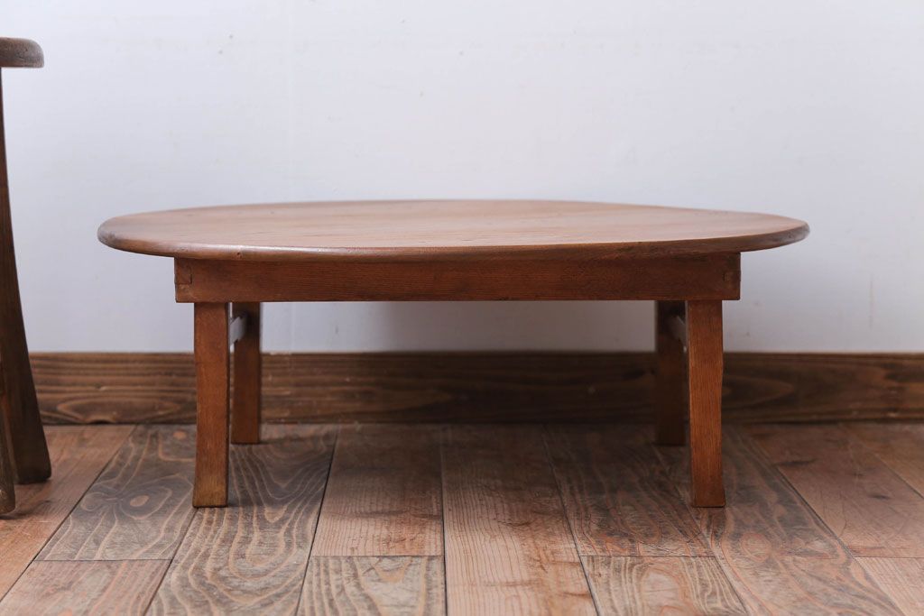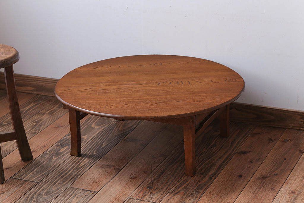 レトロ家具 アンティーク 古い木のレトロな丸ちゃぶ台(1)