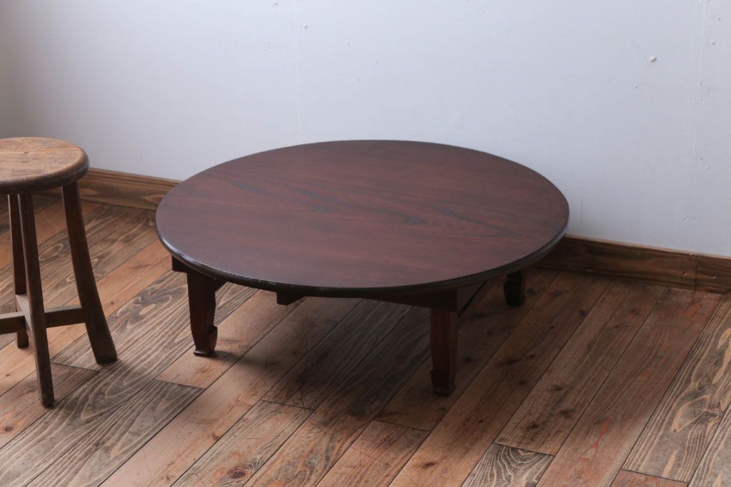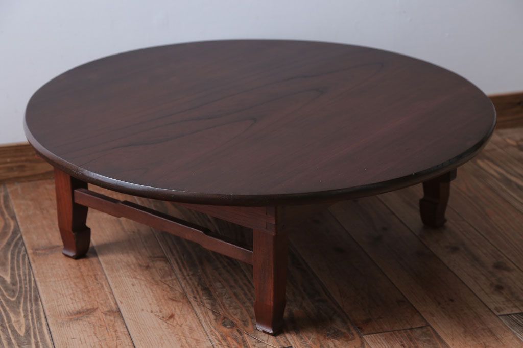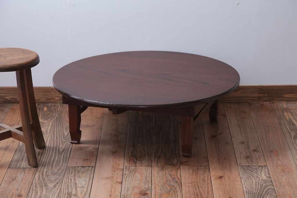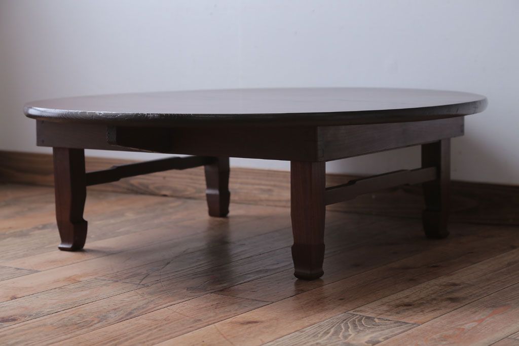 アンティーク家具 古民具・骨董 高級品!天板一枚板の総欅材製アンティーク丸ちゃぶ台
