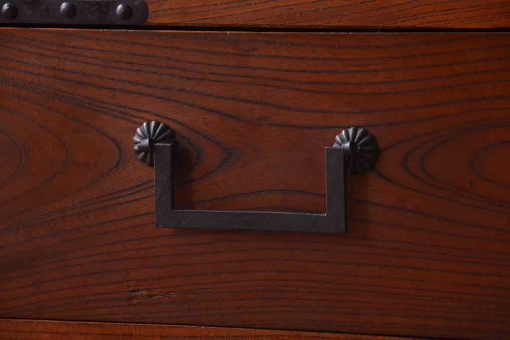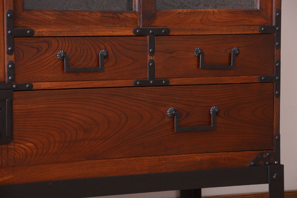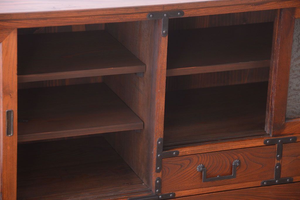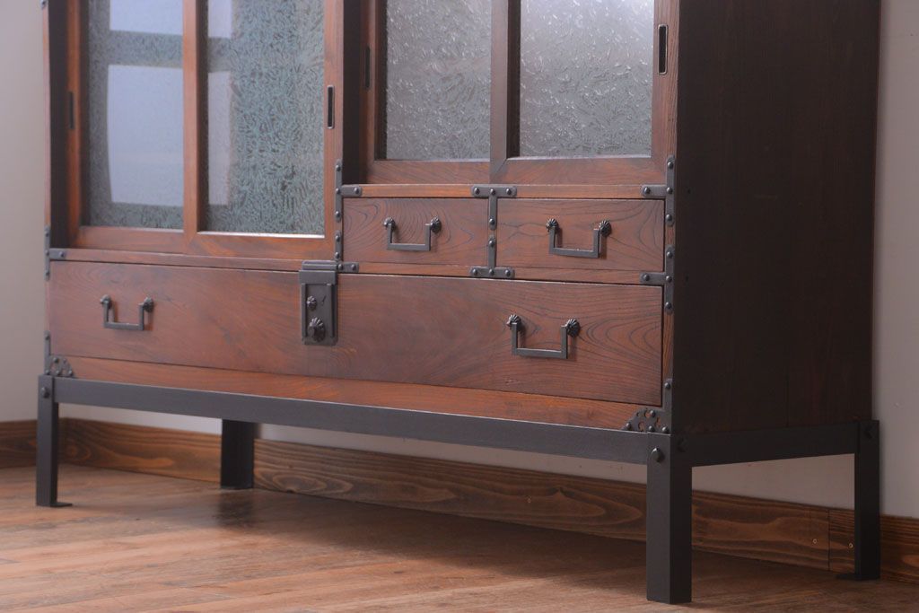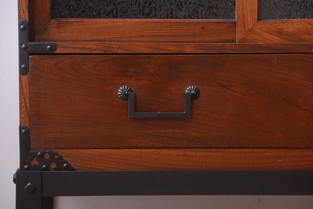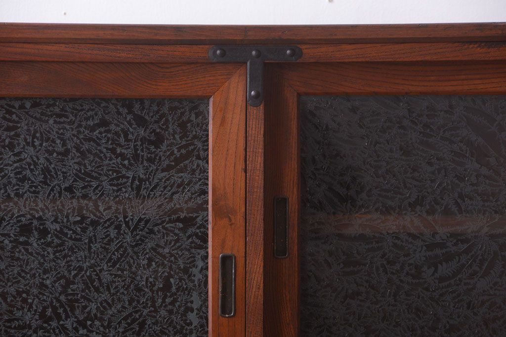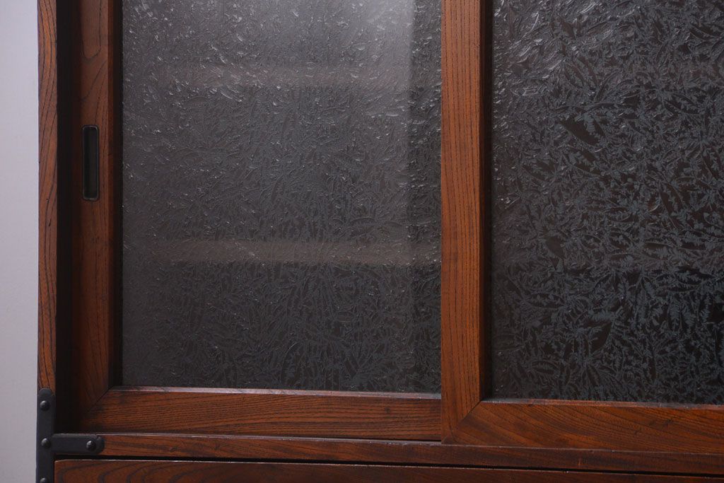 アンティーク家具 古民具・骨董 結霜ガラス入り!前面欅材の時代箪笥ローボード