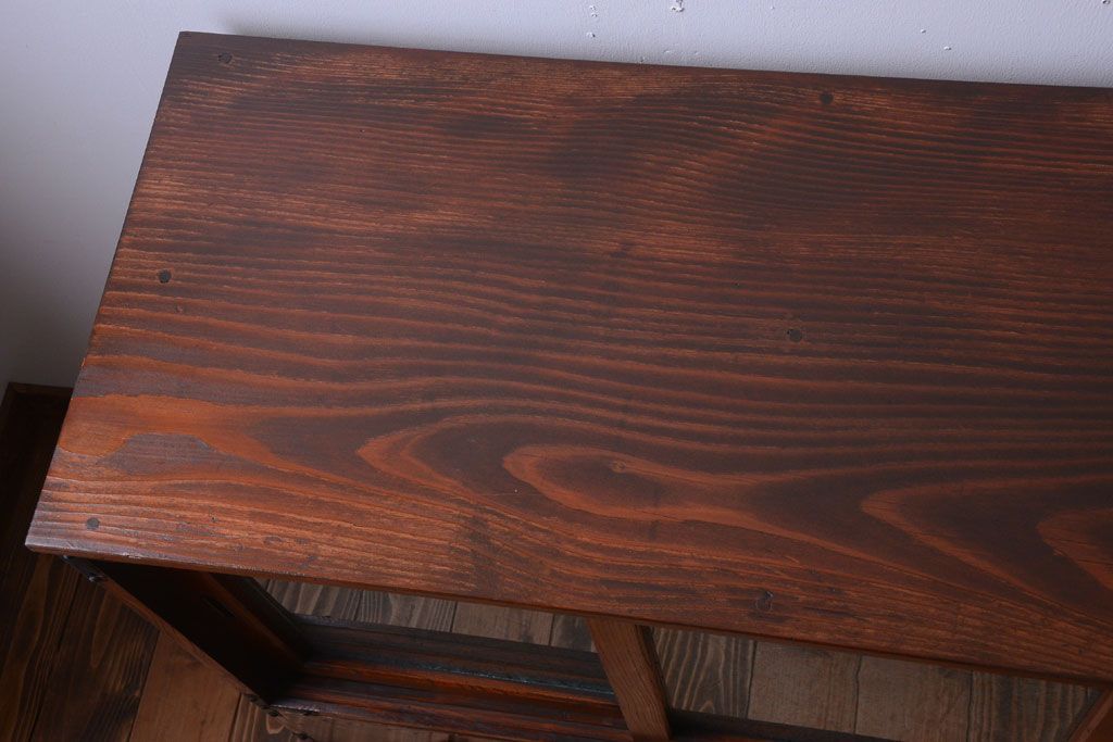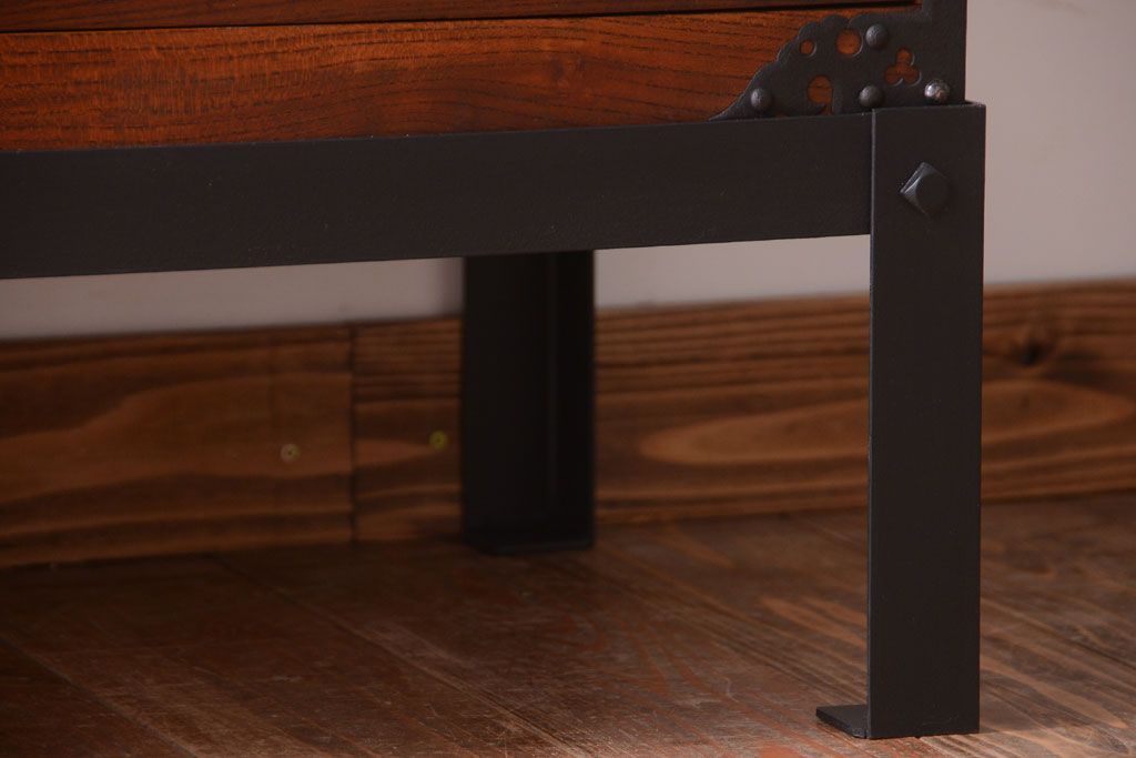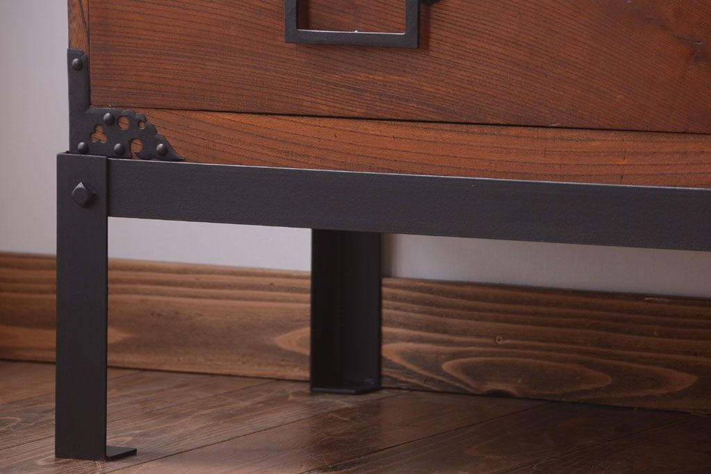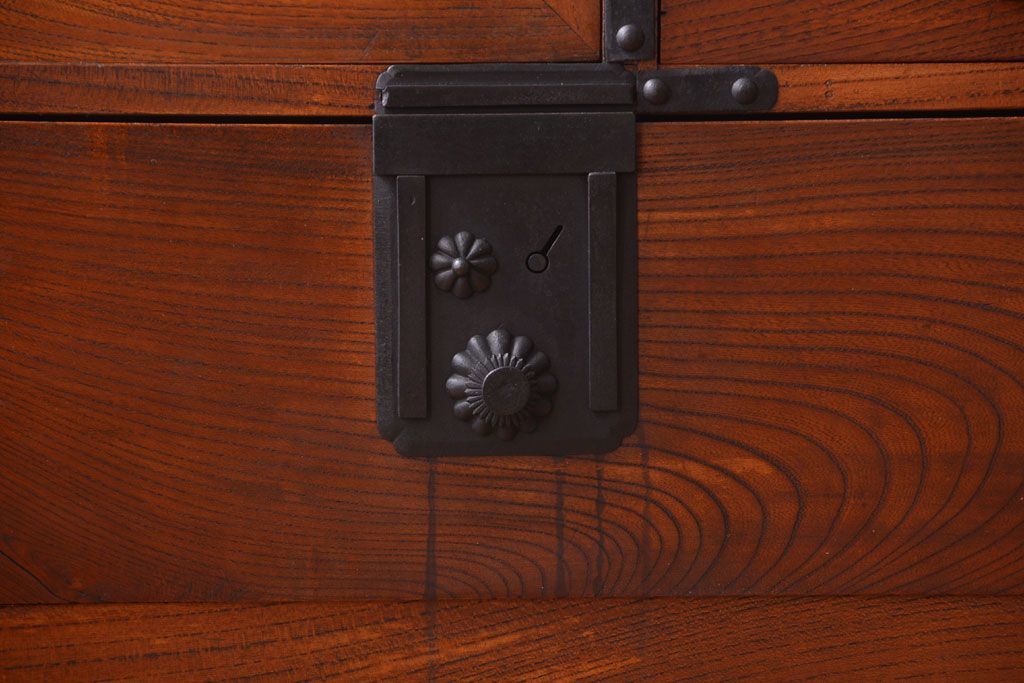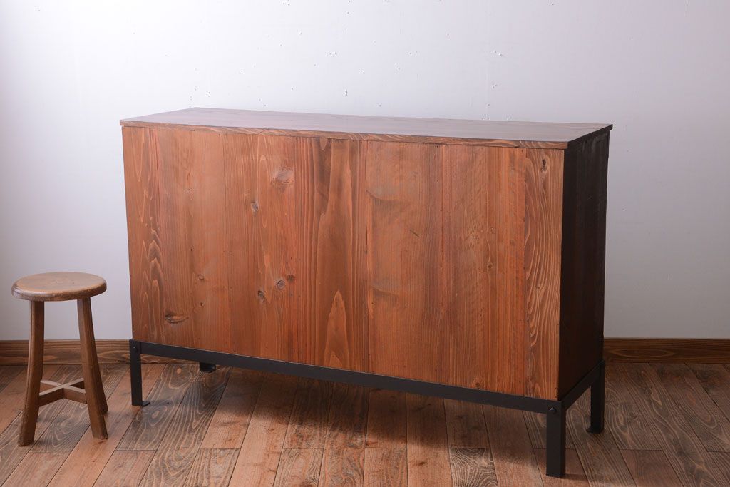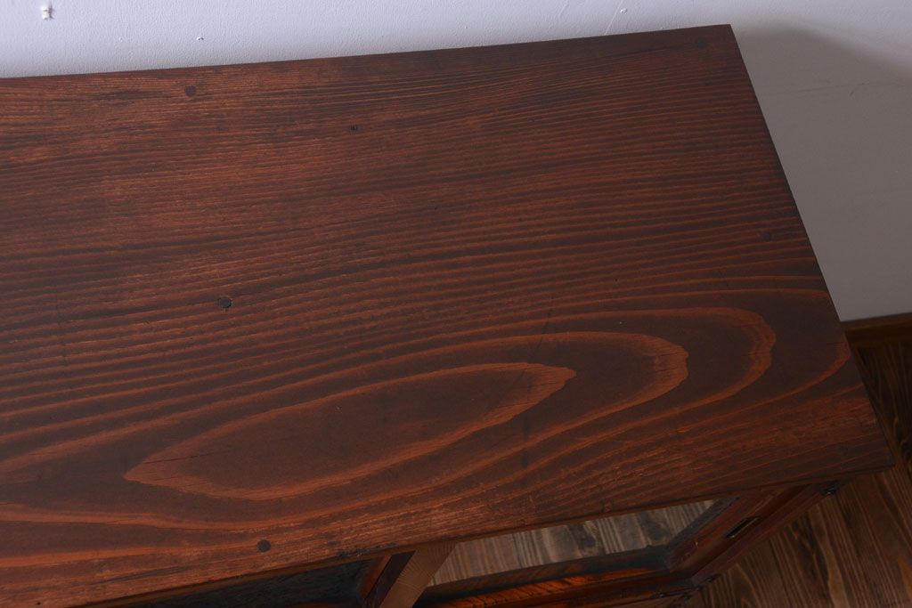 アンティーク家具 古民具・骨董 結霜ガラス入り!前面欅材の時代箪笥ローボード