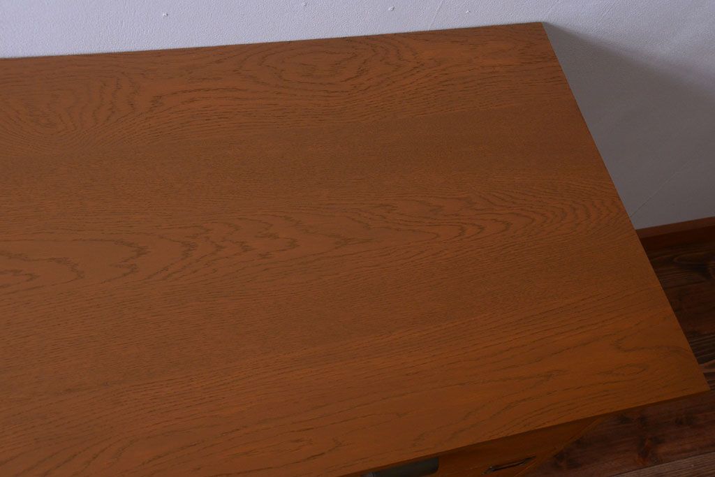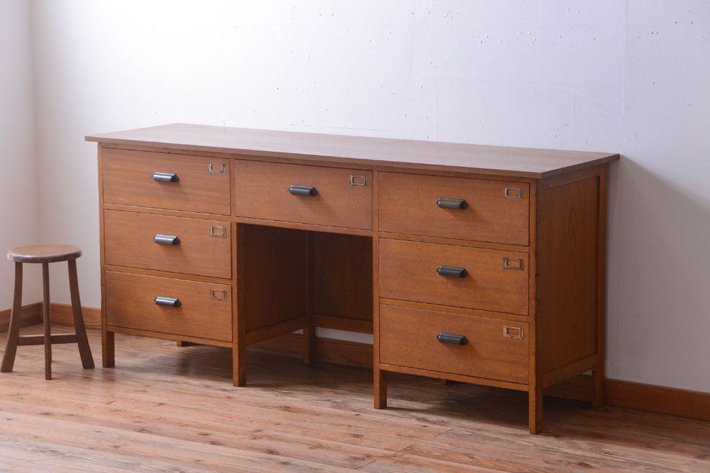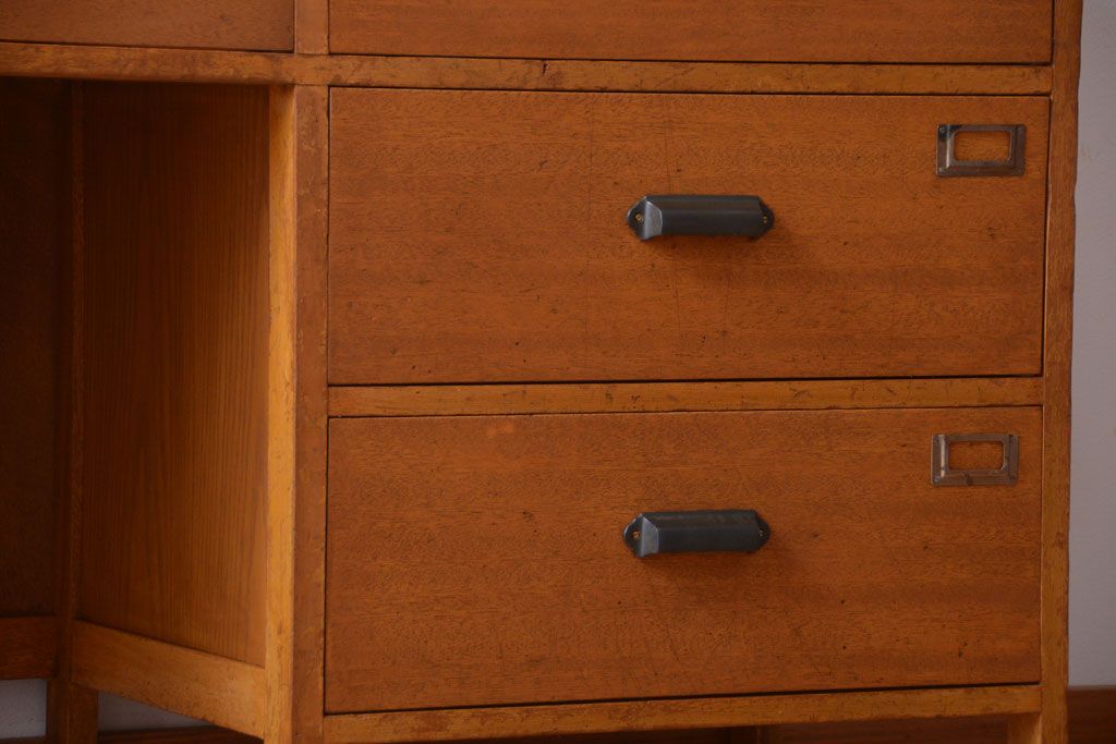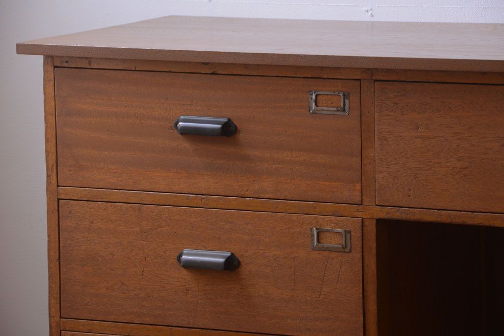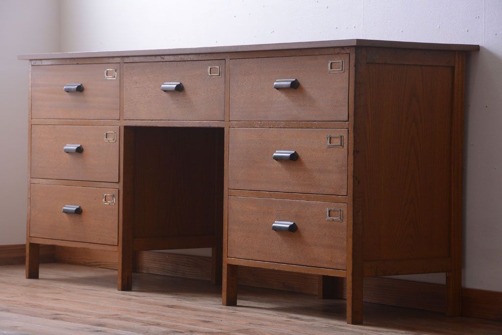 ラフジュ工房> 店舗什器 > アンティーク家具 アンティーク ネームプレート付き!天板ナラ材の両袖机(間仕切り・カウンターテーブル)
