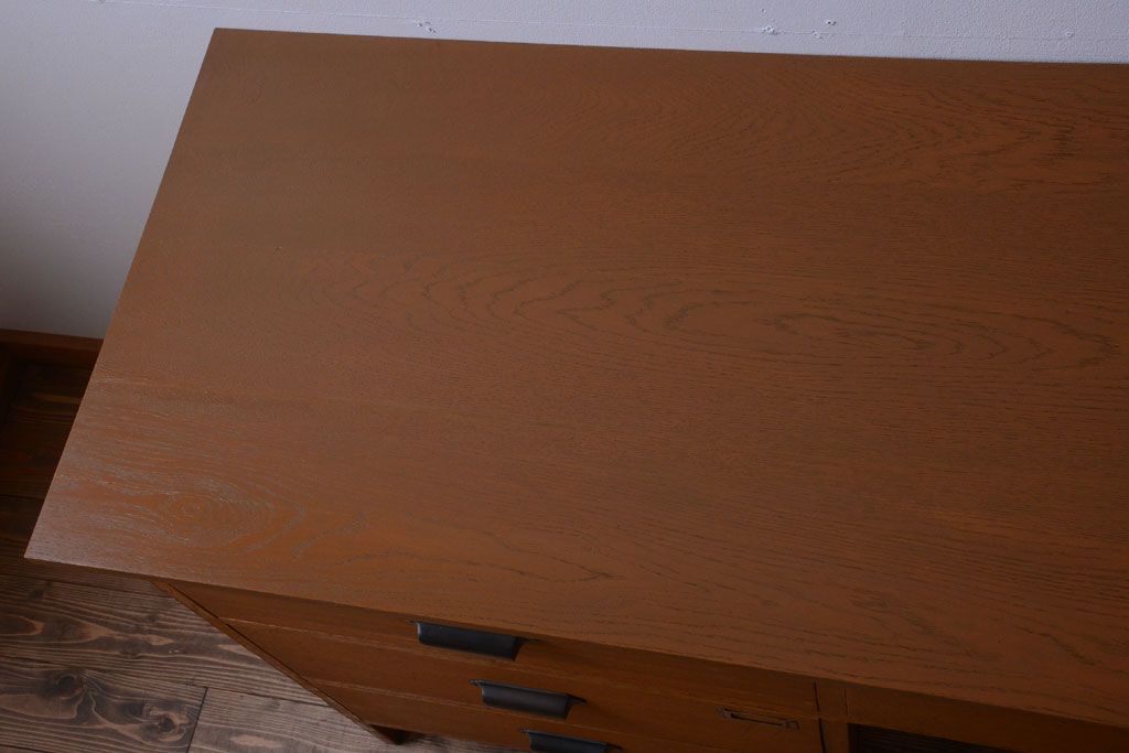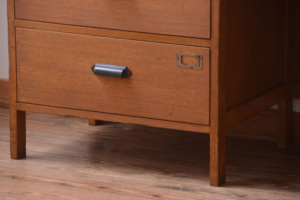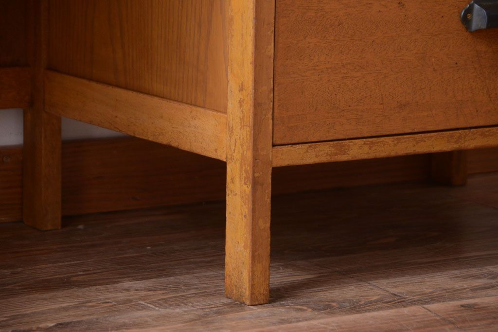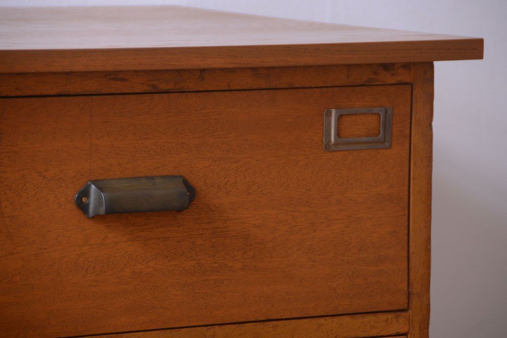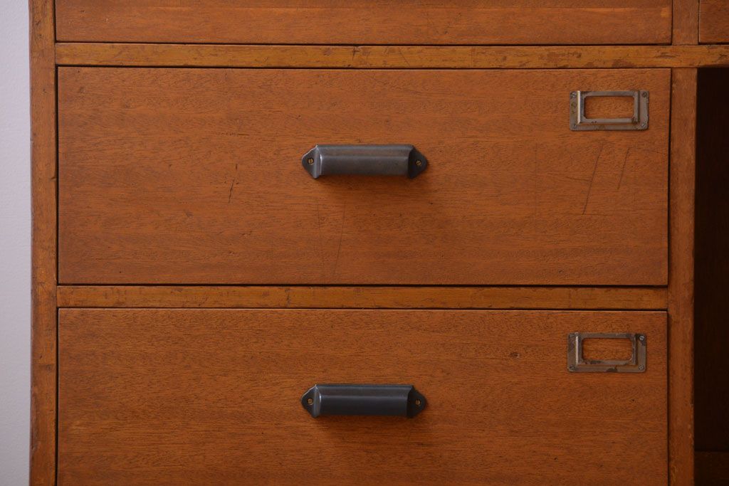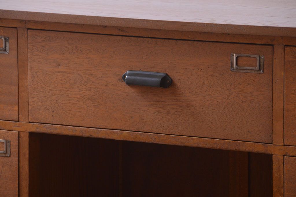 ラフジュ工房> 店舗什器 > アンティーク家具 アンティーク ネームプレート付き!天板ナラ材の両袖机(間仕切り・カウンターテーブル)