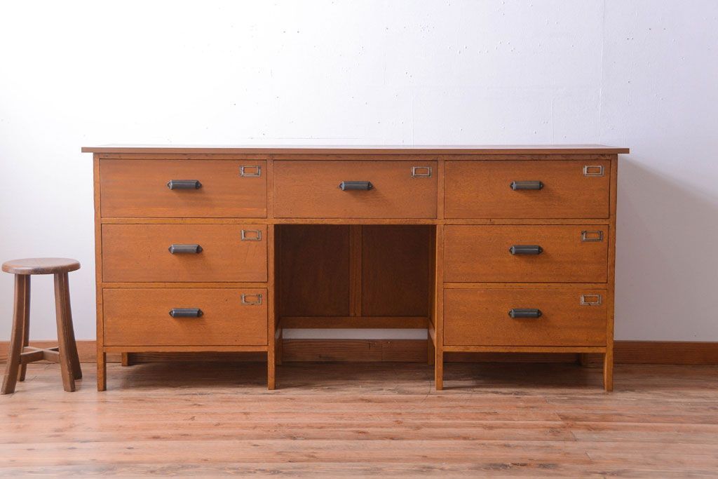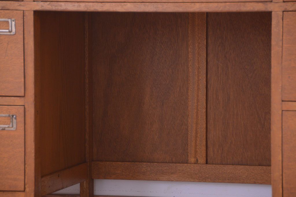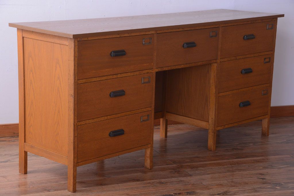 ラフジュ工房> デスク> 片袖机・両袖机 > アンティーク家具 アンティーク ネームプレート付き!天板ナラ材の両袖机(間仕切り・カウンターテーブル)