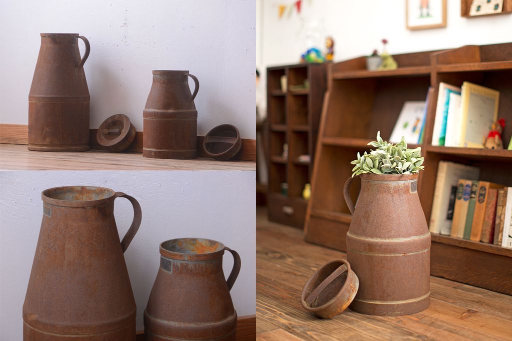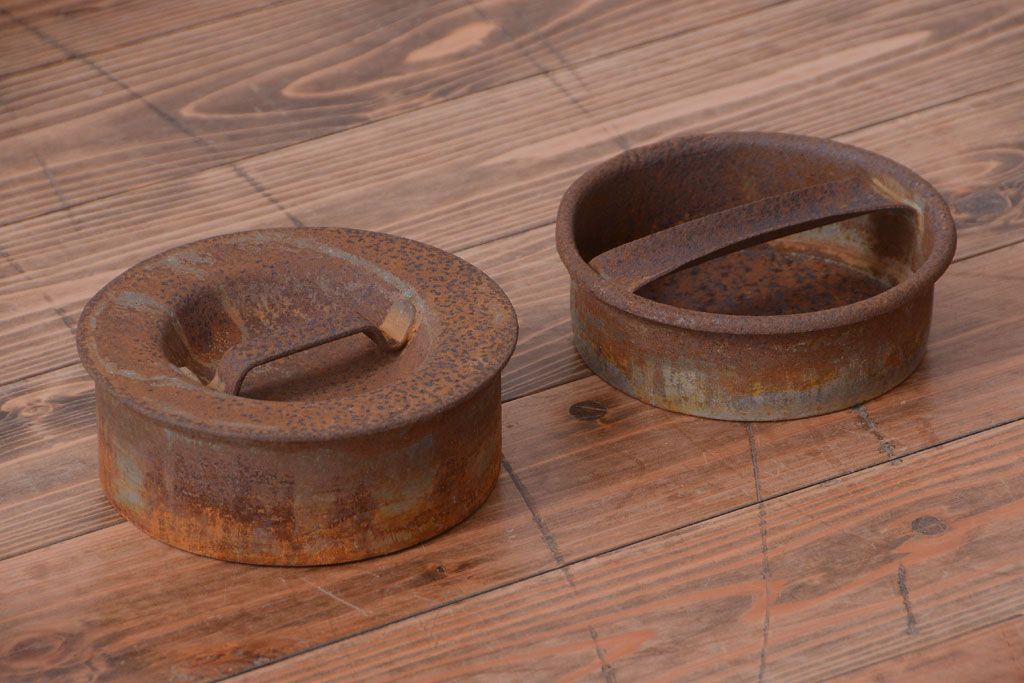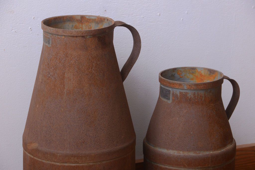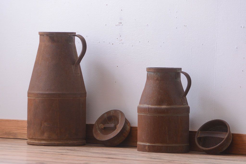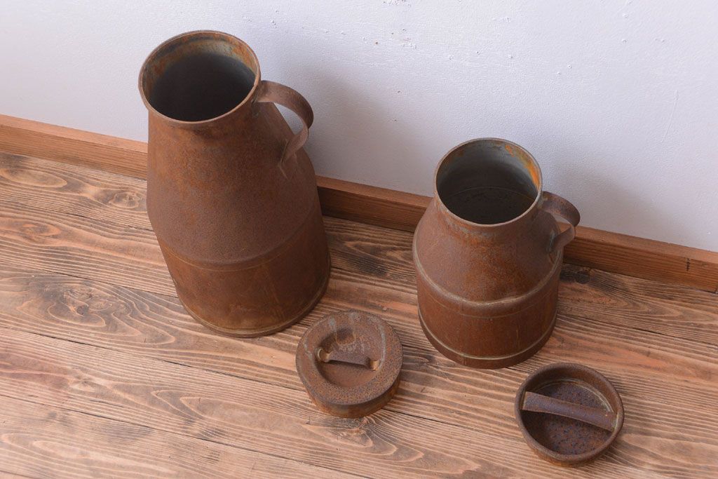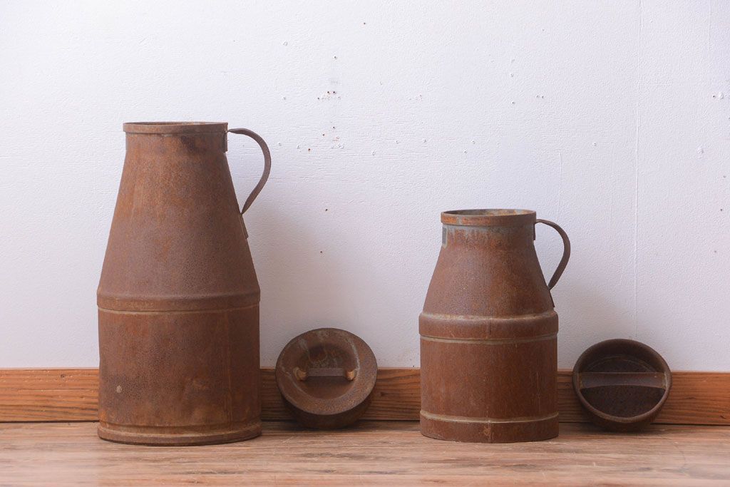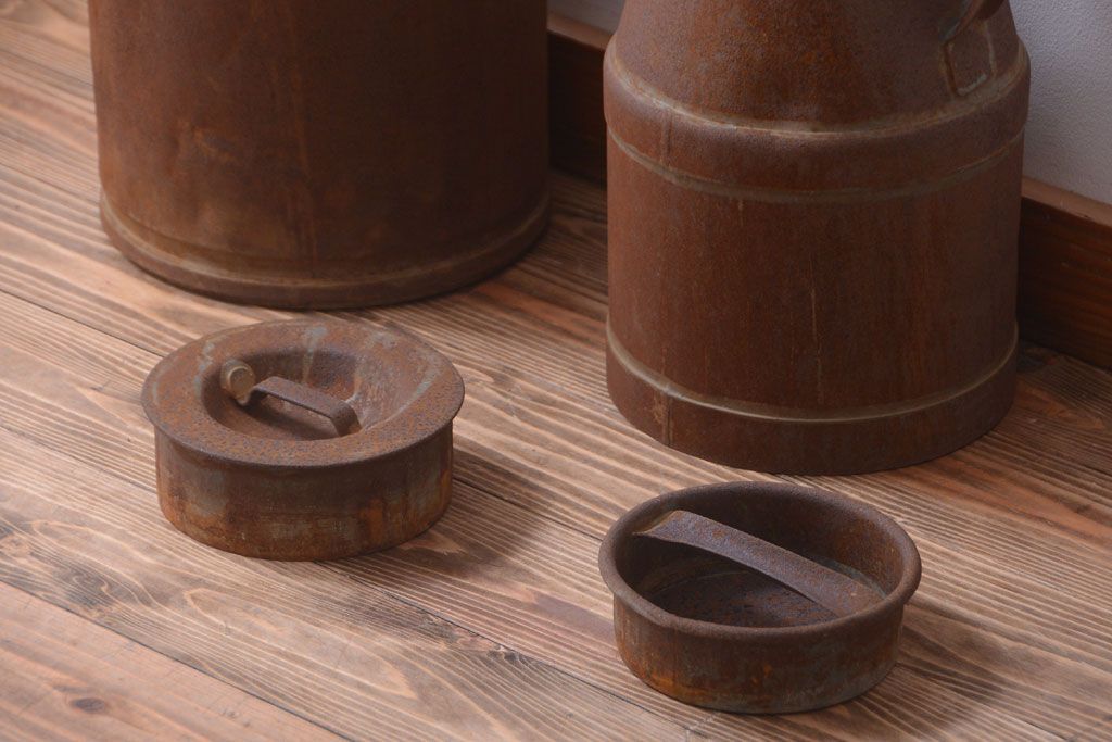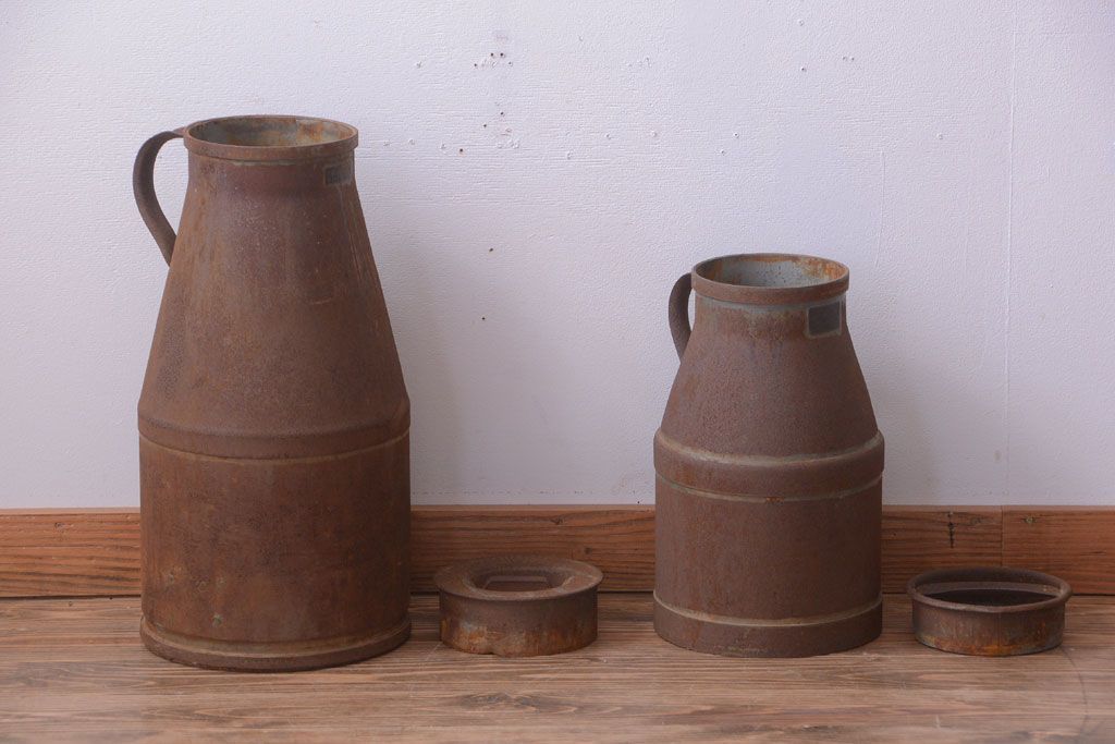 アンティーク雑貨 昭和レトロ 古いアイアンのミルク缶2個セット(牛乳缶)