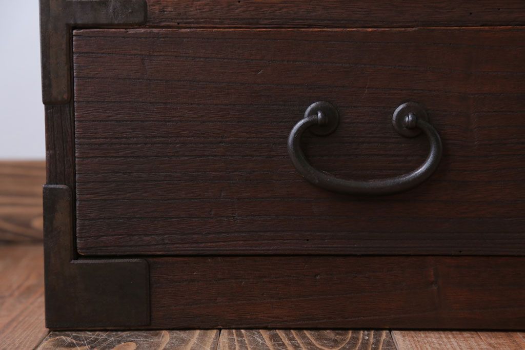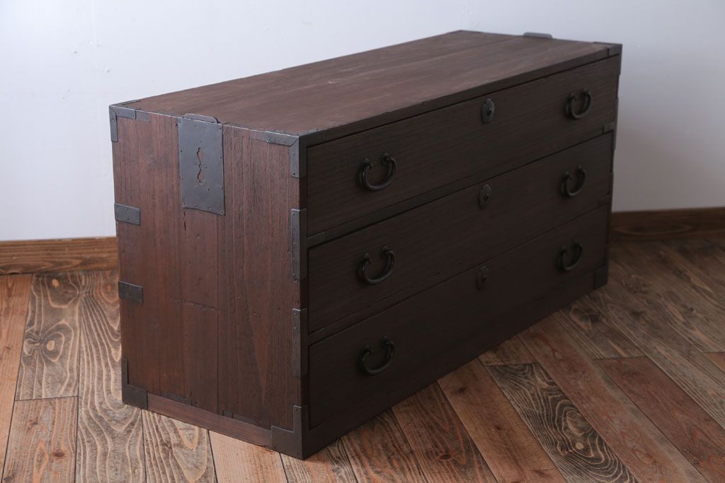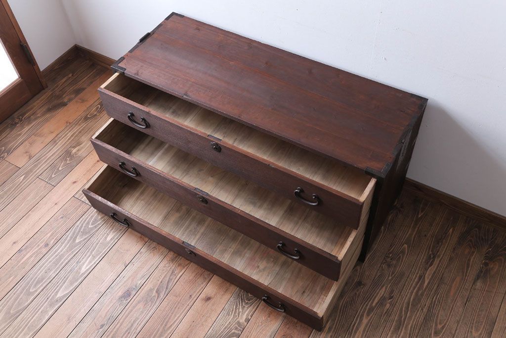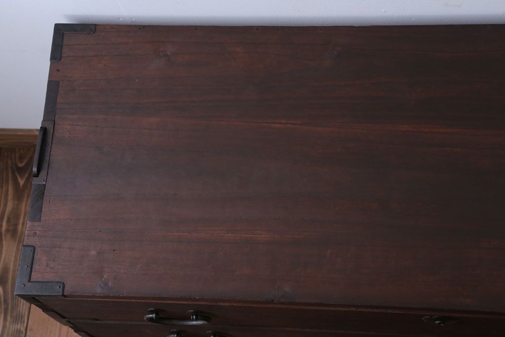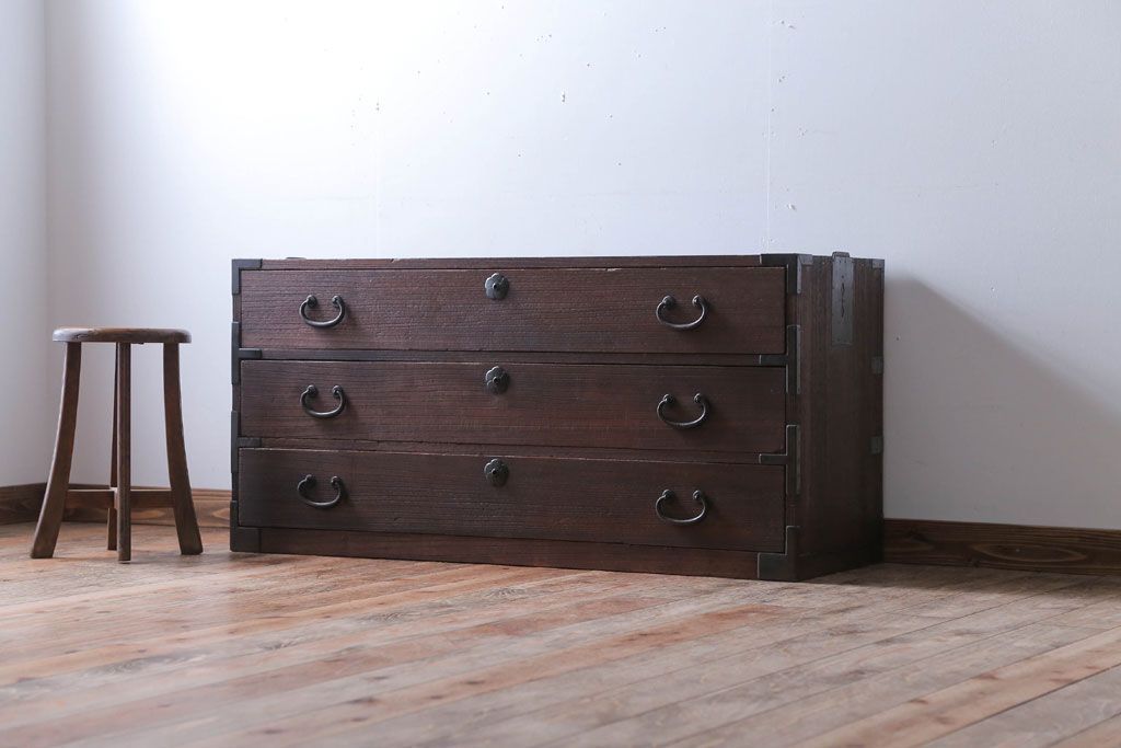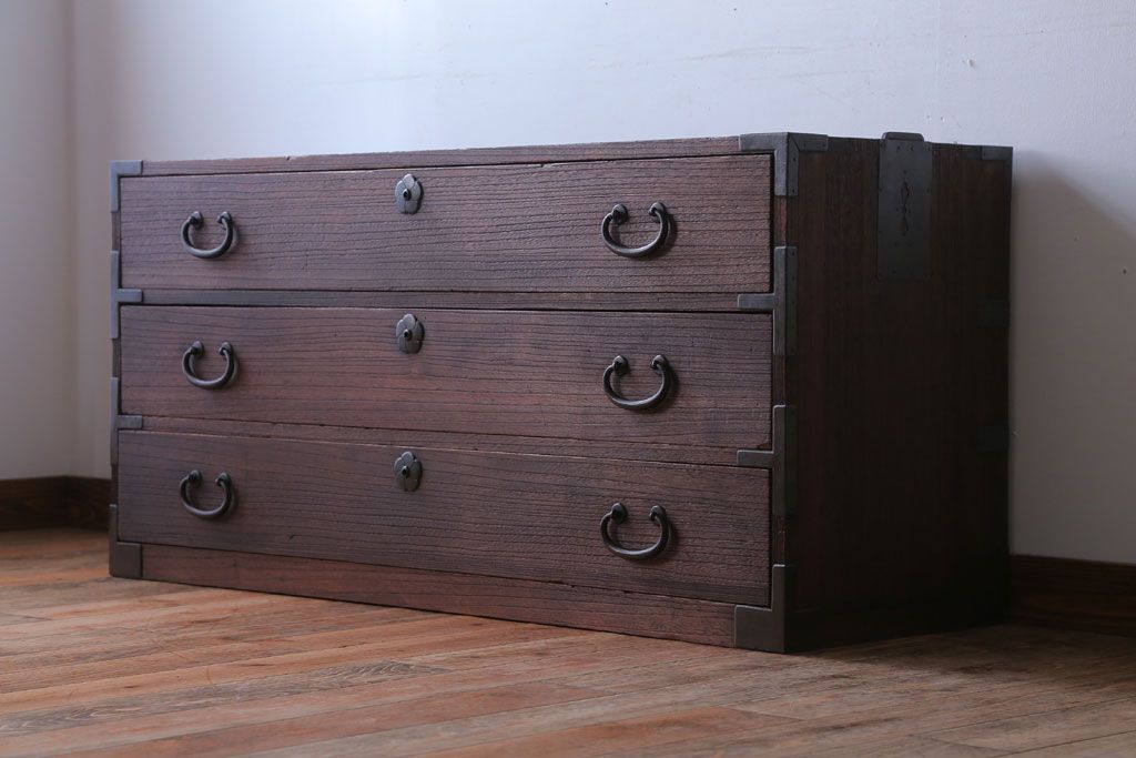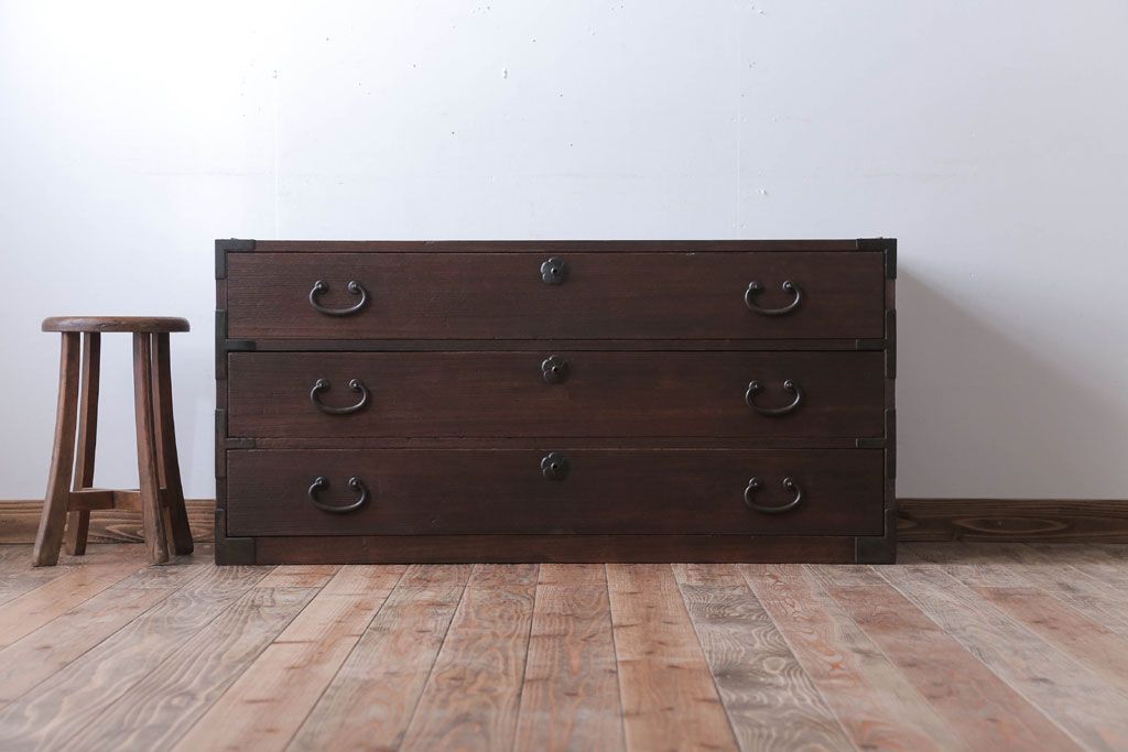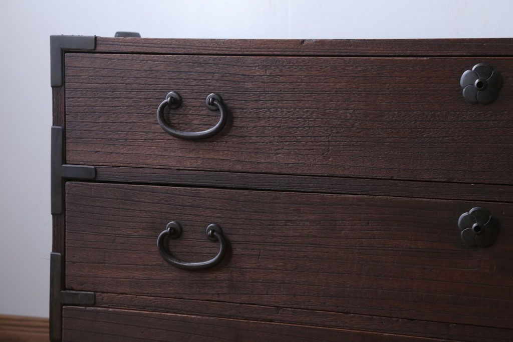 和箪笥> 衣装箪笥 > アンティーク家具 和製アンティーク 上品な金具の四尺桐箪笥ローボード(桐たんす)