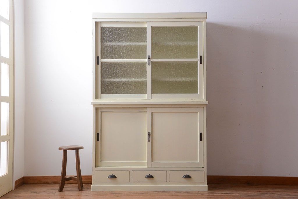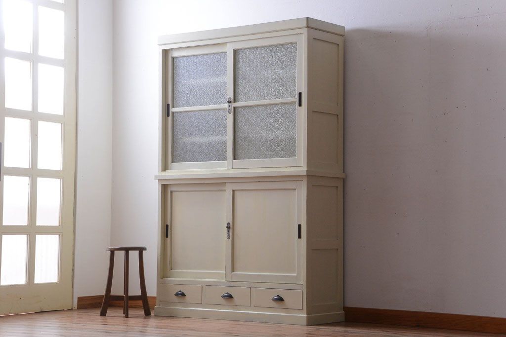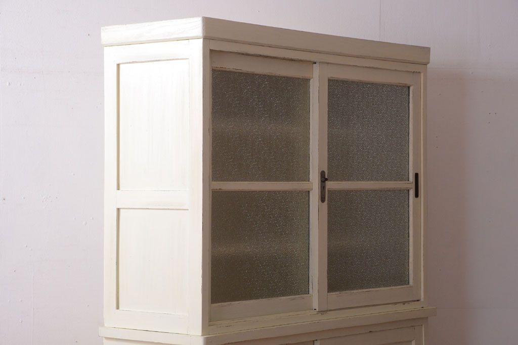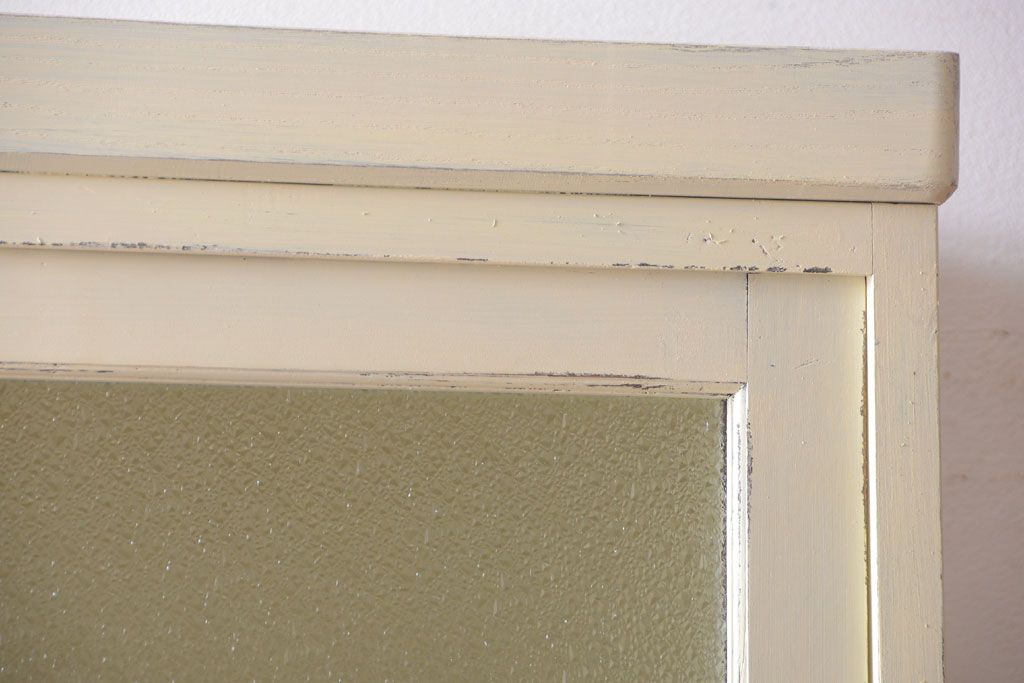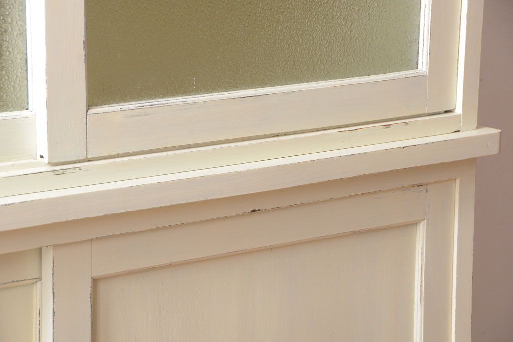アンティークペイント クリームカラーが上品なダイヤガラス戸棚です。