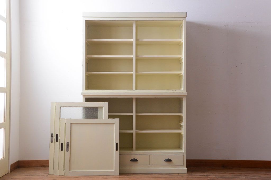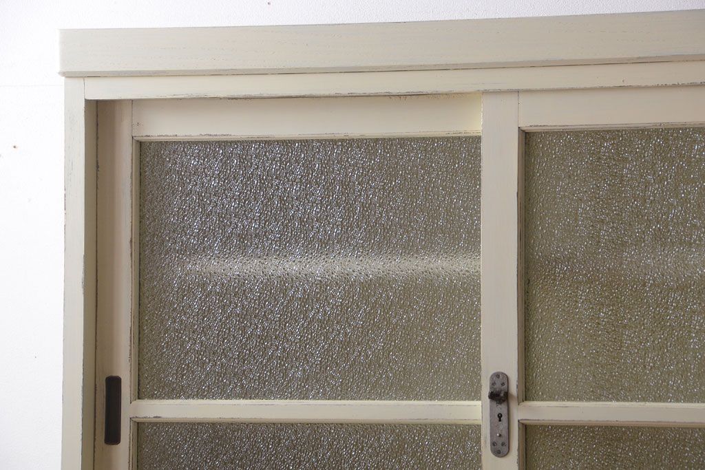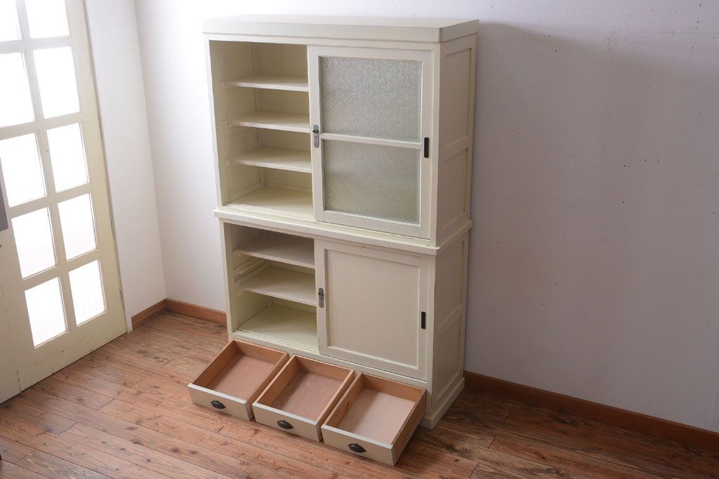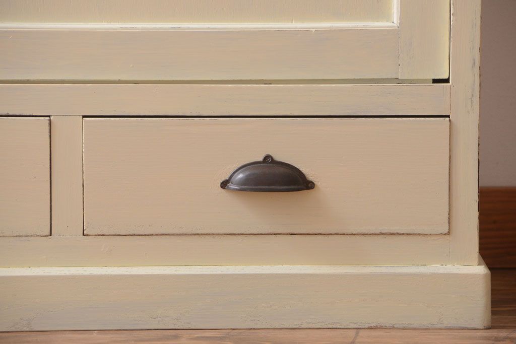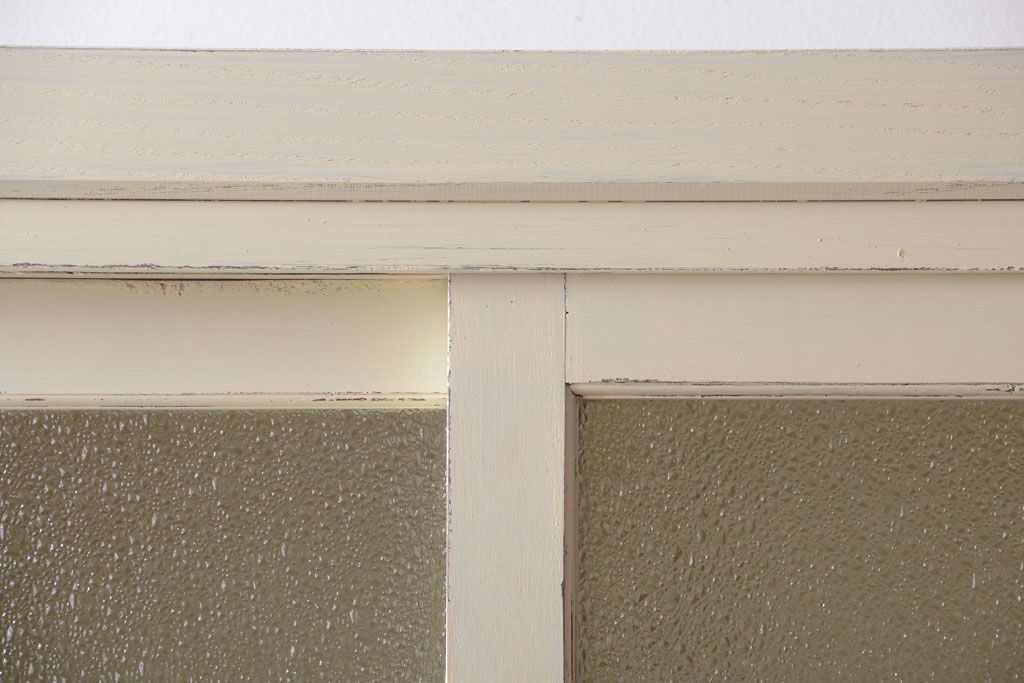 アンティークペイント クリームカラーが上品なダイヤガラス戸棚です。