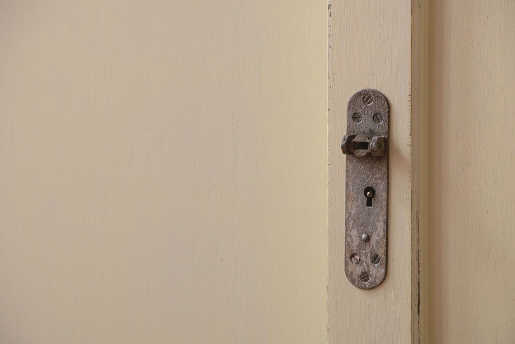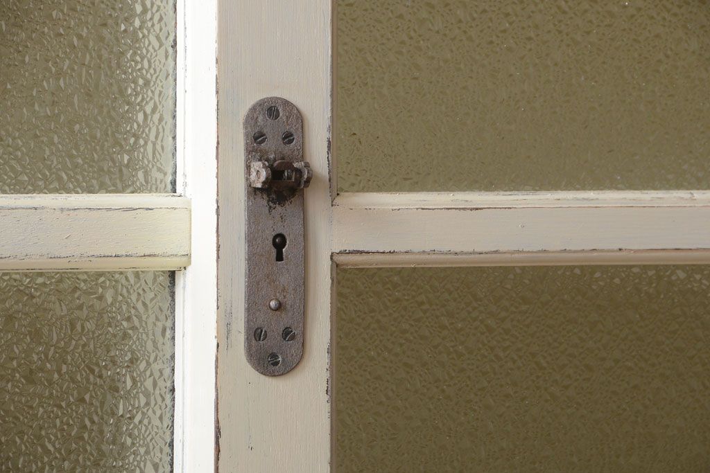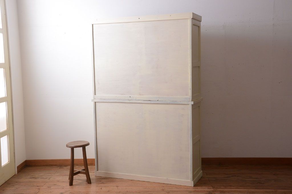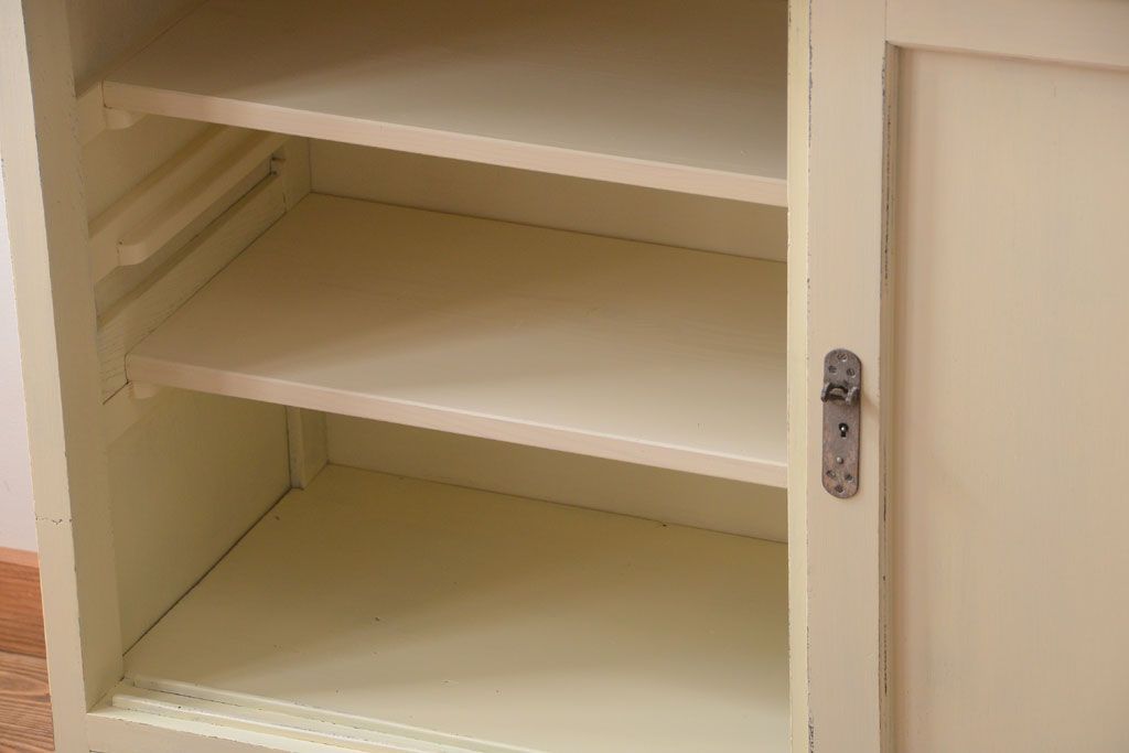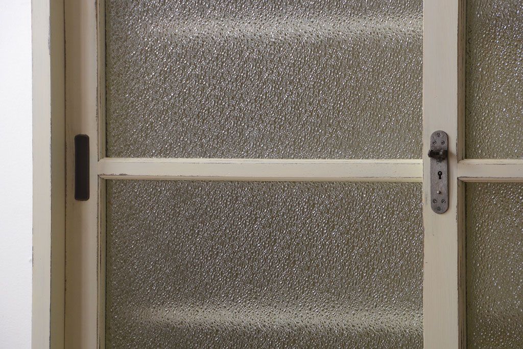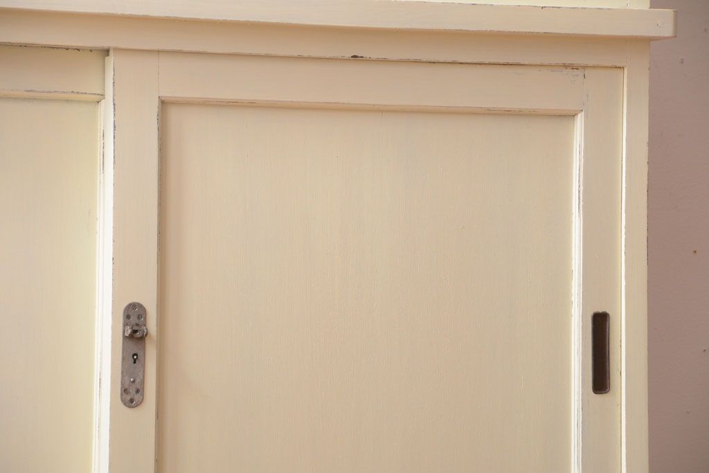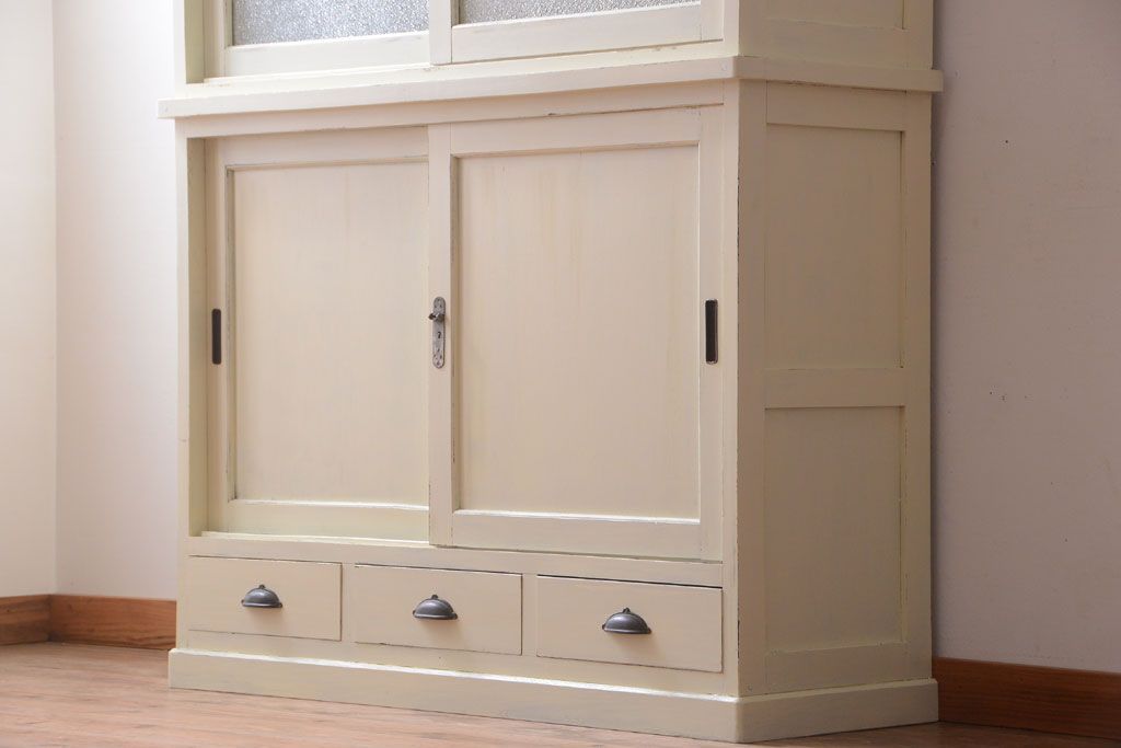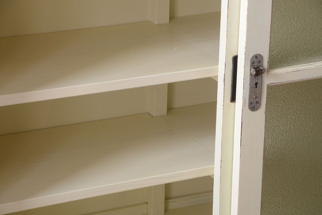アンティーク家具 アンティークペイント クリームカラーが上品なダイヤガラス戸棚