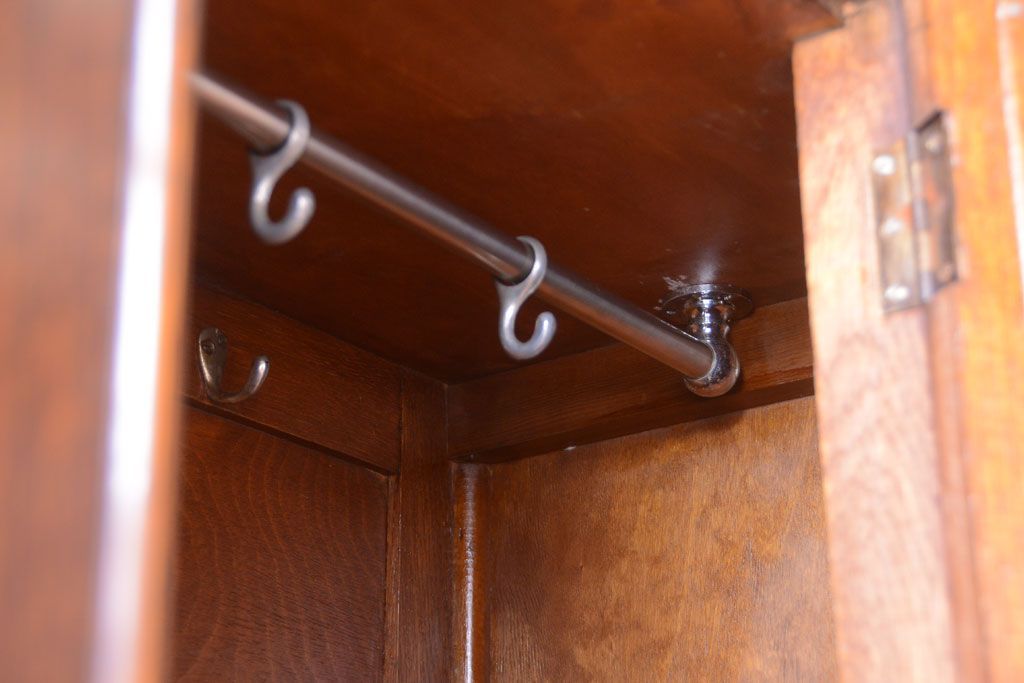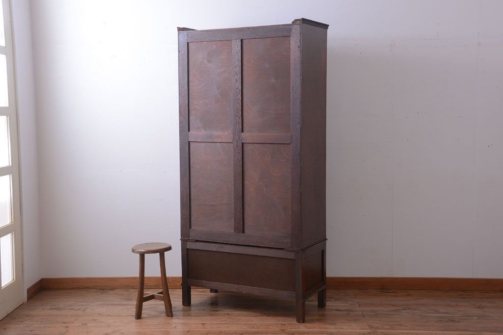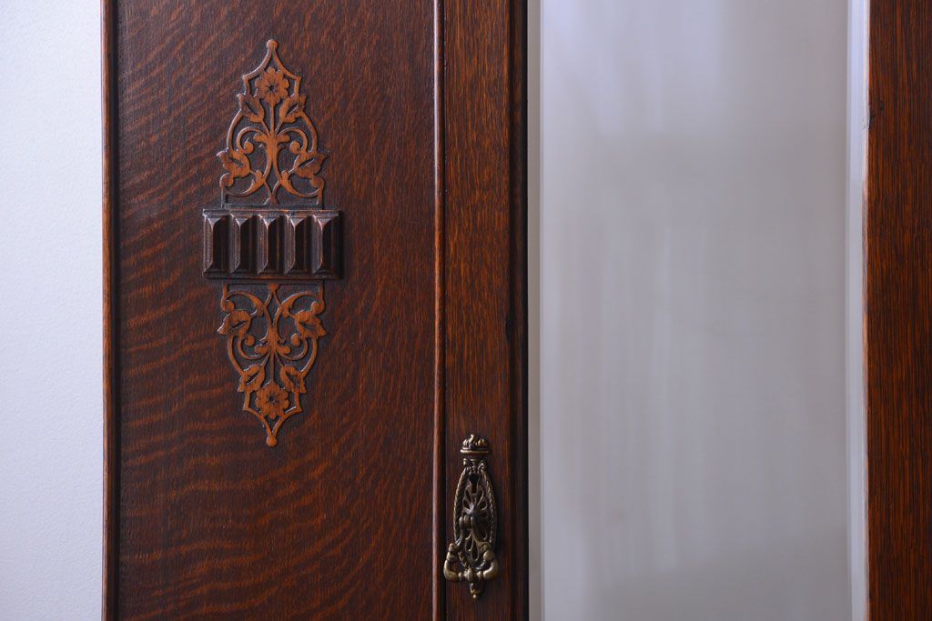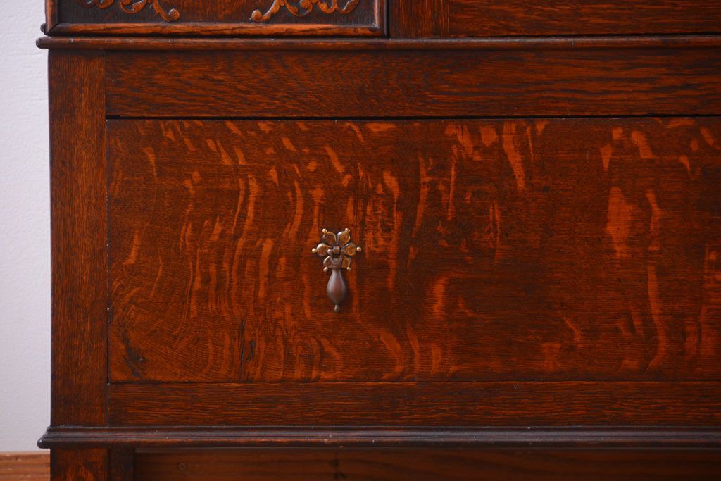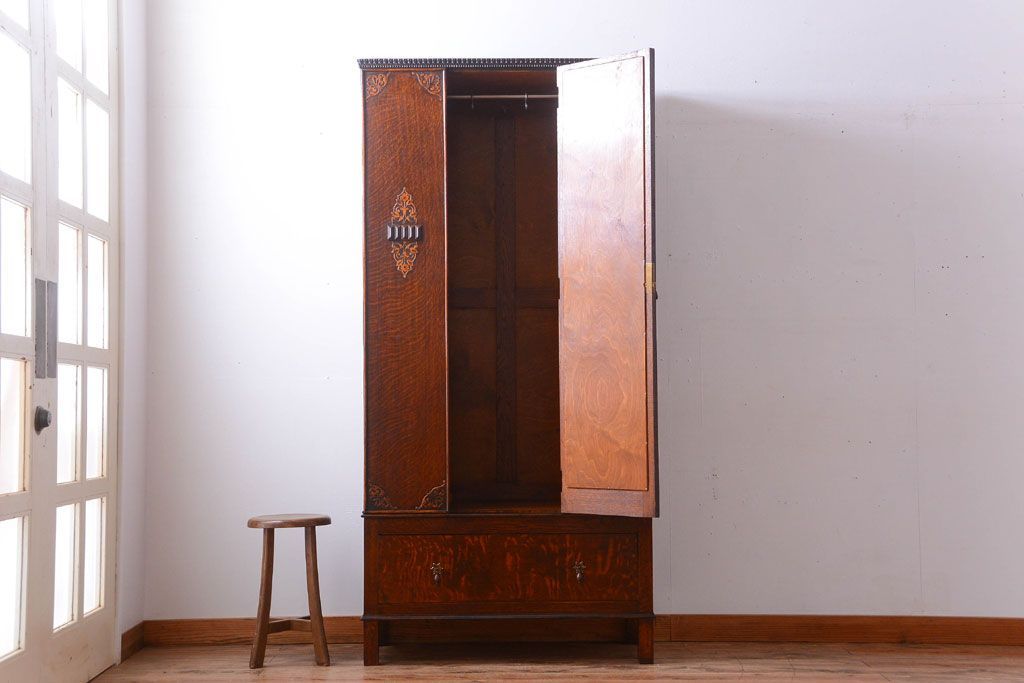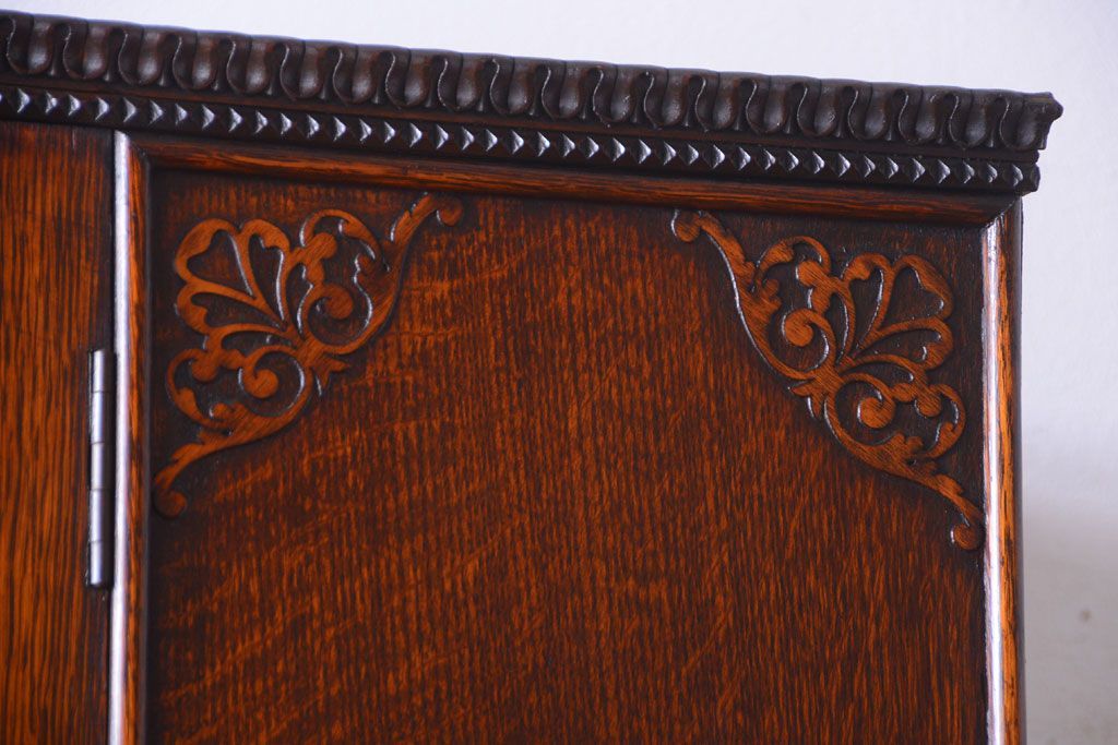 アンティーク家具 イギリスアンティーク 古いオーク製の彫刻が美しい鏡付きワードローブ
