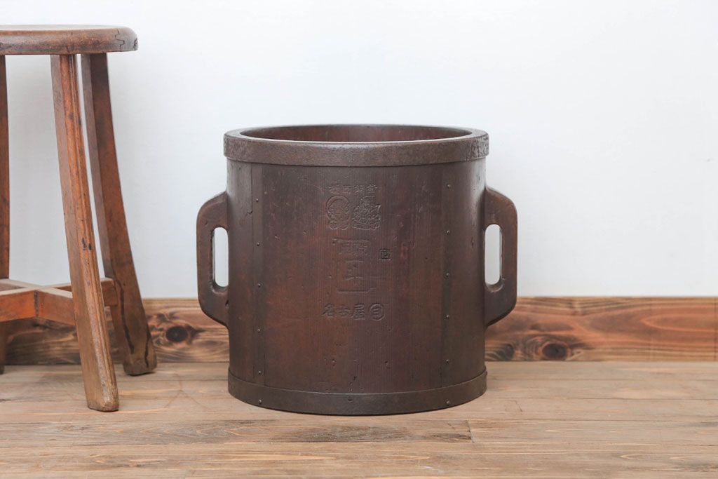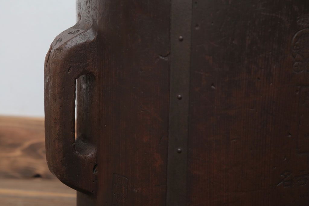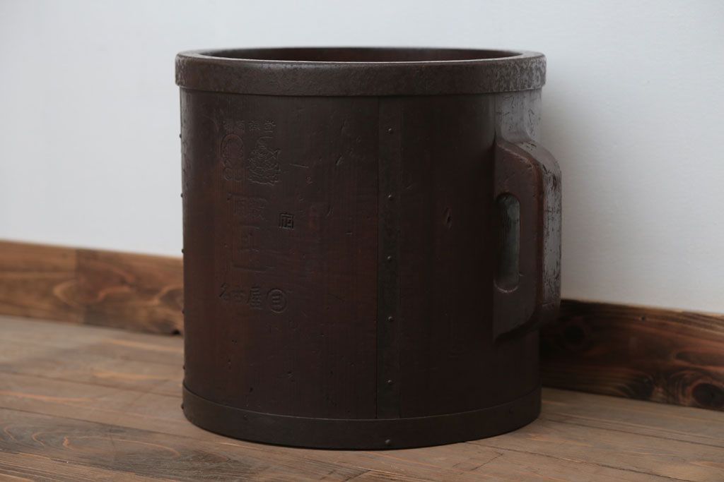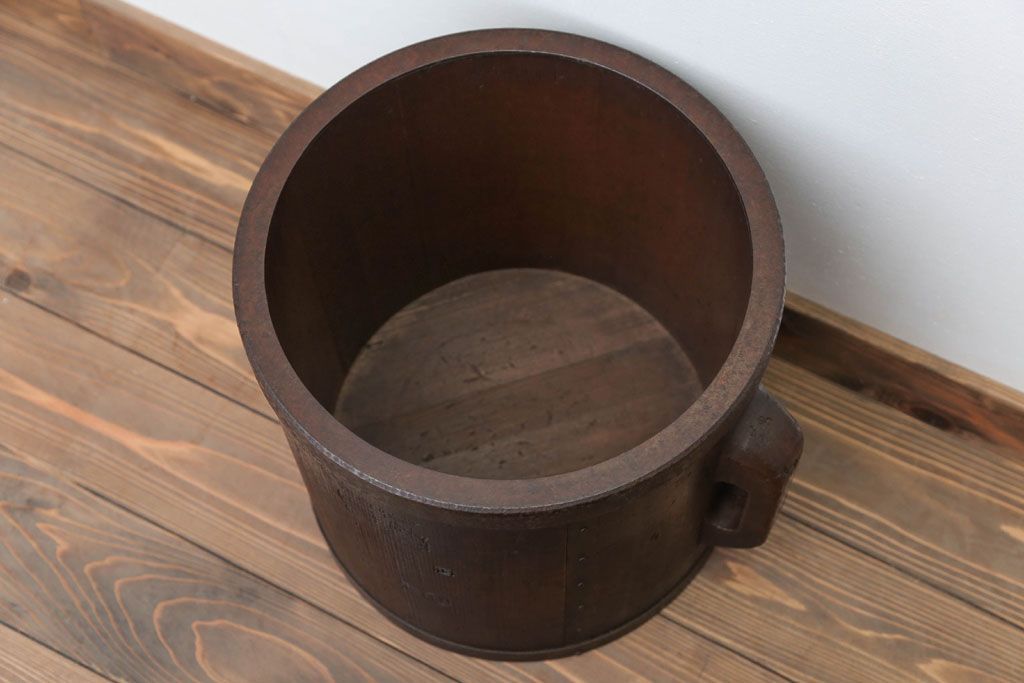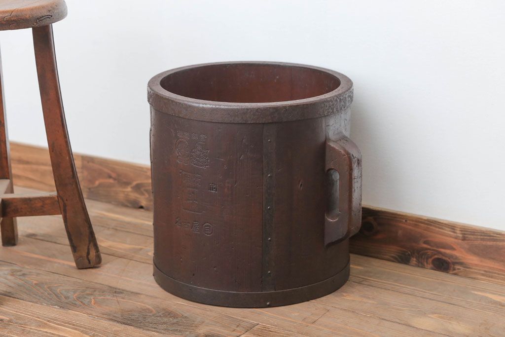 アンティーク雑貨 古民具・骨董 古い木の金具付き一斗枡