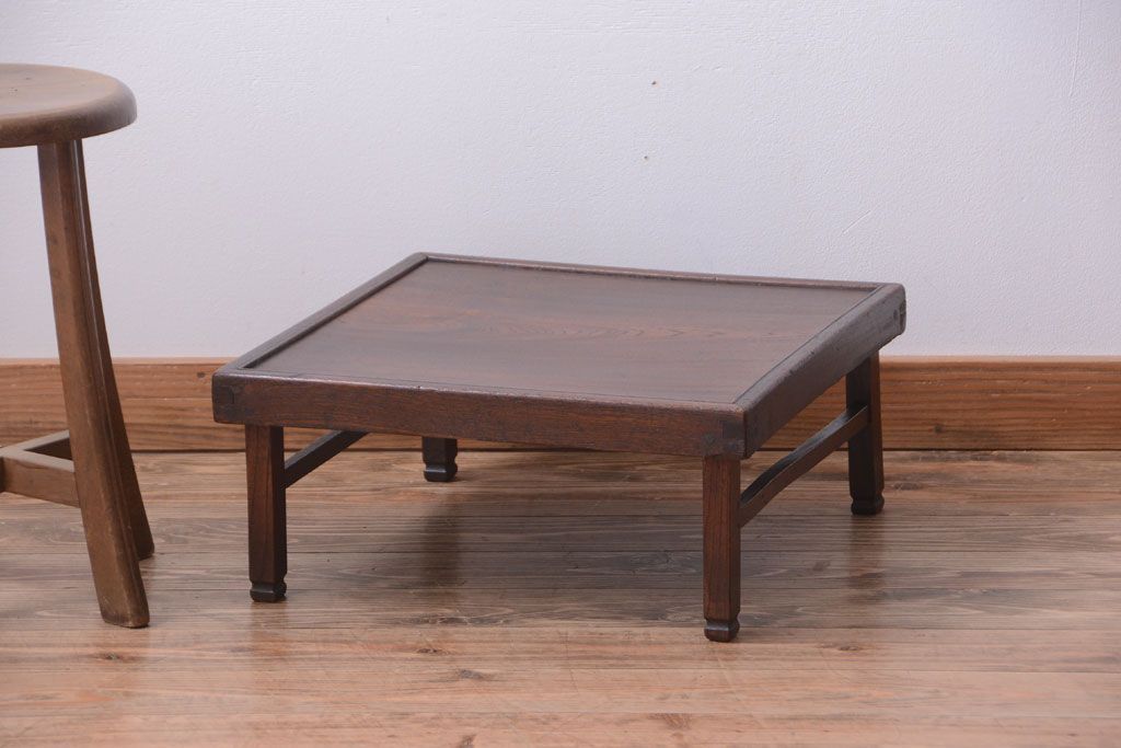 古民具・骨董 古い欅材の小さなアンティーク座卓(ちゃぶ台)です。
