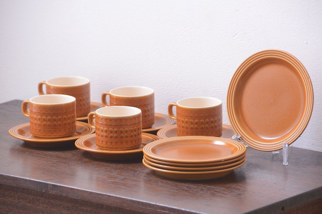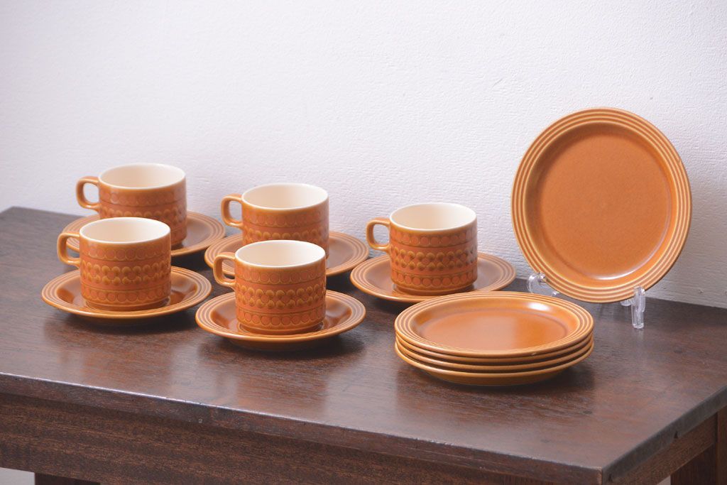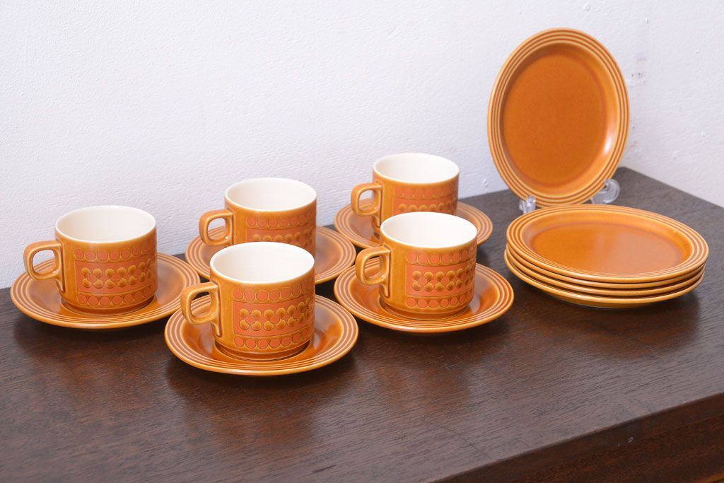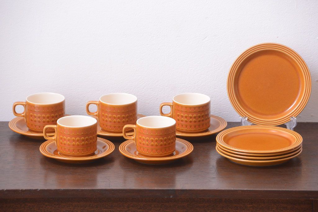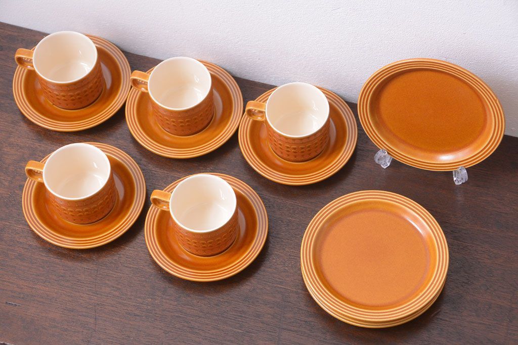 イギリスビンテージ HORNSEA(ホーンジー) Saffron(サフラン)シリーズ カップ&ソーサー5客、皿5枚セット