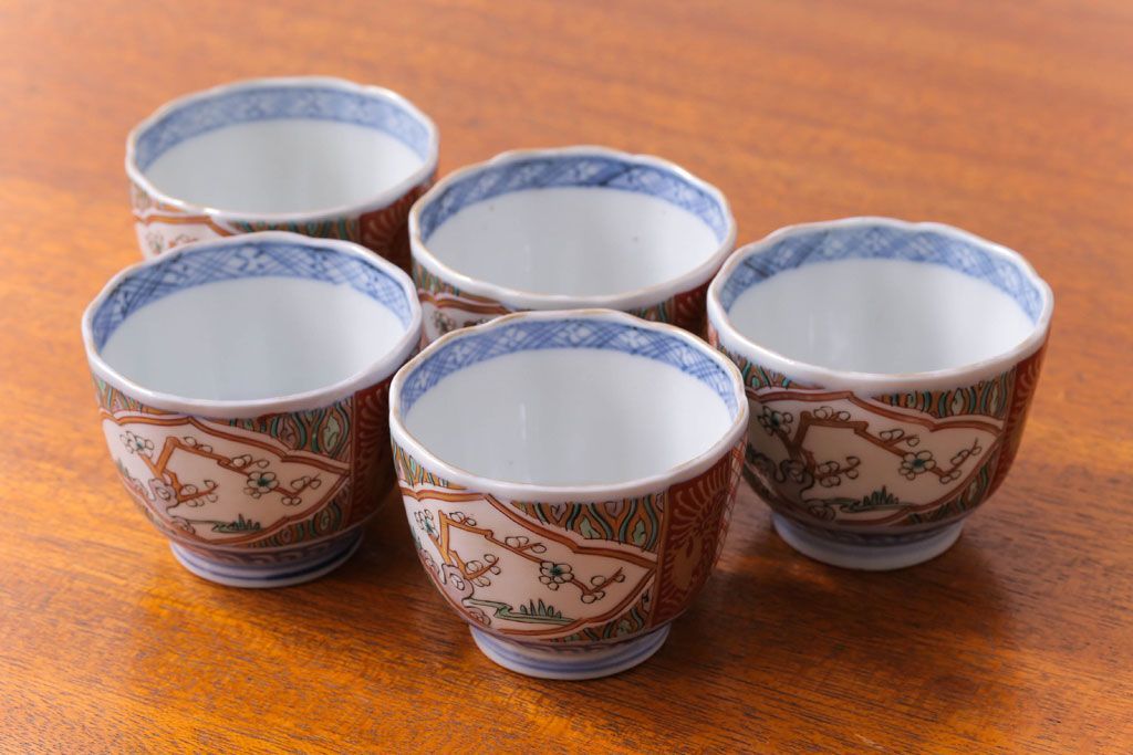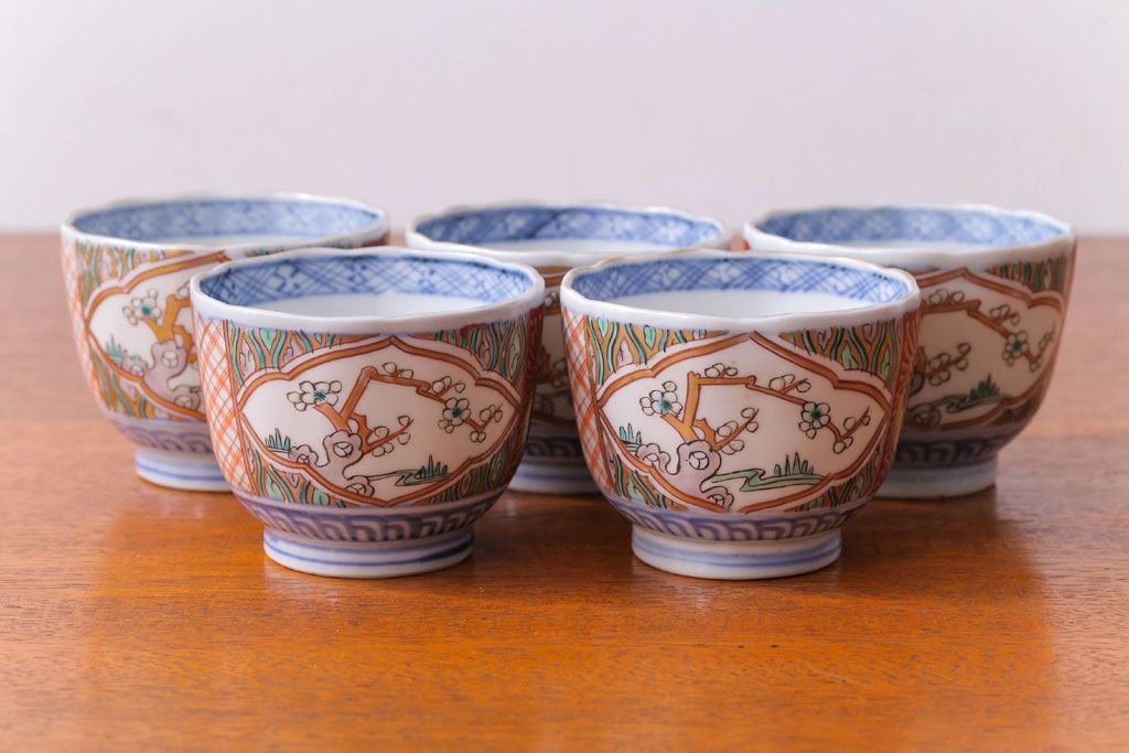 ラフジュ工房> 骨董・美術品 > 古民具・骨董 幕末〜明治 色絵金襴手向付5客(伊万里・猪口)