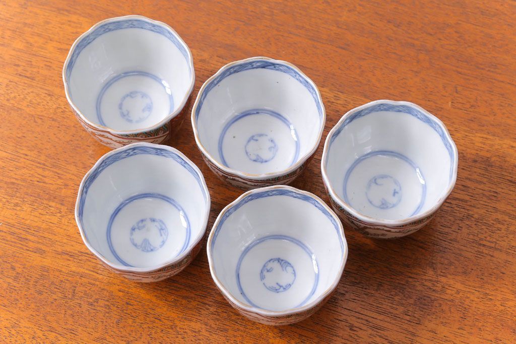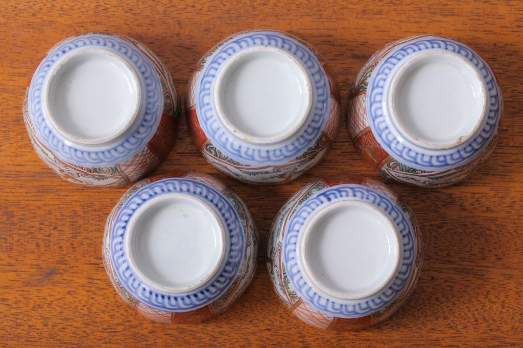 ラフジュ工房> 和食器・茶道具> 蕎麦猪口 > 古民具・骨董 幕末〜明治 色絵金襴手向付5客(伊万里・猪口)