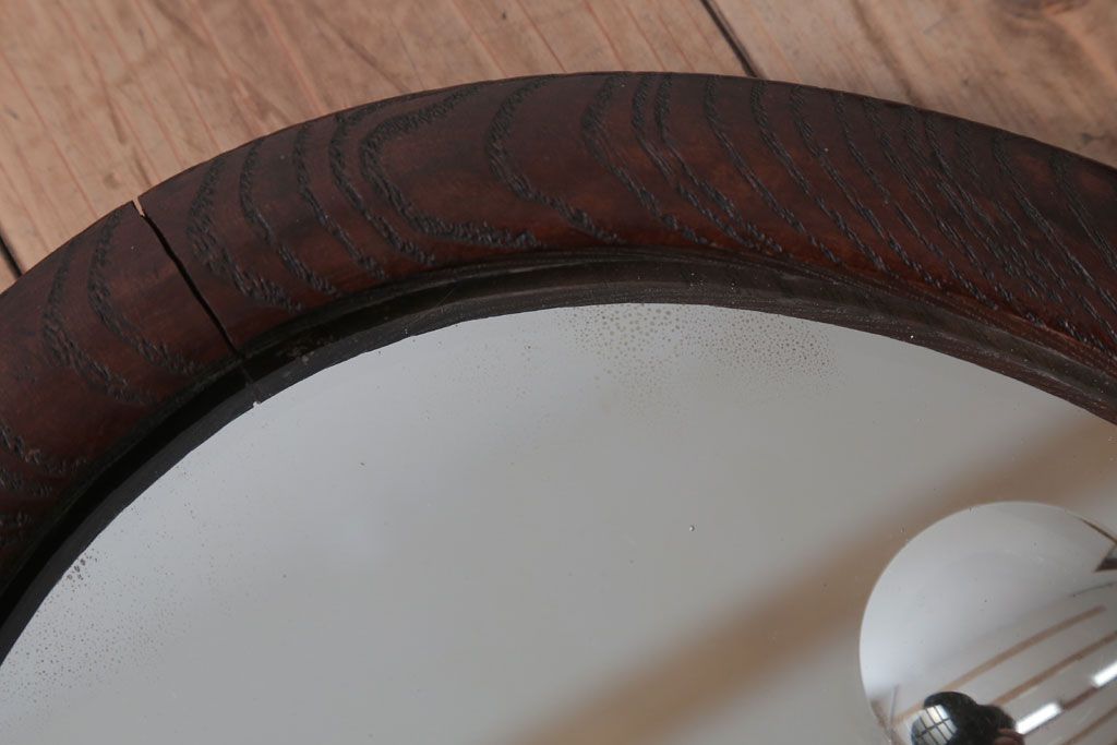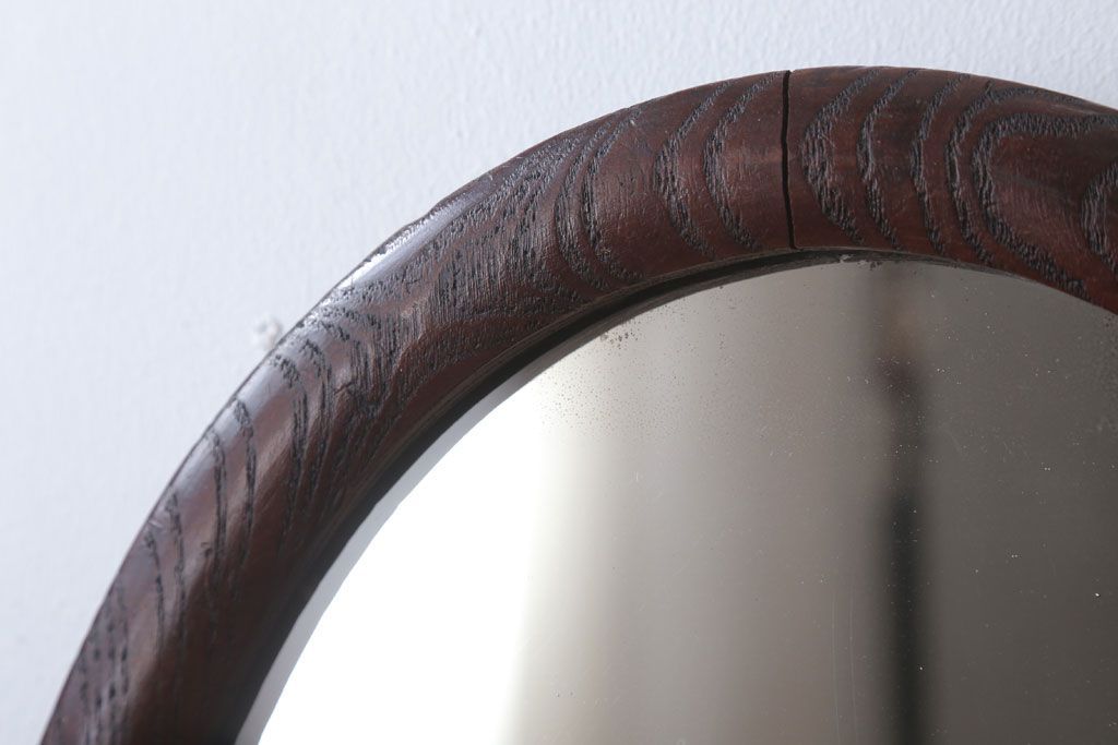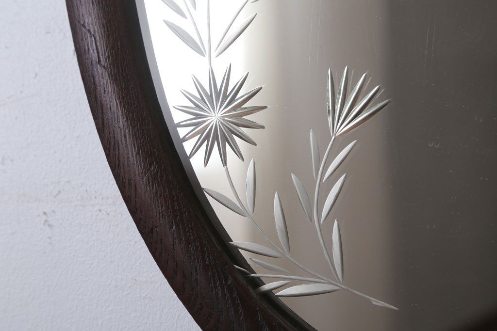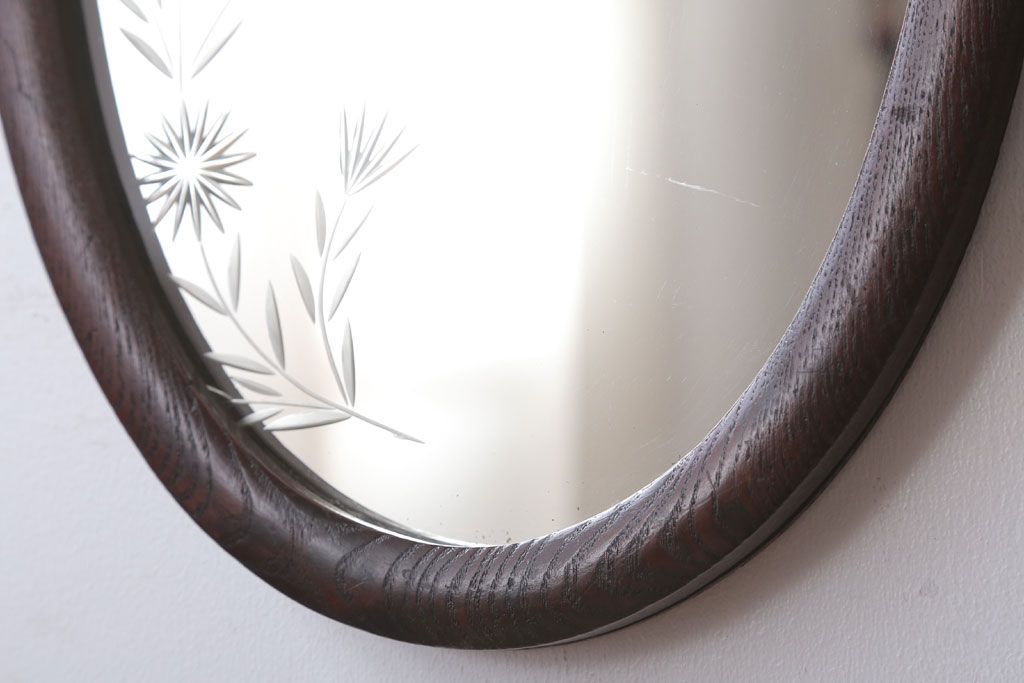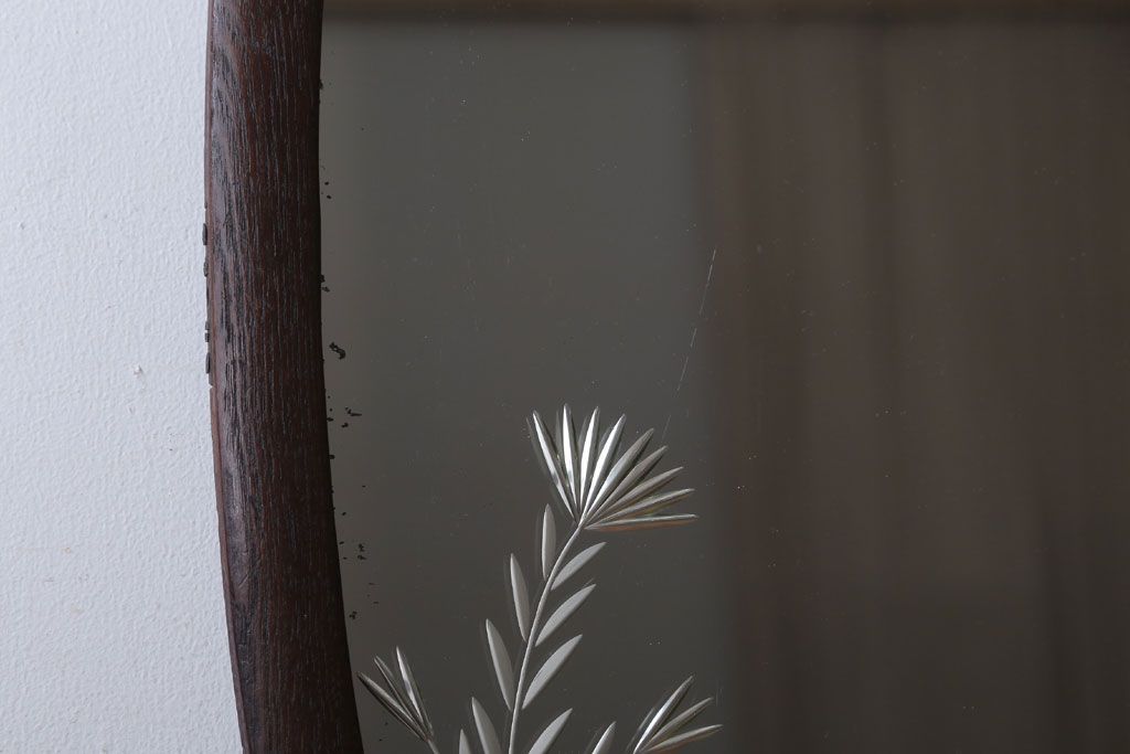 アンティーク雑貨 和製アンティーク 総栗材!カットガラス鏡の高級壁掛けミラー