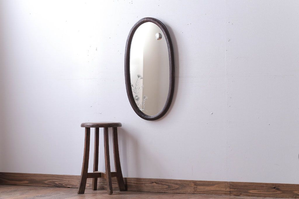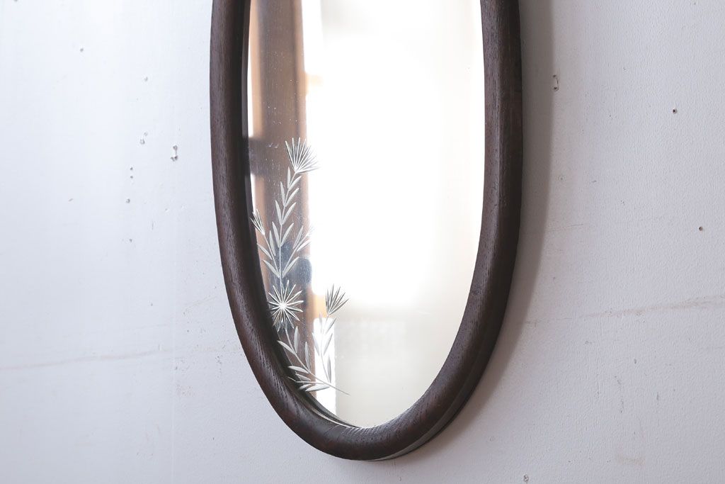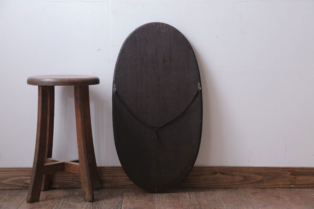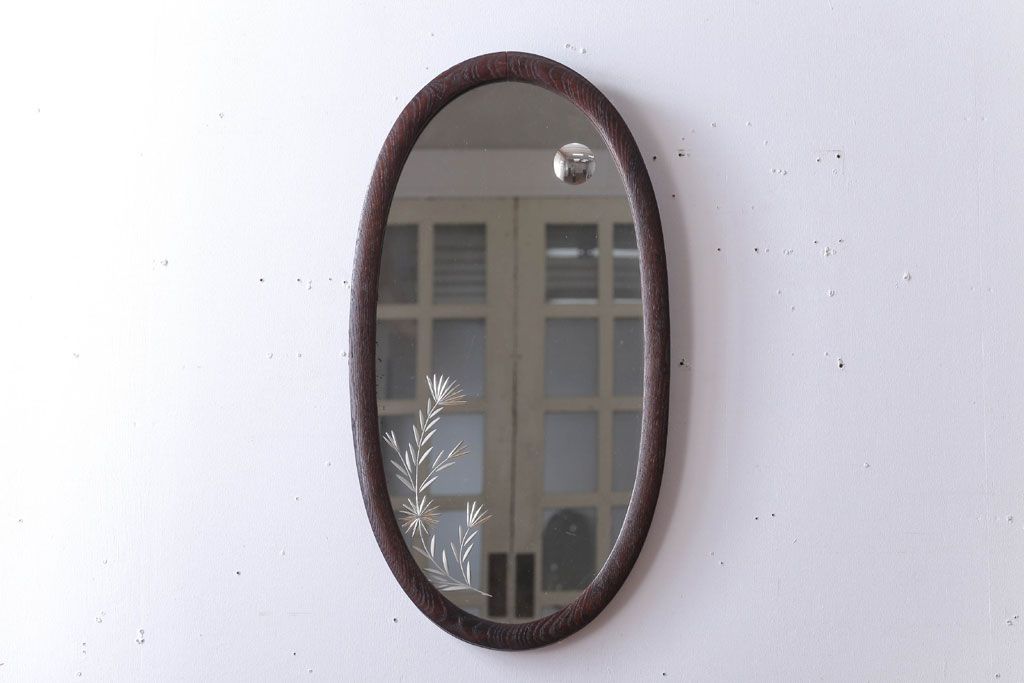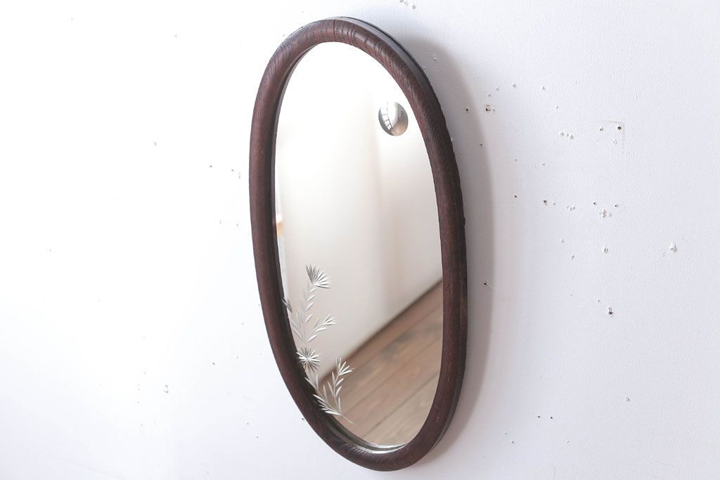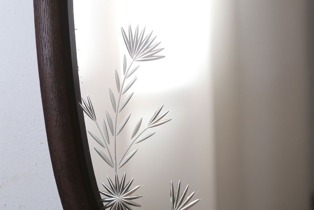 アンティーク雑貨 和製アンティーク 総栗材!カットガラス鏡の高級壁掛けミラー