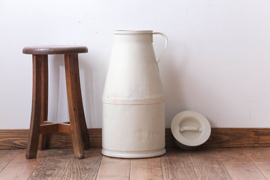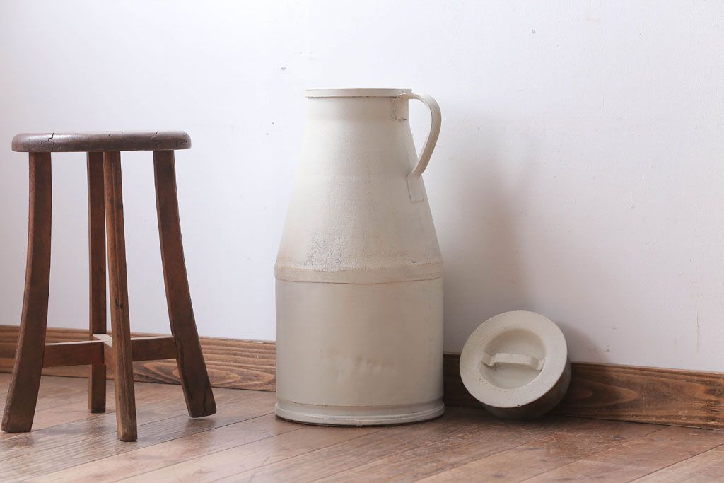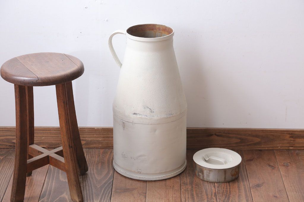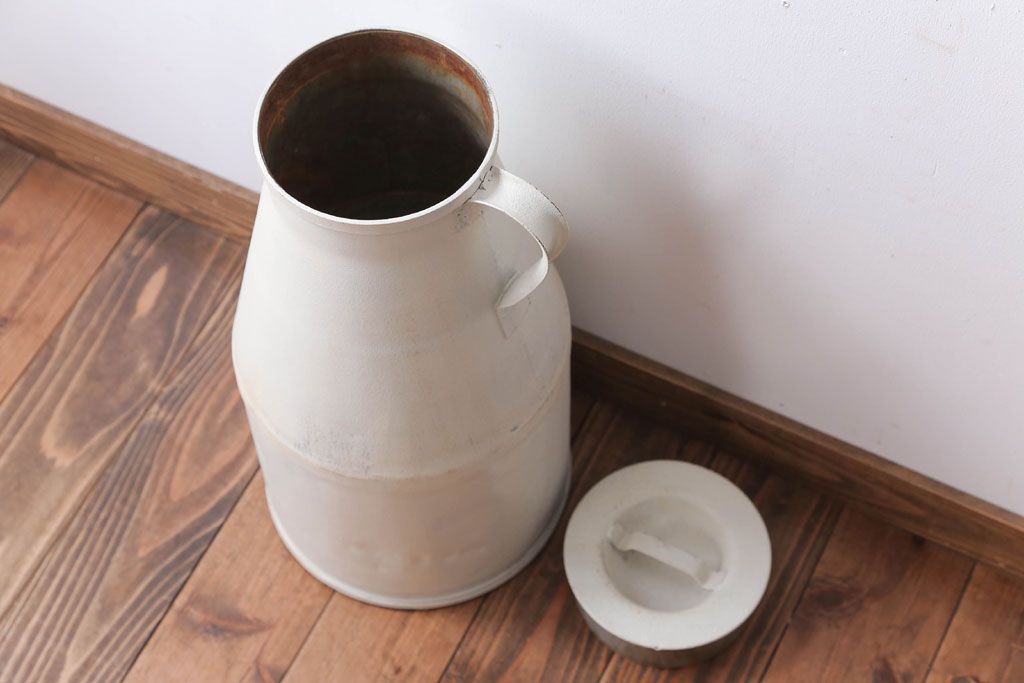 昭和レトロ 古いアイアンのペイントミルク缶(牛乳缶)