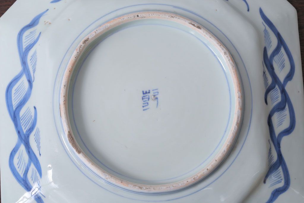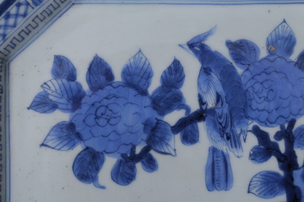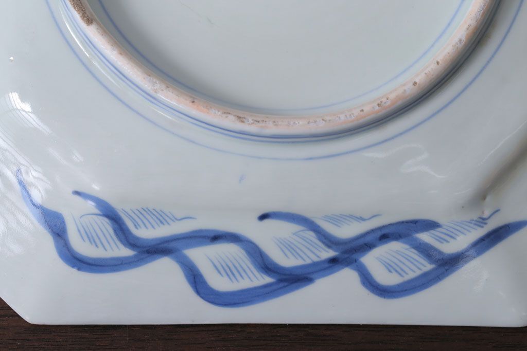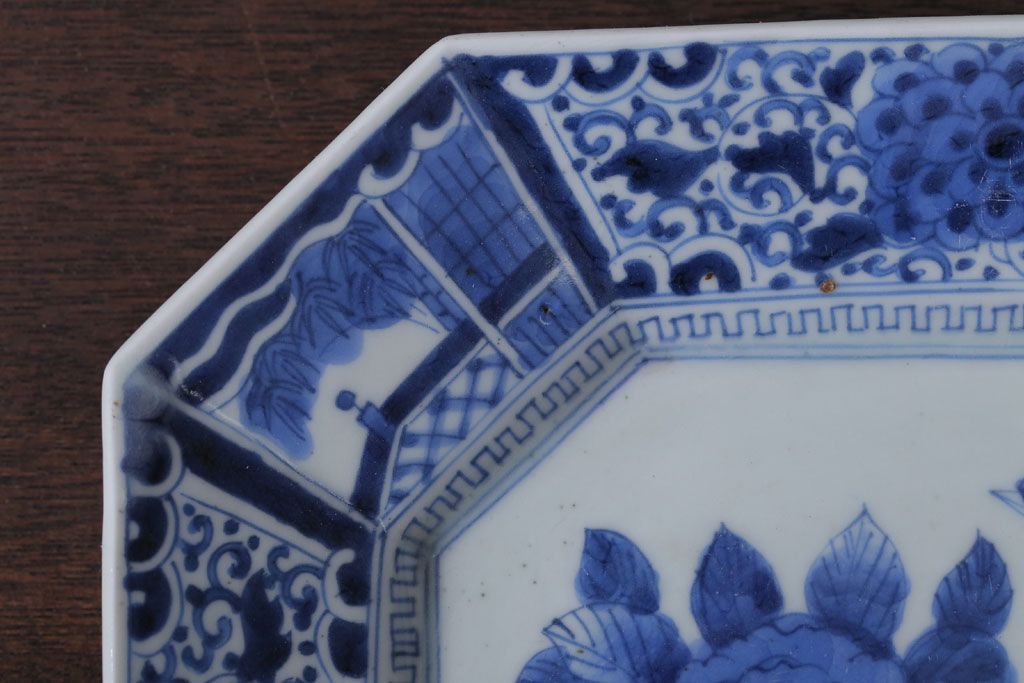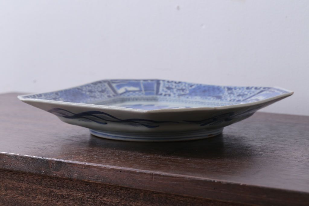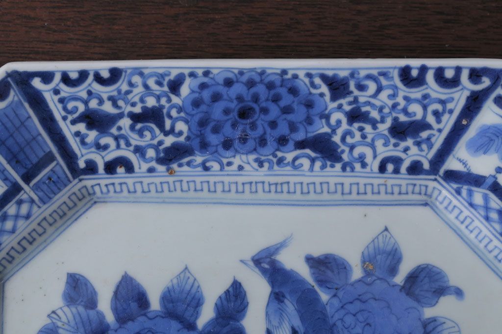 アンティーク雑貨 アンティーク 江戸〜明治 花鳥の図 染付八角皿(古伊万里)