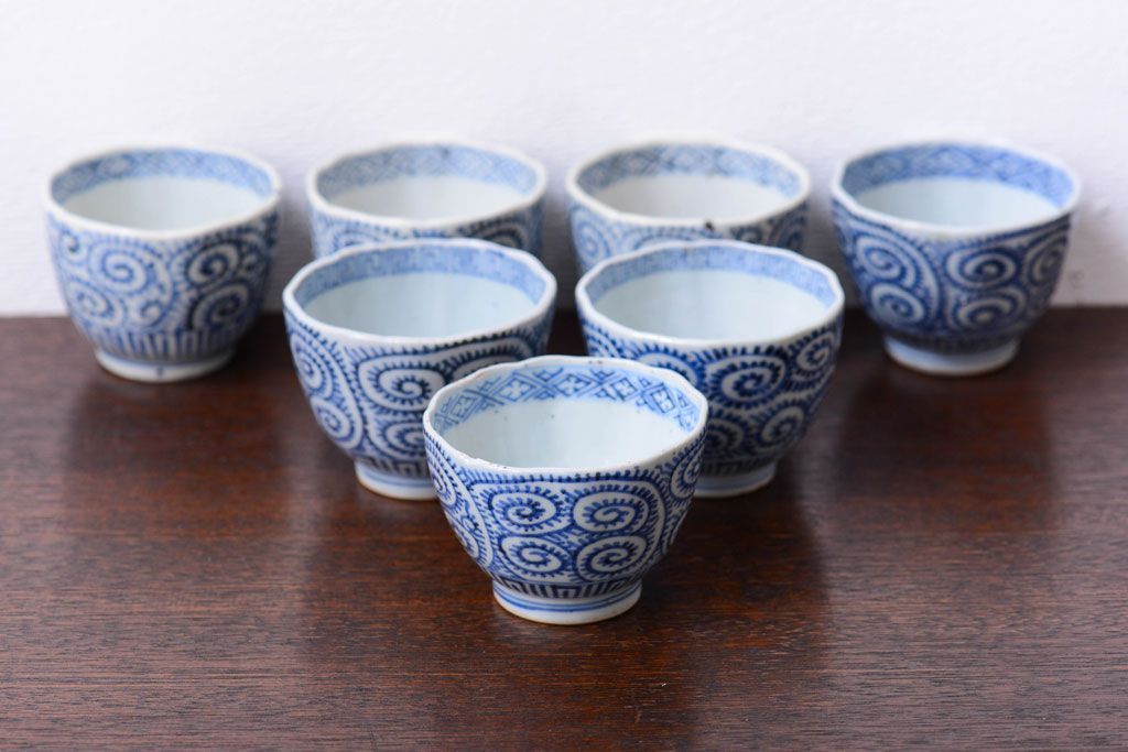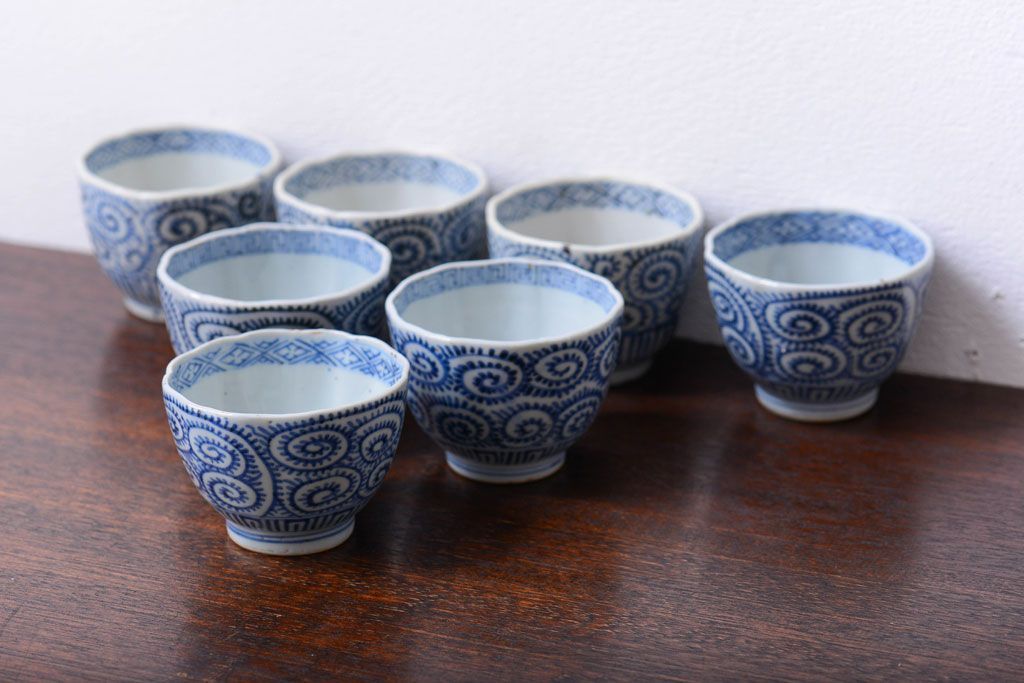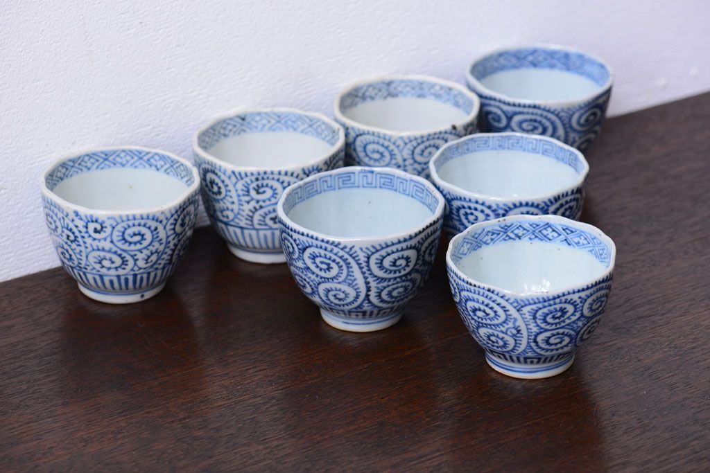 アンティーク雑貨 明治期 蛸唐草向付7客(伊万里)