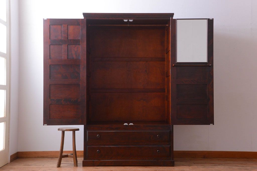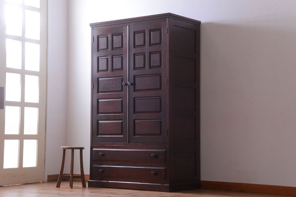 中古 北海道民芸家具 モダンな2段重ねワードローブ