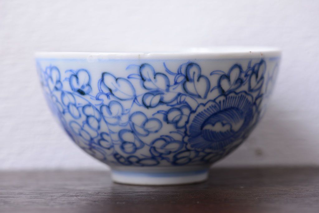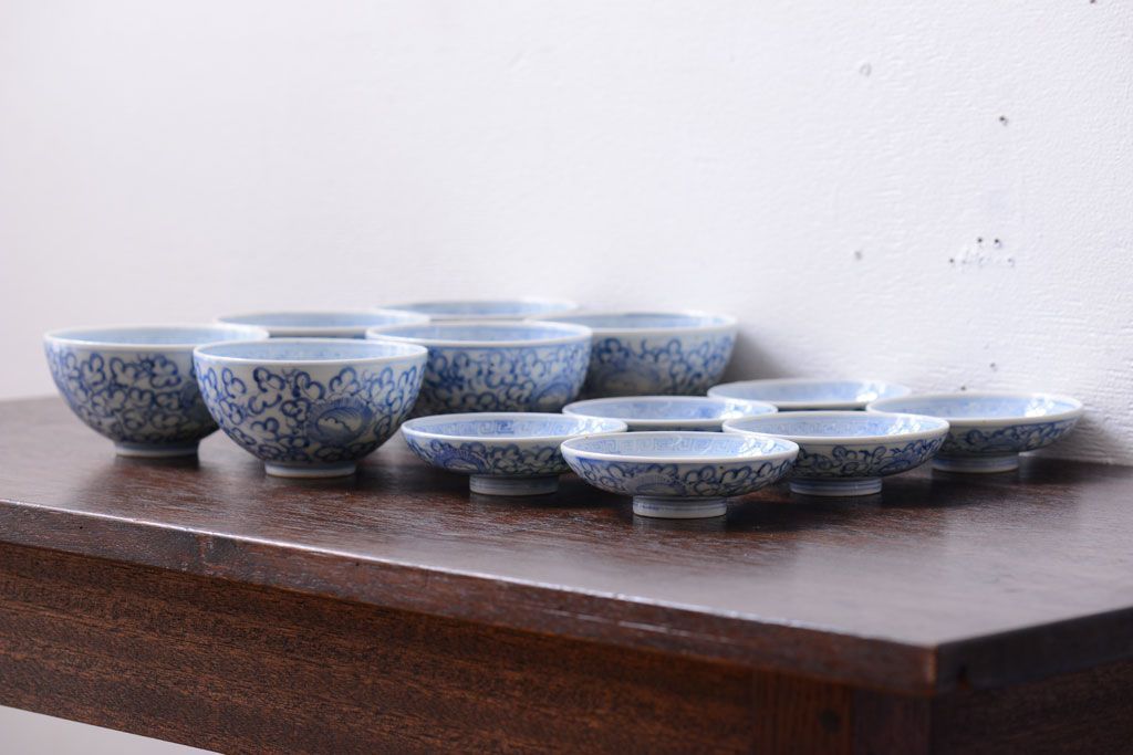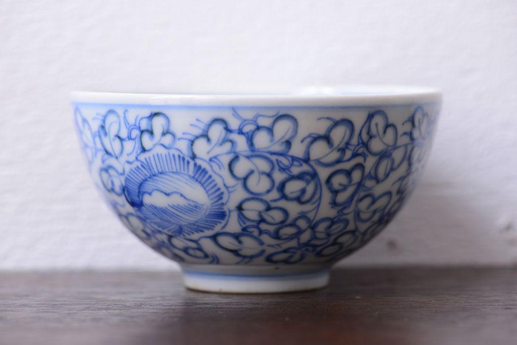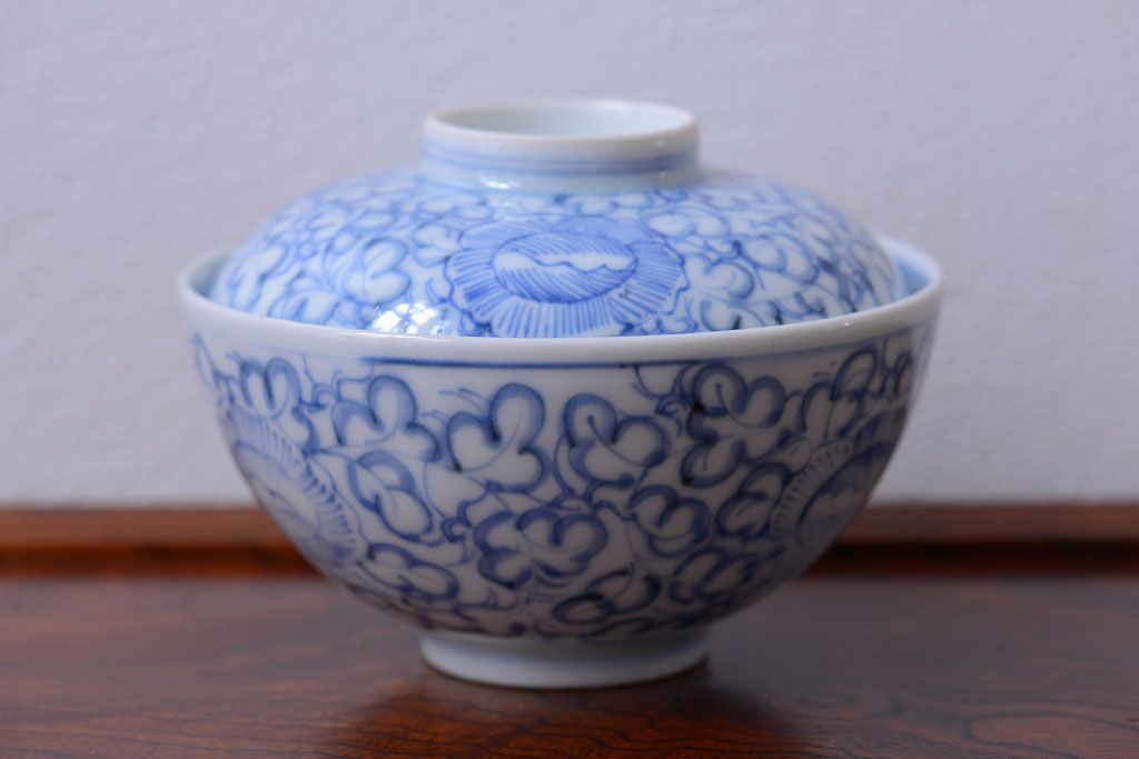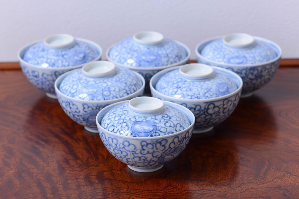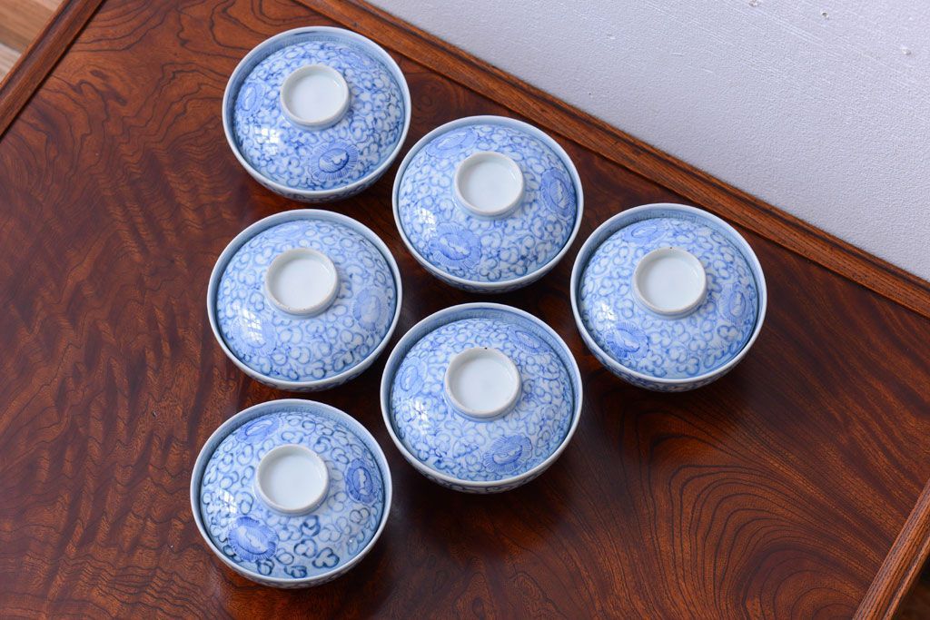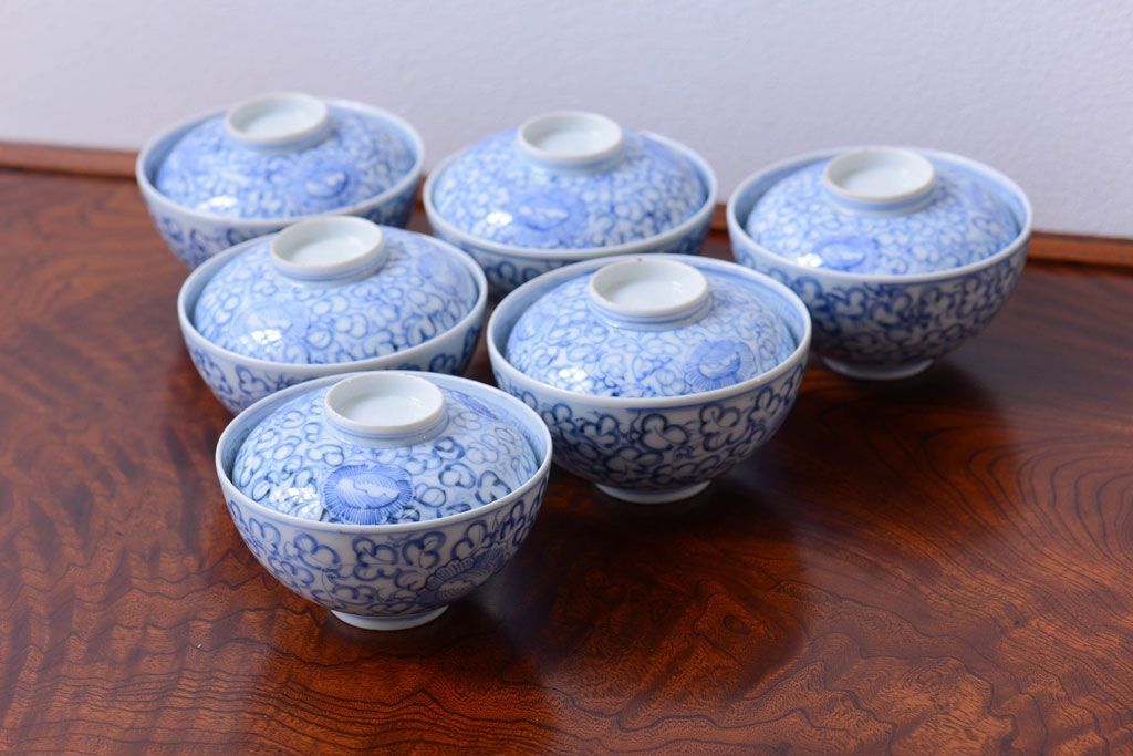 アンティーク雑貨 古民具・骨董 幕末〜明治 綿描き蓋茶碗6客(伊万里)